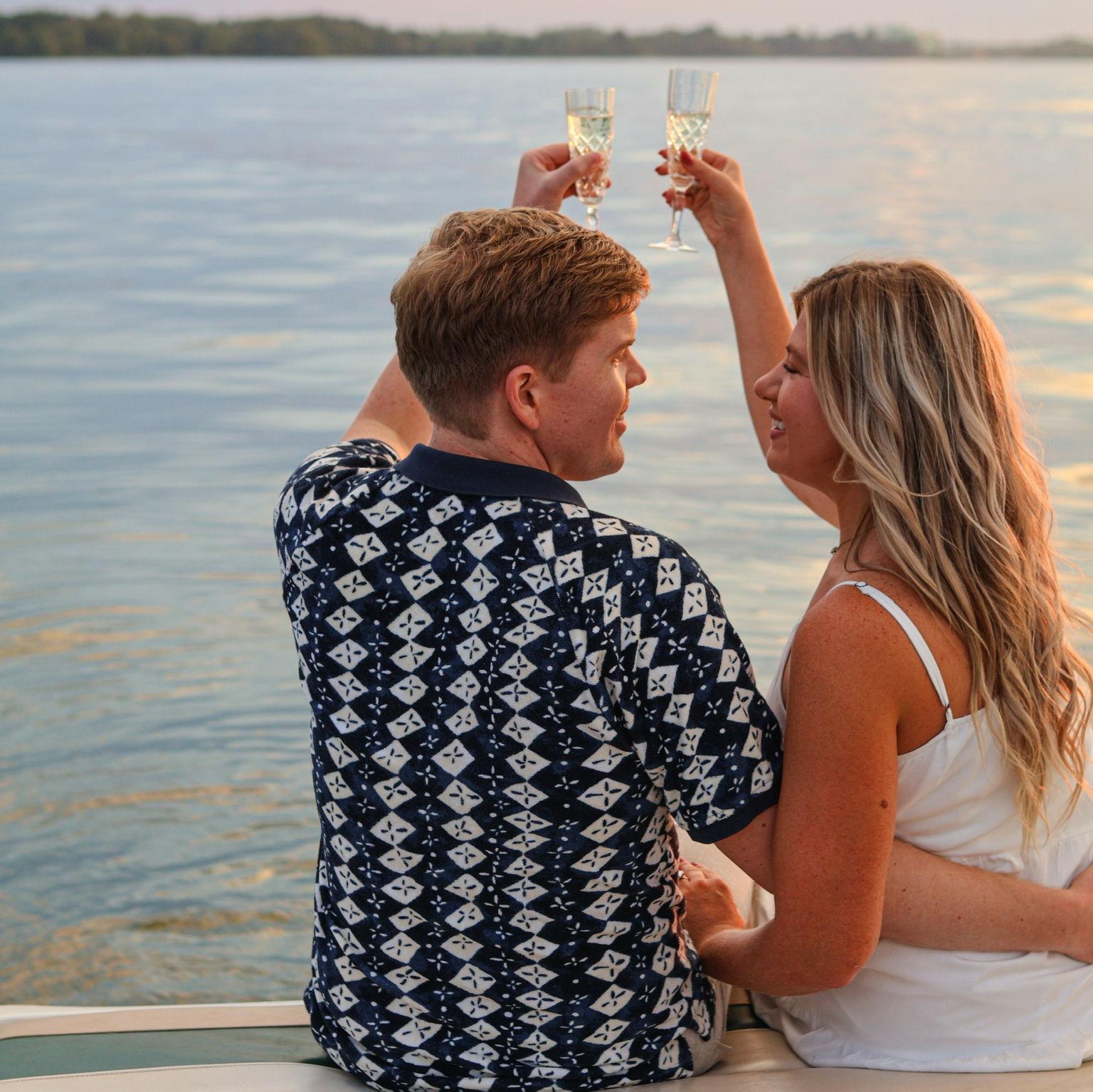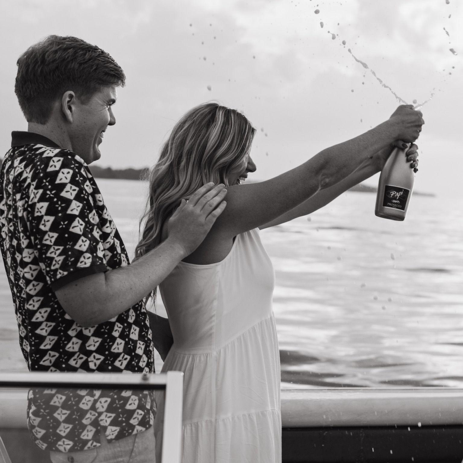Kevin said 'I love you!' for the first time on his boat, Melanie and Kevin got engaged on Party Marty's boat, so the engagement shoot had to go with the running theme!
