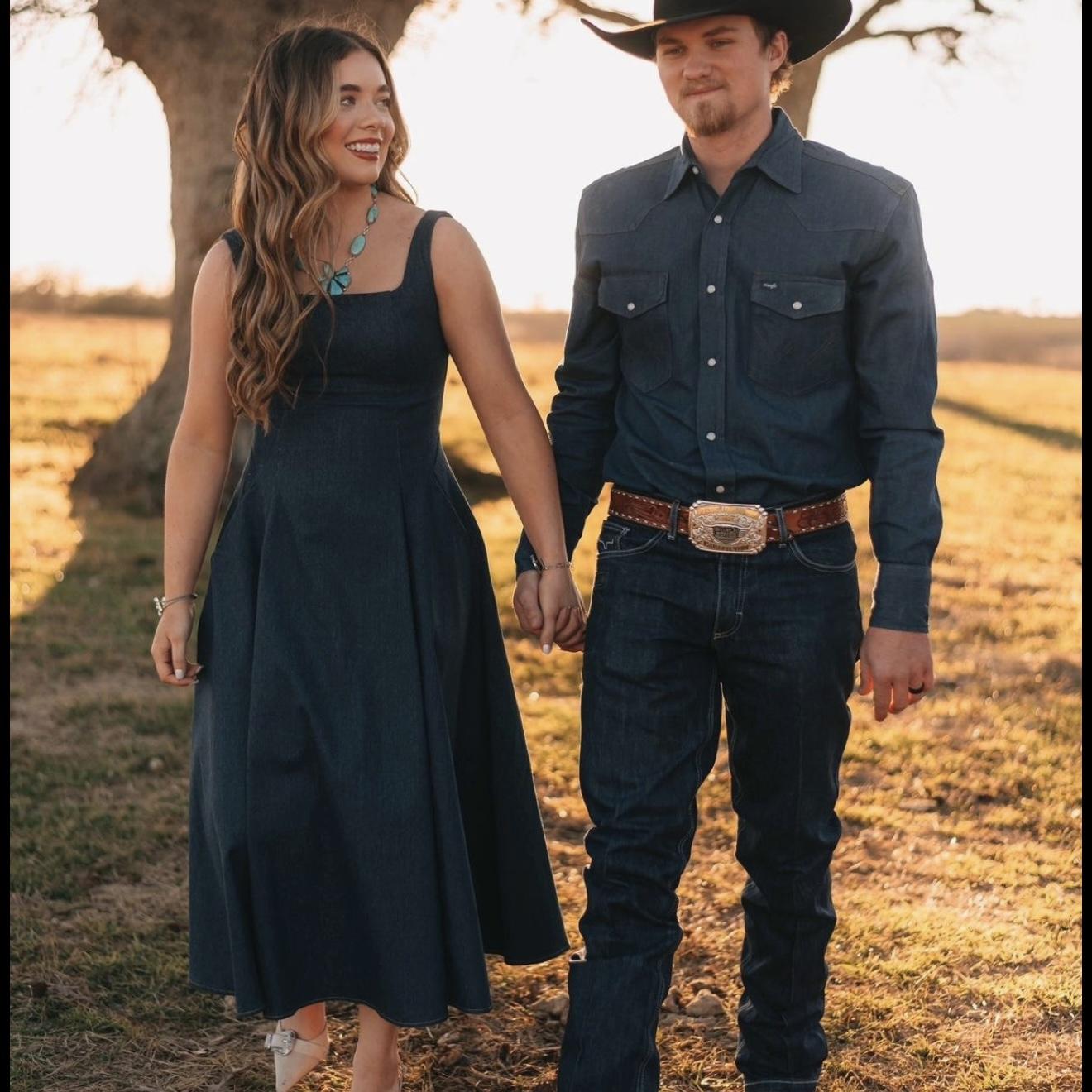 Don't know what to wear? "Western Elegance": Think sophisticated ranch wear No Bright Clothing Please Women: Nice dress Boots are encouraged Men: Slacks/nice jeans, button-down Boots and cowboy hats are encouraged