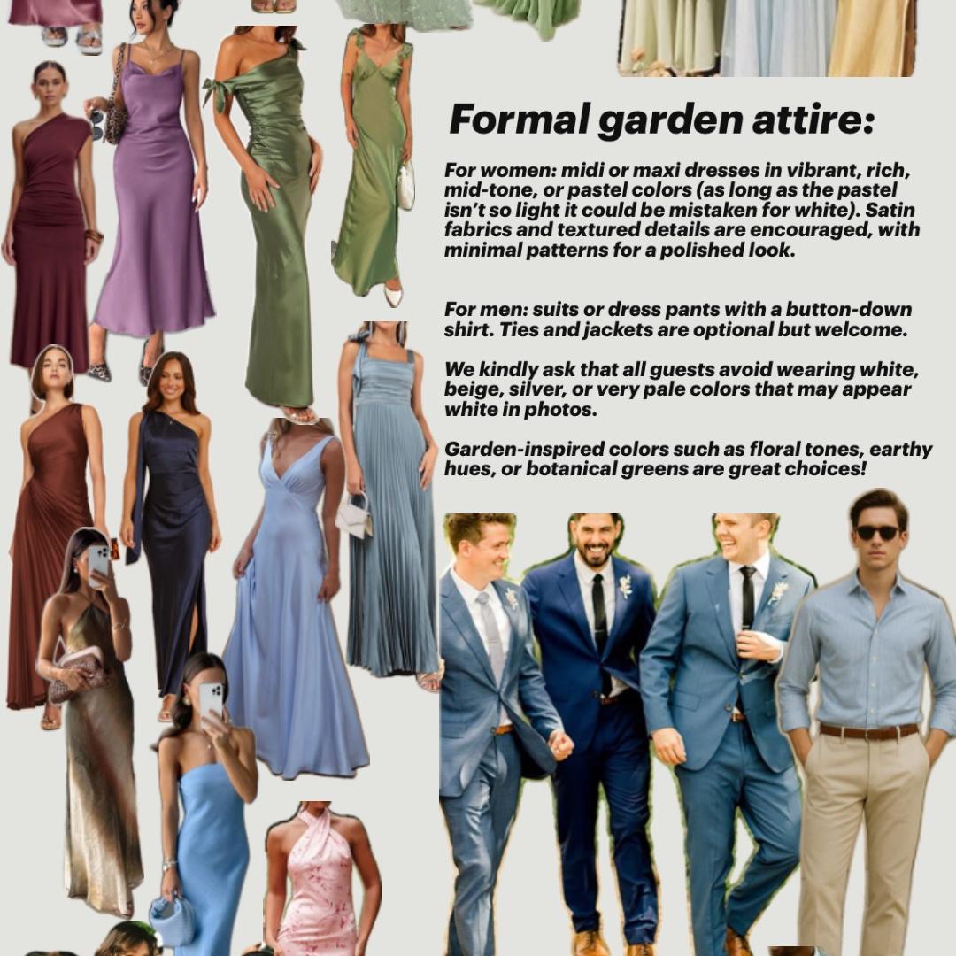 The dress code is garden formal. Here are a few examples!