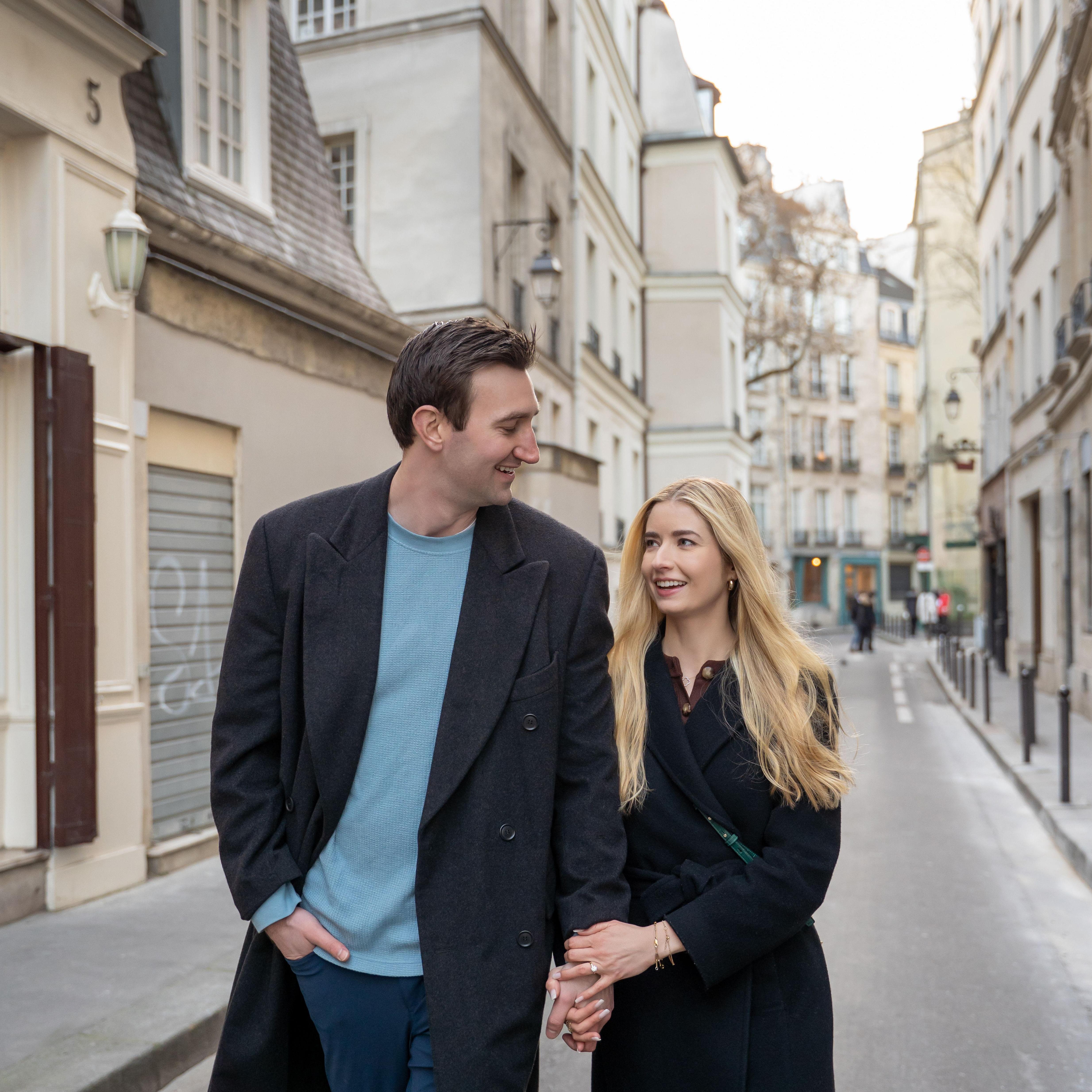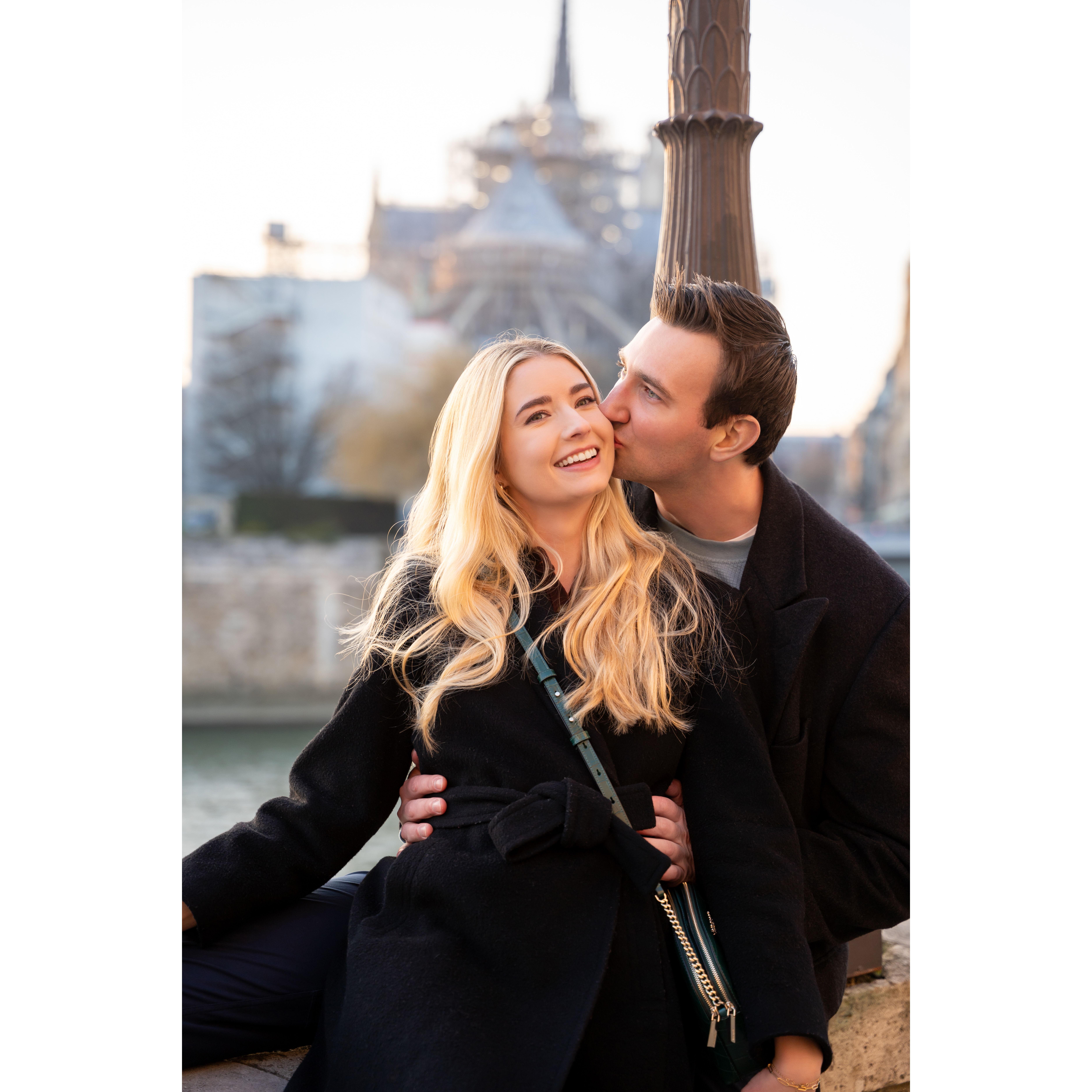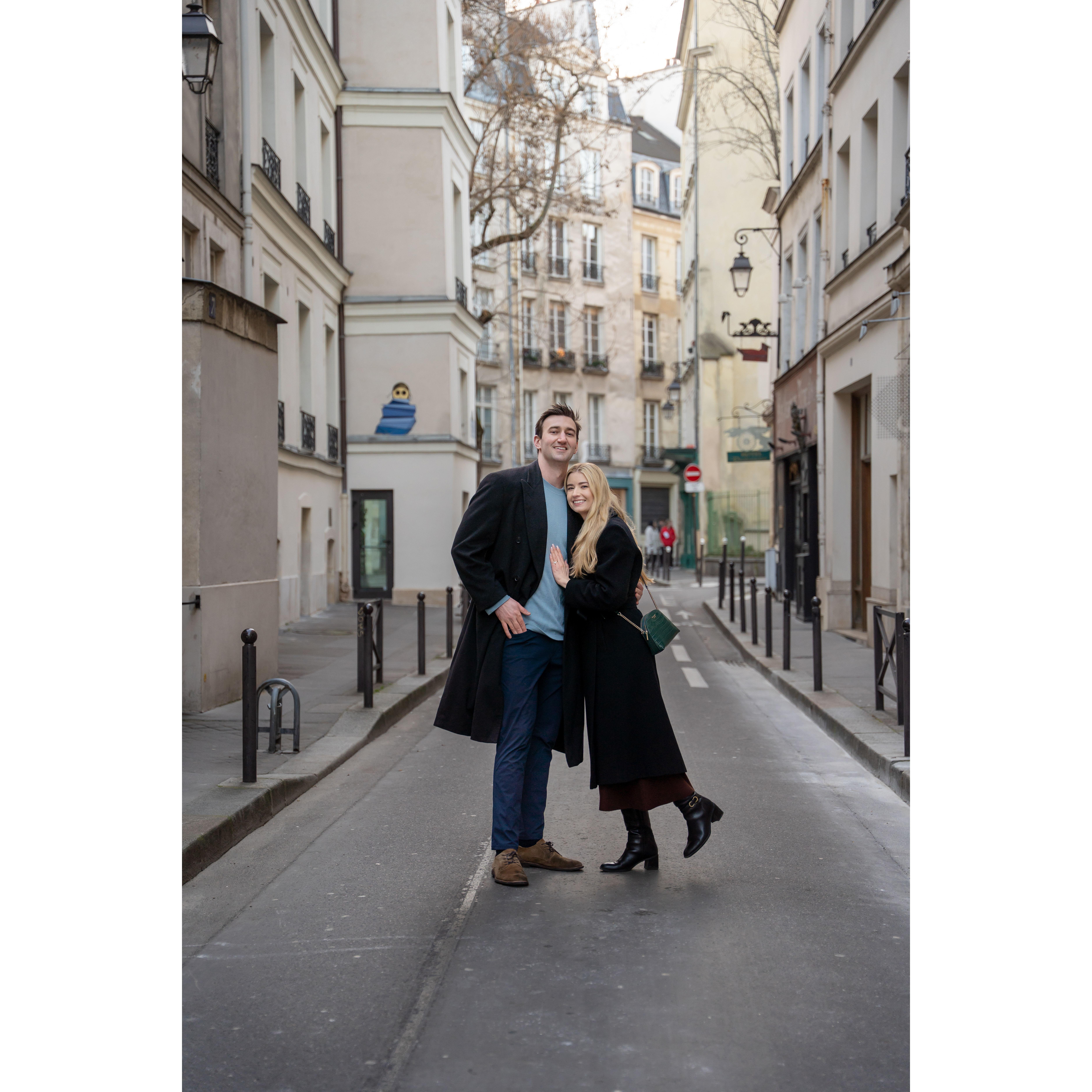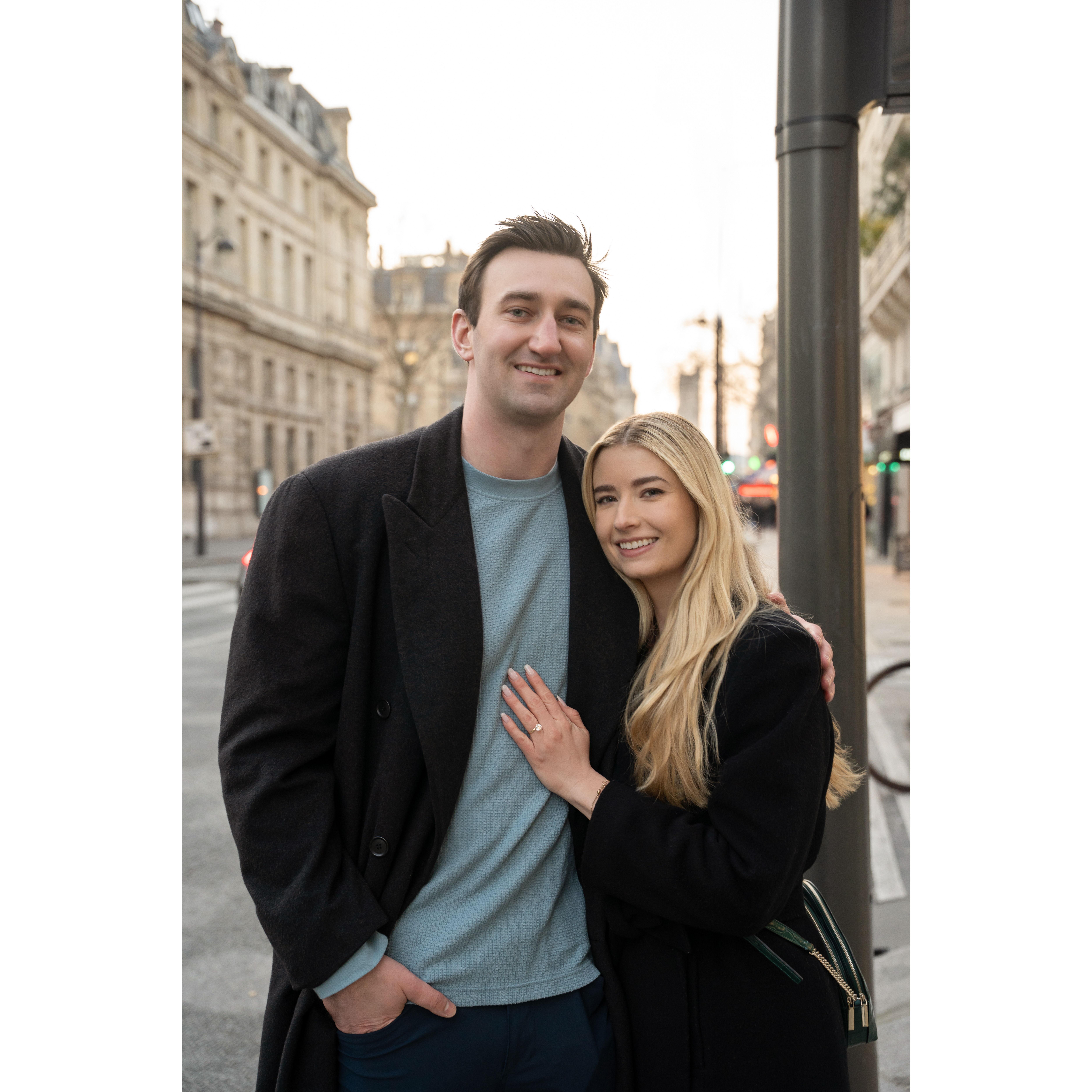 Enjoying morning coffee and pastries the morning after Connor proposed.