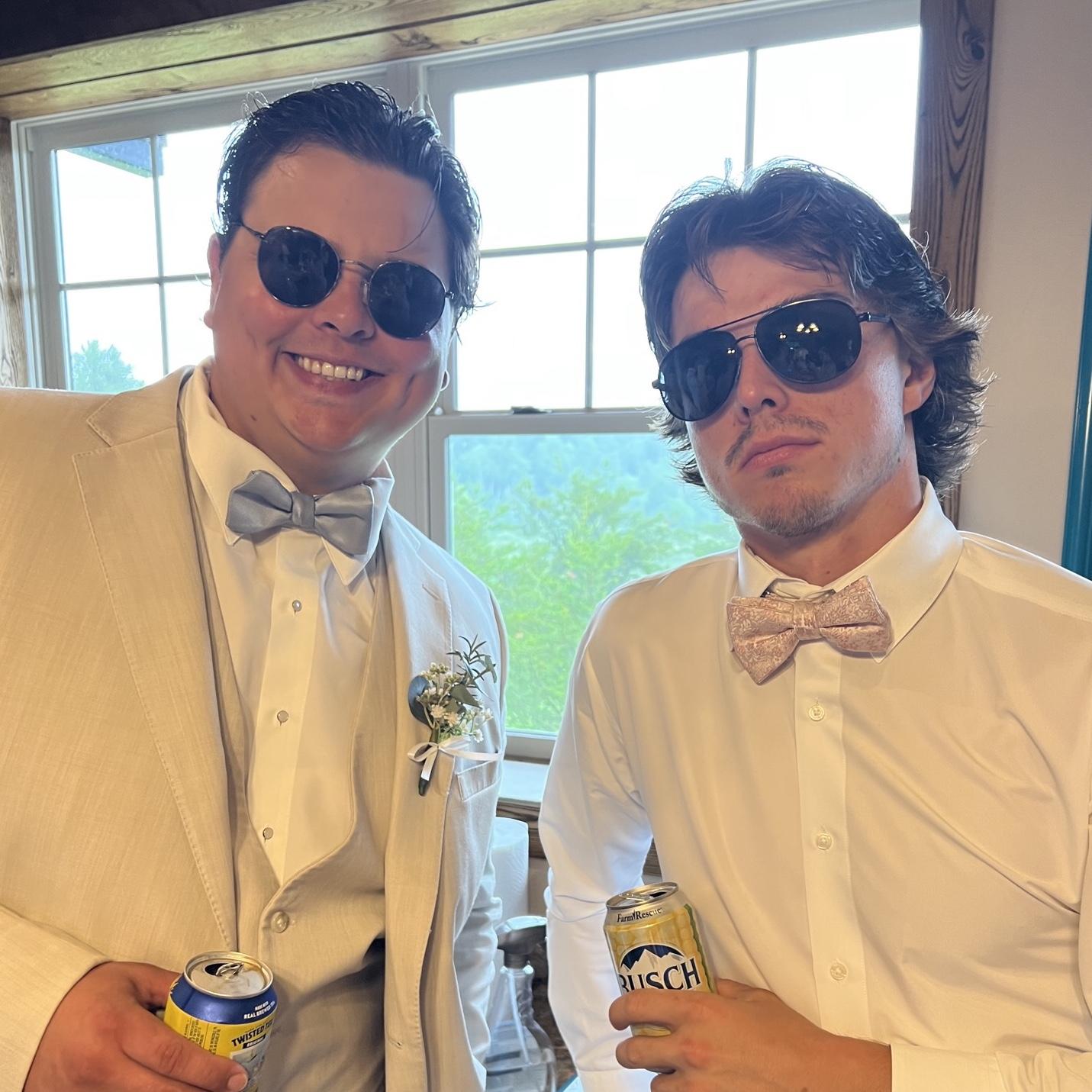 Every groom needs that one friend who keeps things interesting—and for Hunter, that’s Hanson. They played college hockey together, but the stories that came off the ice are the real highlights. Hailing from the wilds of the 218, Hanson brings just the right amount of Northland crazy, an unshakable love for Coors beer, and (arguably) the best mustache at this wedding. Follow him to your seat—he’s got the ’stache, he’s got the swagger, and trust us, he knows where he’s going…probably.