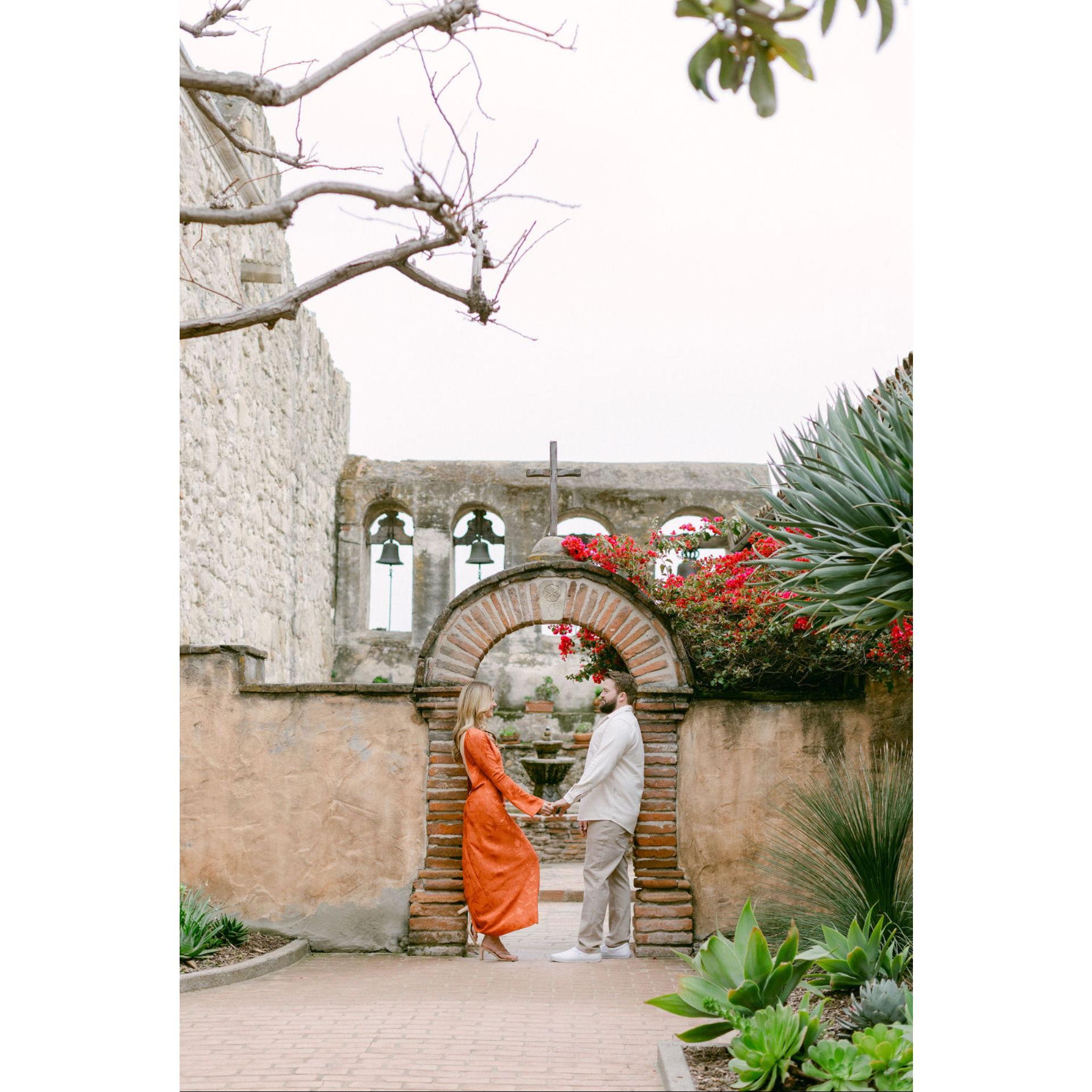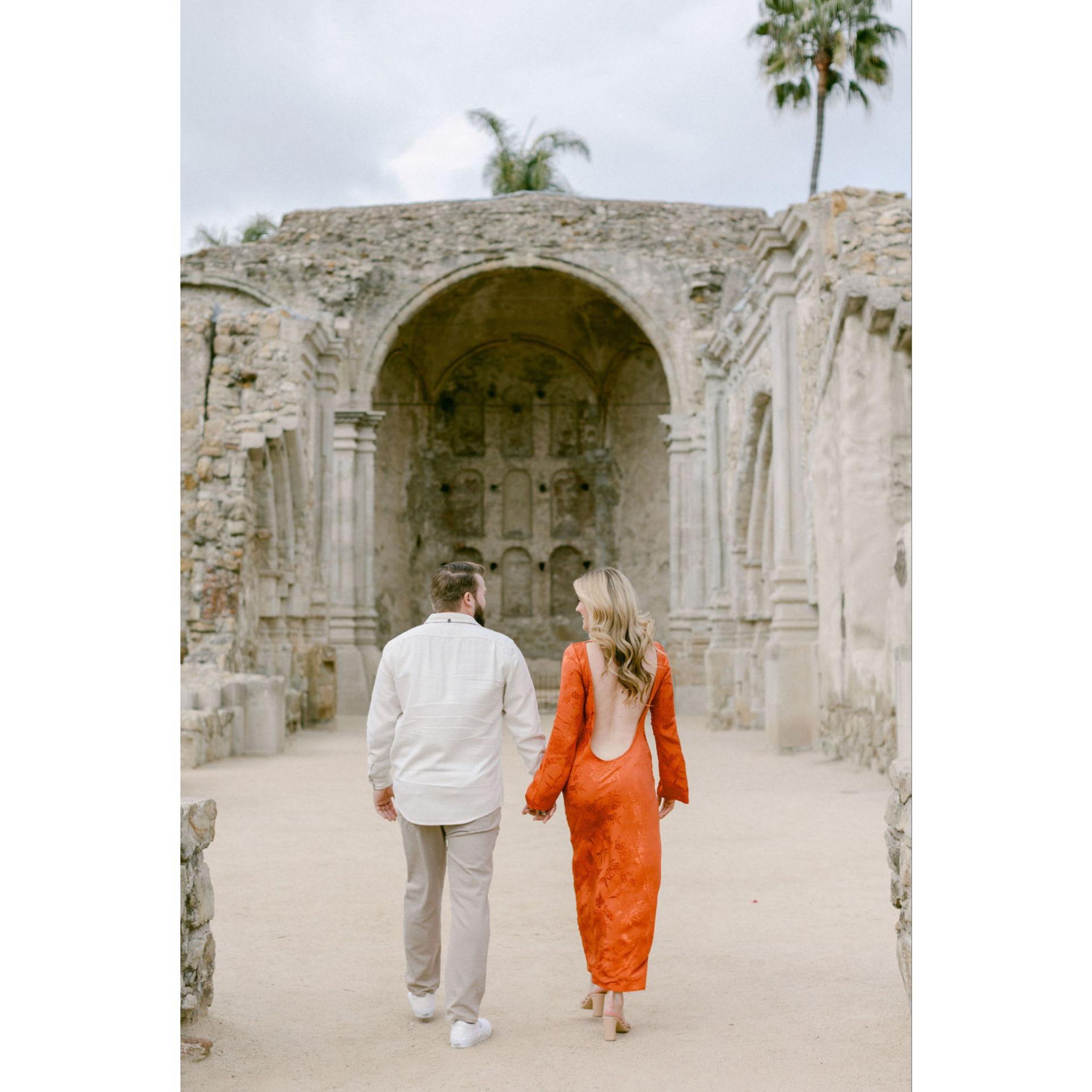 Our engagement session taken at the Mission San Juan Capistrano
