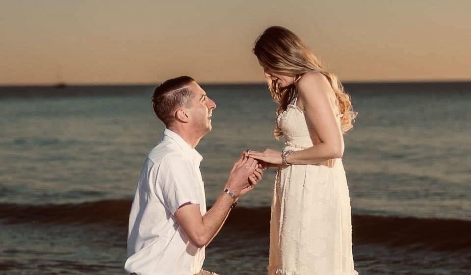 On a beautiful family vacation in Treasure Island FL, with the Klima family, Mitchell took a knee on the beach at sunset. Weeks before the proposal my mom Karen scheduled family photos on the beach that we do almost every year. We had a color palette to wear and my nails were freshly done. She invited my grandparents, my aunt/uncle (godparents),cousins, and my sisters in-laws for our family photo session. On our way to Florida it was very stressful as the "Great Blizzard of 2022" hit and cancelled thousands of flights (RIP Southwest). I headed straight to Florida two days before Mitchell as I got stranded in ATL and couldn't make it back home. The night before he was to fly to Tampa I was up every hour checking that jump-seat to make sure it was still open and he was going to make it to family photos on time. Little did I know, Mitchell had bought a ticket 2 weeks prior to guarantee he'd get on the flight, as long as it didn't cancel. He didn't tell me this, so of course I was stressed and didn't sleep much the night before he was flying down. I was too tired to get him from the airport so my dad went to pick him up. I was stressing out but he made it. At sunset we went down to the beach to start the photoshoot. Mitchell waited till the very end to ask me to marry him. The sun was setting, we were getting closer to the freezing water, but surrounded by my family. he asked me to marry him. and I said yes! The moment was captured on video from family and the photographer. Made for some gorgeous photos and some wonderful memories. We are truly blessed to have families that helped plan this special moment for us.