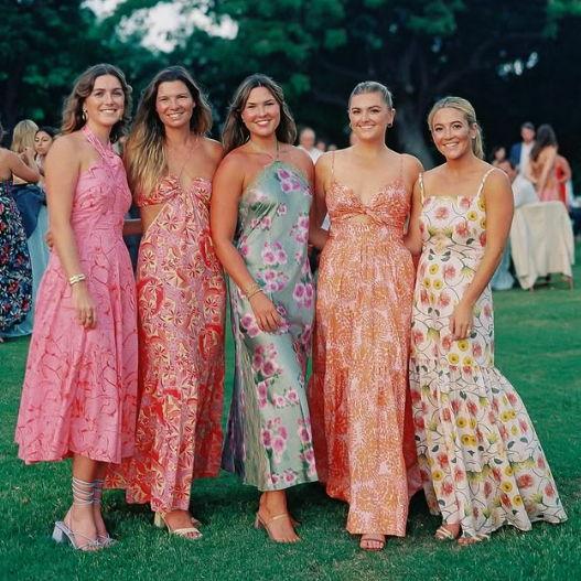 For the ladies, cocktail dresses, midi or maxi dresses, and other dressy styles are welcome. Colorful hues, soft pastels, floral prints, and light fabrics are all wonderful choices.