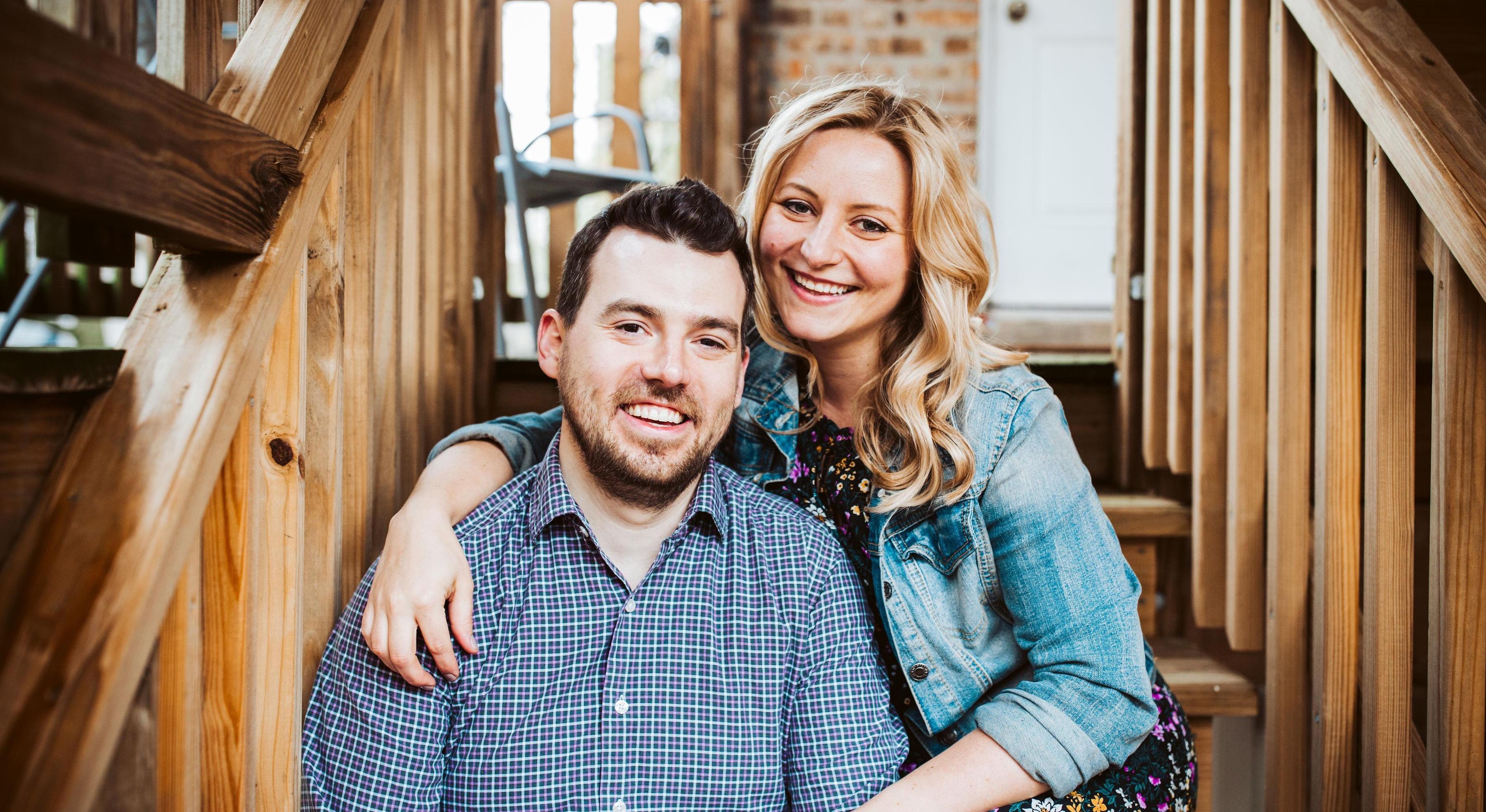Natalie was living a quiet life in her North Center apartment. Sound would travel from unit to unit, but it was fairly typical for Chicago living. That is, until Chris moved in above her. She brushed off the heavy upstairs footsteps and late night pacing. But the day she woke to Chris and his buddies singing the Star Spangled Banner at 3am - that was enough. Decked out in her pajamas, Natalie went upstairs to reprimand Chris for his late night, patriotic singing. Chris thought the best way to remedy the situation was to invite her in for a drink. Needless to say, she declined. She followed up the next day with a passive aggressive email asking him to keep it down after 12pm on weekends - sharing her phone number so they could text when one neighbor was being too loud. As Chris would say "eight ball, corner pocket." Chris took her number, but used it to text her Bob Dylan Youtube videos, invite her up for after hours, and apologize for staying up so late because he had to "brush his teeth because his brother was a dentist." As their neighborly friendship grew, Natalie's annoyance waned. One day, they ran into each other and Chris invited to watch the upcoming Marquette game with friends. Natalie accepted and Chris panicked, because he hadn't invited anyone over. He sent out a SOS email, calling in "the friendship card," for his friends to come over. His friends showed - Natalie did not. Naturally, Chris texted Natalie for after hours later and confessed his feelings. While Natalie was unsure at first, she suggested a date and quickly embraced his questionable jokes, witty sense of humor and realized how much they had in common. They now live in Lincoln Square and spend their time slow dancing to vinyl records, playing darts and listening to hot jams, finding new ways to spoil their dog, and wondering how they got so lucky.