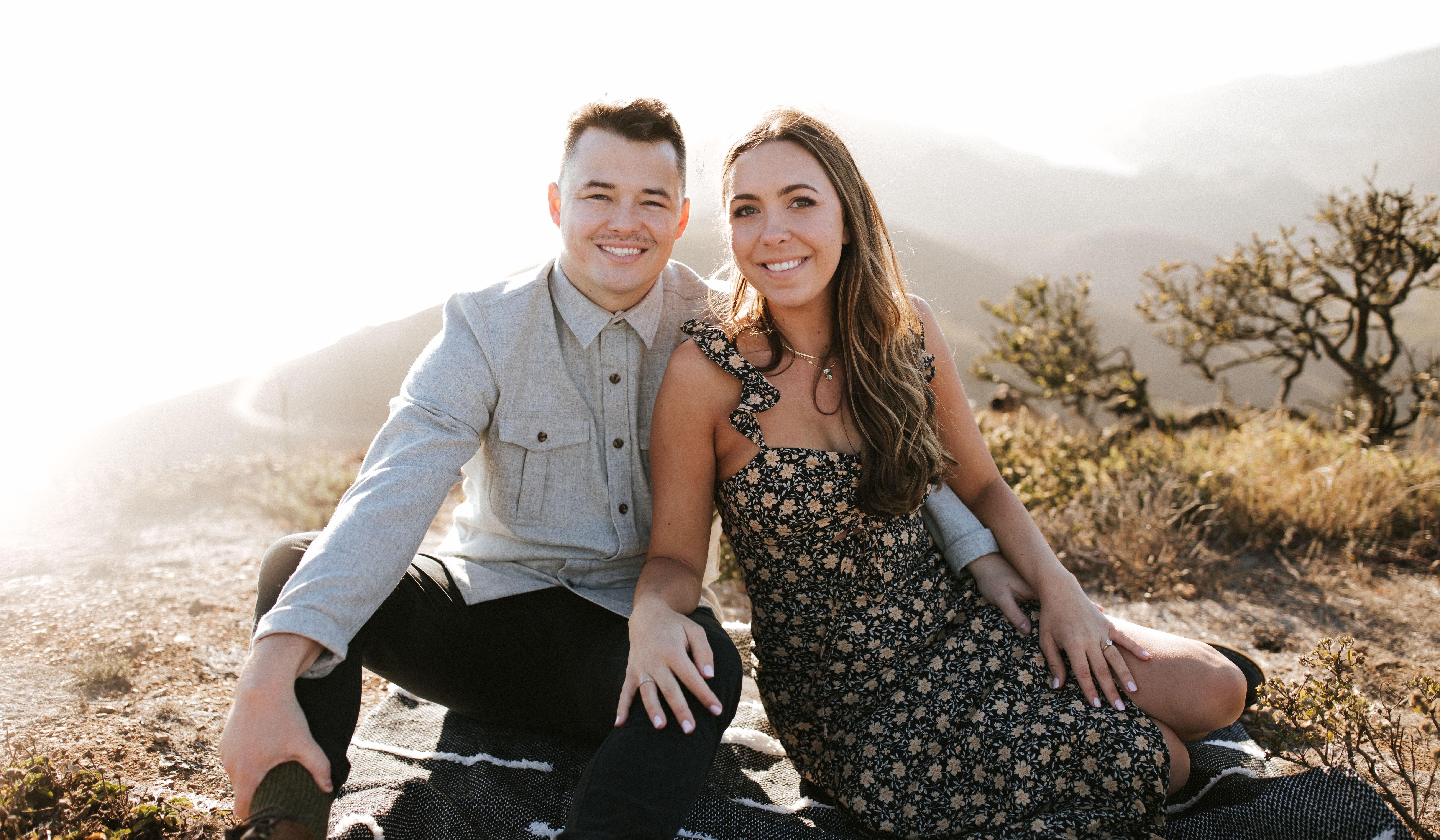 Natalie and Jack first met in June 2017. This past May marks four years together for them. When Jack moved to Salt Lake City, Utah, for a new job in fall 2016, he met Natalie's high school best friend, Audree, at a Halloween party and was soon incorporated into the 'Utah Squad'. The following summer, Audree invited all of her hometown friends from Fresno to visit Utah for a music festival in the mountains. Jack and Natalie were introduced (technically by Natalie's maid of honor, Jenny) at the festival and both enjoyed an unforgettable weekend with their friends. They were reconnected the next winter when Natalie traveled to Utah for a month long work assignment. After she returned back to San Francisco, they continued their long-distance relationship, traveling back and forth between the two states or visiting in new cities along the way. Natalie moved to Salt Lake City in June 2020 where they moved into their first apartment together and adopted their beloved cat, Blue. In May 2021, just three days before their three year anniversary, Jack proposed at the top of the Twin Peaks hiking trail overlooking Salt Lake City. They are so excited to start this next chapter of their lives as Husband and Wife in their first home in Petaluma, CA.