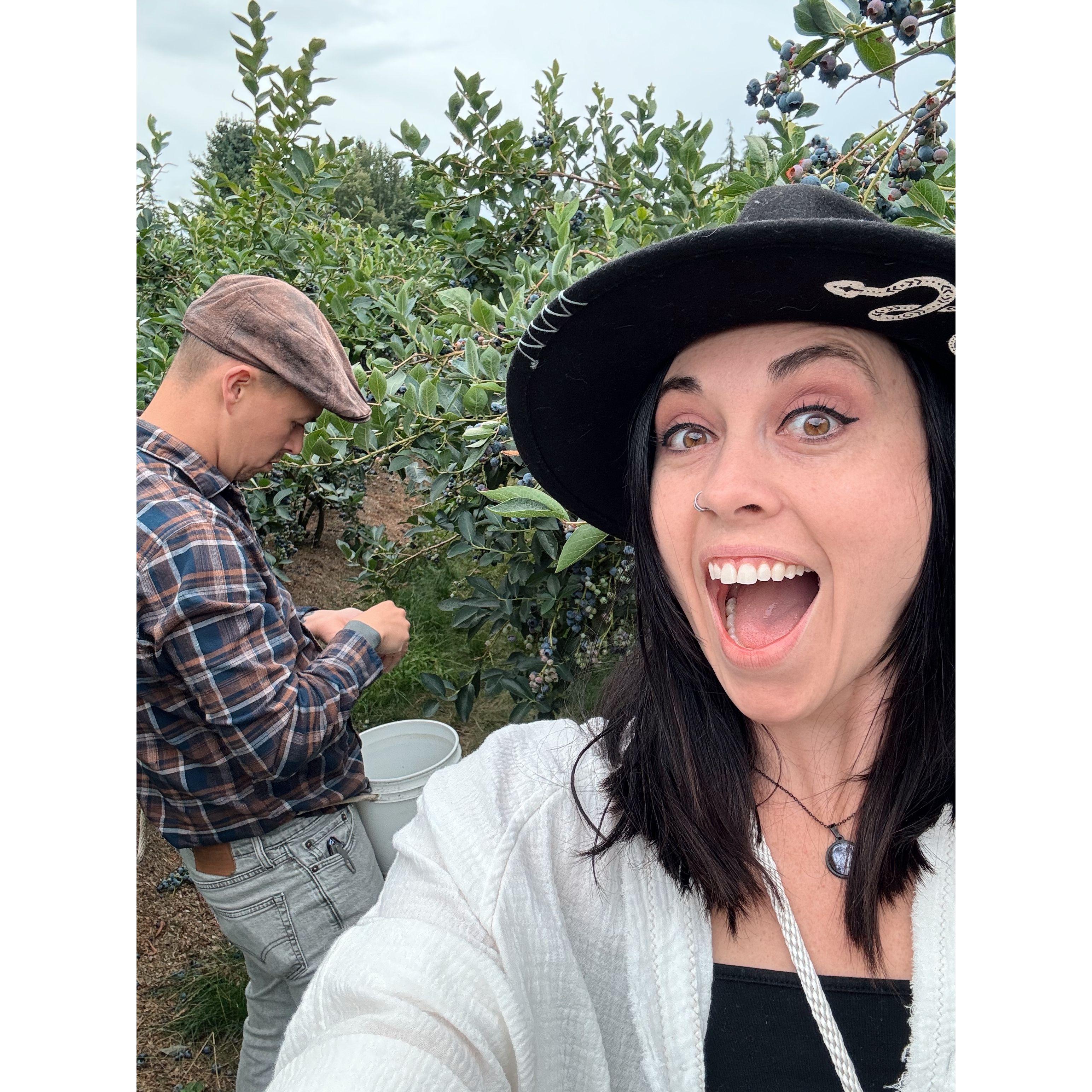 Our first time picking fresh blueberries!