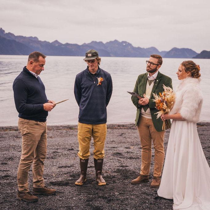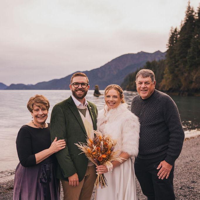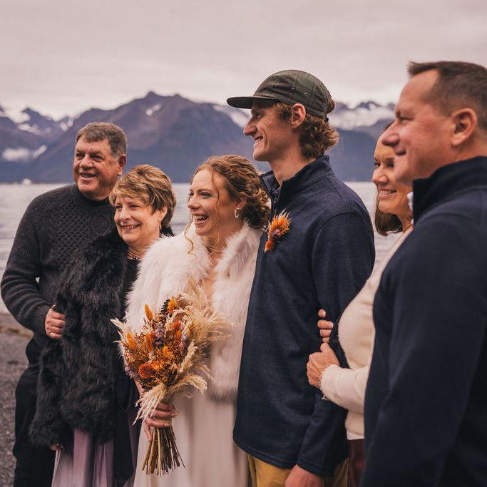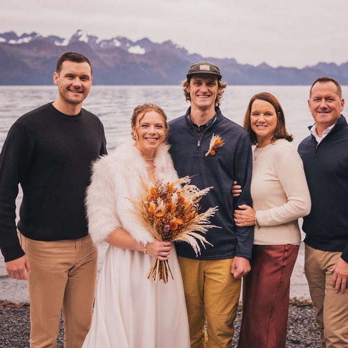 Nick and Delaney met in 2019 while working at Adventure 60 North in Seward, Alaska. They decided to bring their family back there to celebrate their wedding.