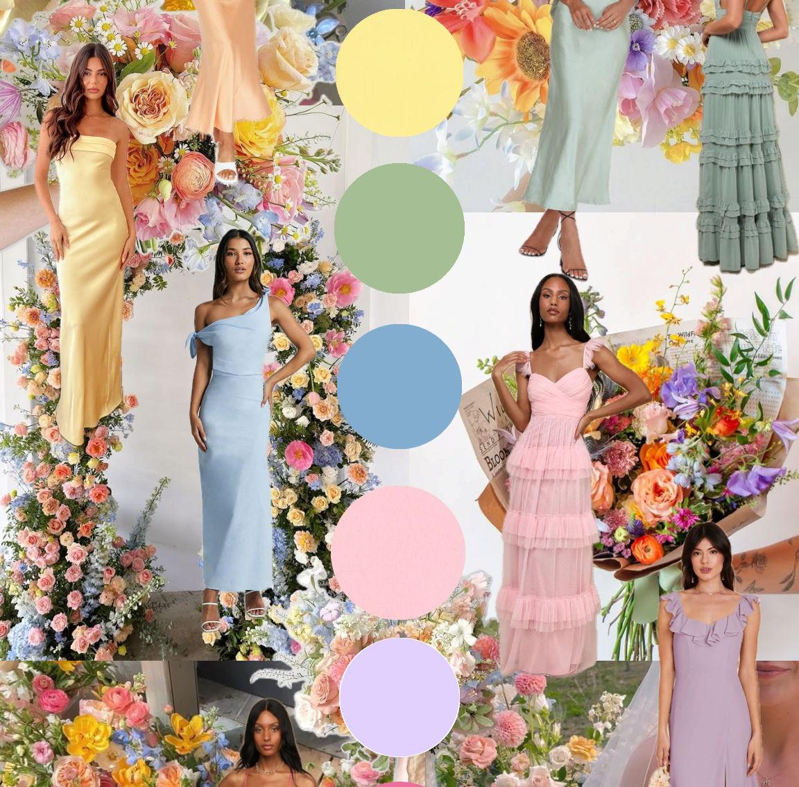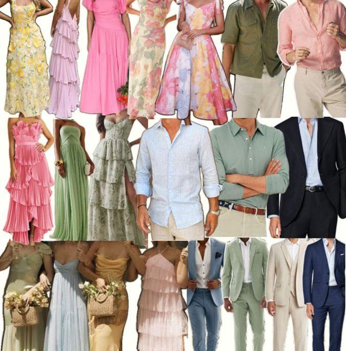 Midi or Maxi dresses in light pastels, satins, patterns & textures are encouraged.