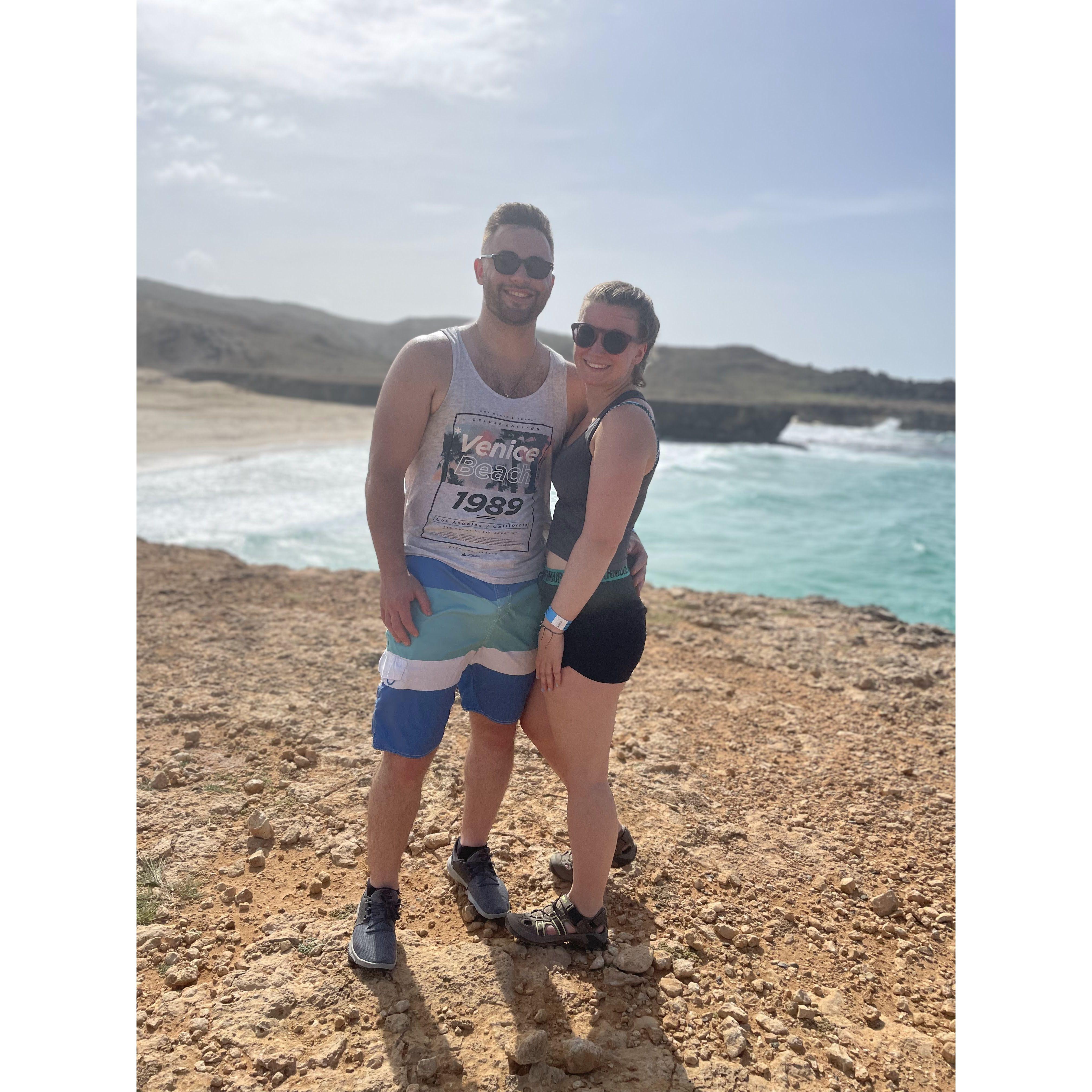 Despite convincing Emily that she had to wait until after graduating from her PharmD. program, Noah was able to dodge any questions, make it through TSA digging into his bag and almost showing off the ring in all her glory, and get through several days in Aruba before finally asking the question. Noah popped the question right before a planned dinner to celebrate 4 years together, making it the start of a very special chapter.