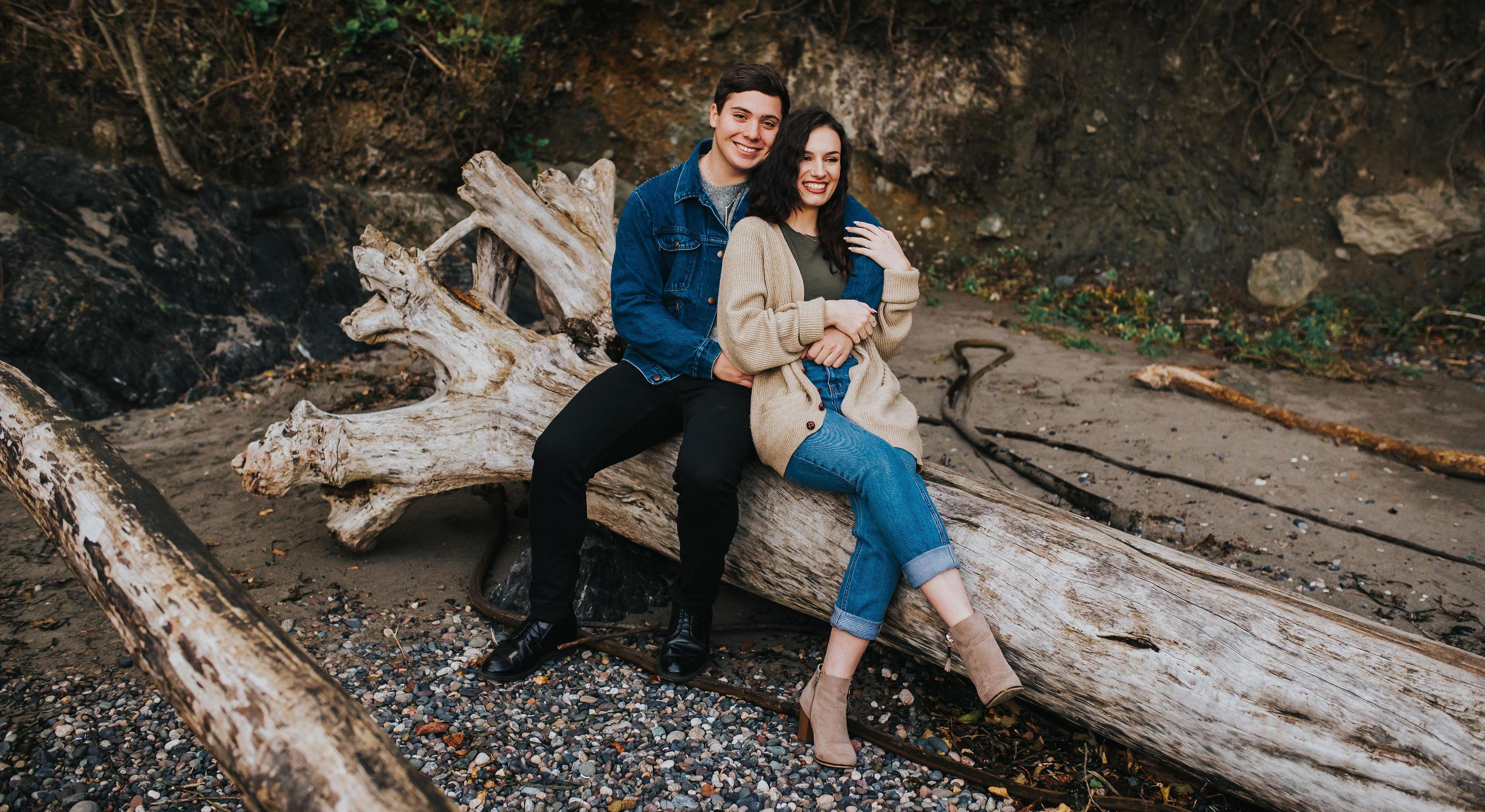 Noah joined the Navy and was sent to Whidbey Island, Washington. Kate was still at the University of Texas and we had been long distance for a couple years. She went to visit him for our 3 year anniversary and on the Fourth of July, Noah took her on a hike up Sugarloaf Mountain. Once we reached the top and were out of breath, we enjoyed the view along with some bird watchers. We were about to leave when Noah suggested we get some pictures and right then, overlooking the mountains and the ocean, Noah got down on one knee and Kate said "Wait, what? No, here??" Noah then asked Kate to marry him and of course, she said yes! The whole island shot off fireworks for us that night! We had discussed marriage before, because we're in love and knew it would happen eventually. When Noah joined the Navy, things sped up. We wanted to get married as soon as possible so Kate could move in before Noah deploys. Kate always wanted a degree before a ring, so we're waiting until after she graduates. Once we get married, Kate will move to Washington to be with Noah until he deploys. When he gets back, the long distance will finally be behind us. We can't wait for that day.