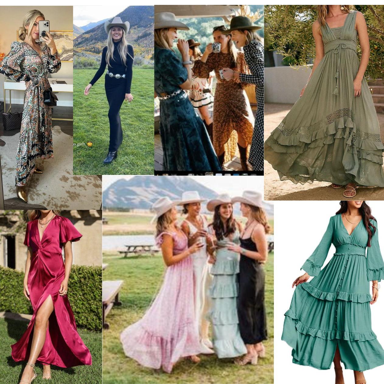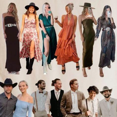 Our dress code is Country Cocktail! Here is some inspiration of outfits to wear. Of course, choose what makes you feel the best. These pictures are just some ideas if you're unsure of our dress code. **If you do not have western wear, please adhere to traditional cocktail attire.**