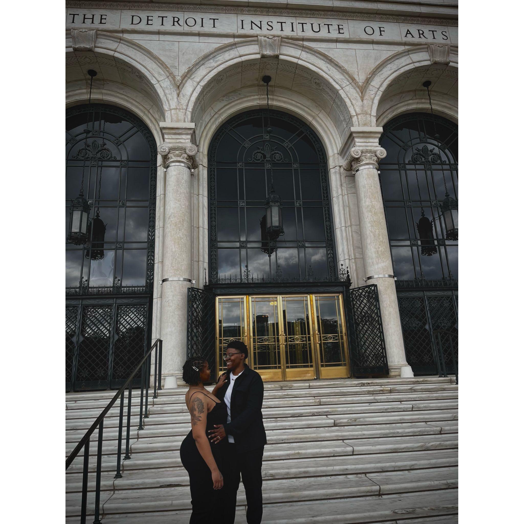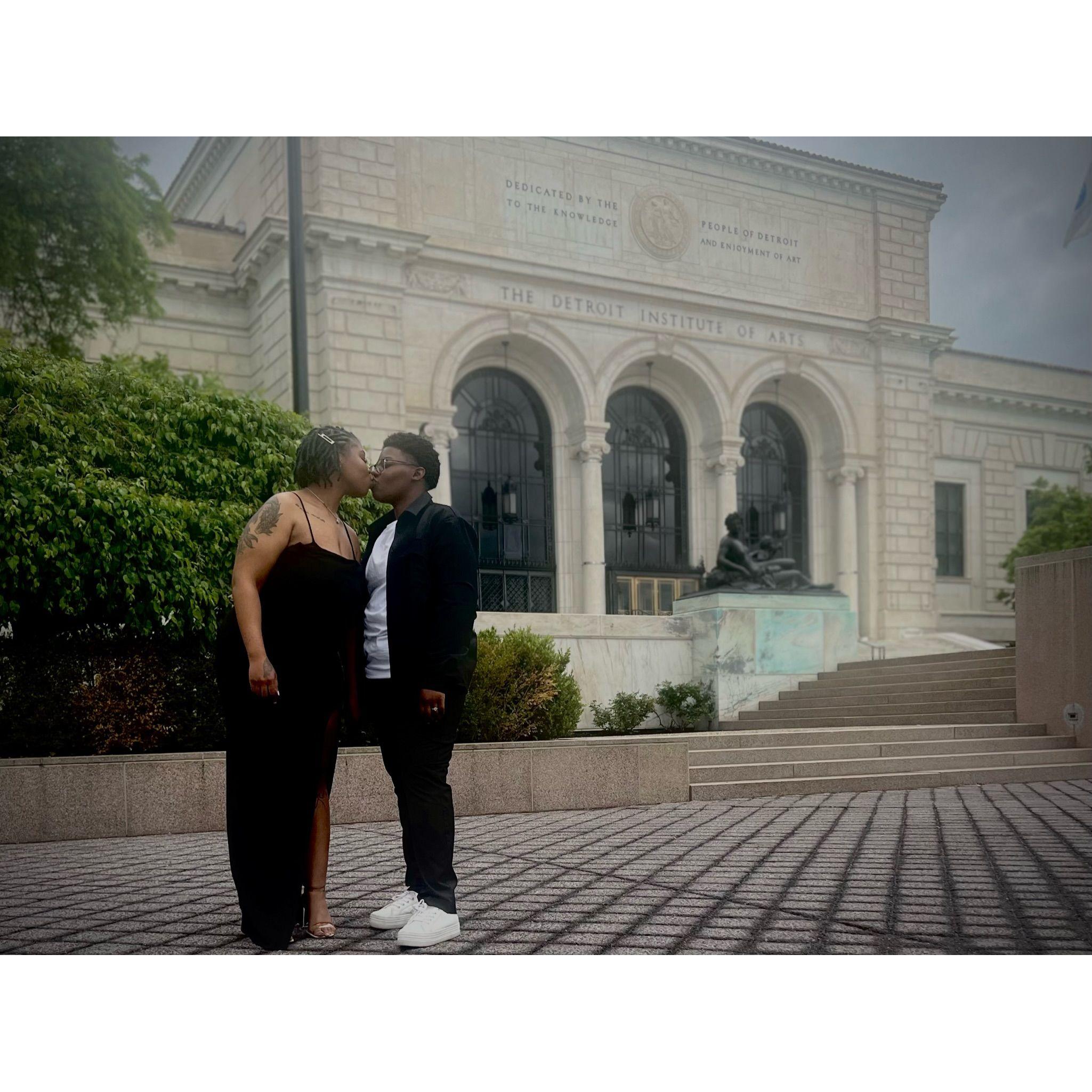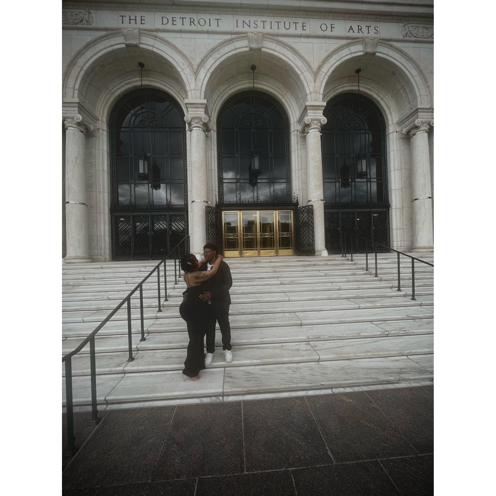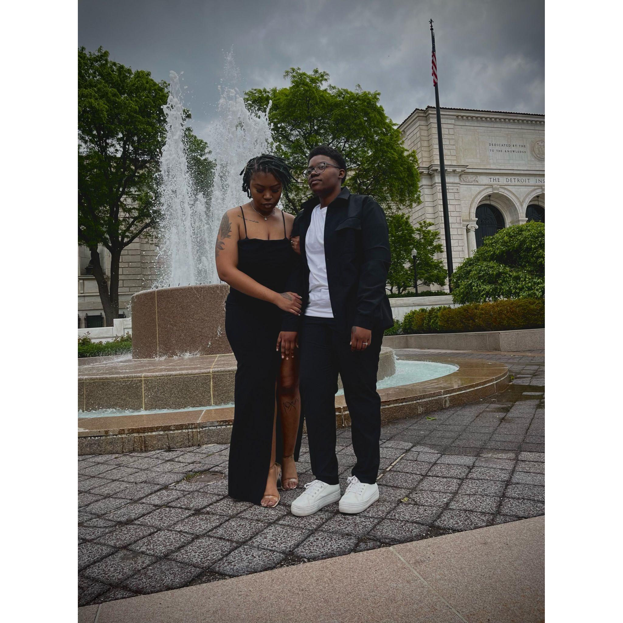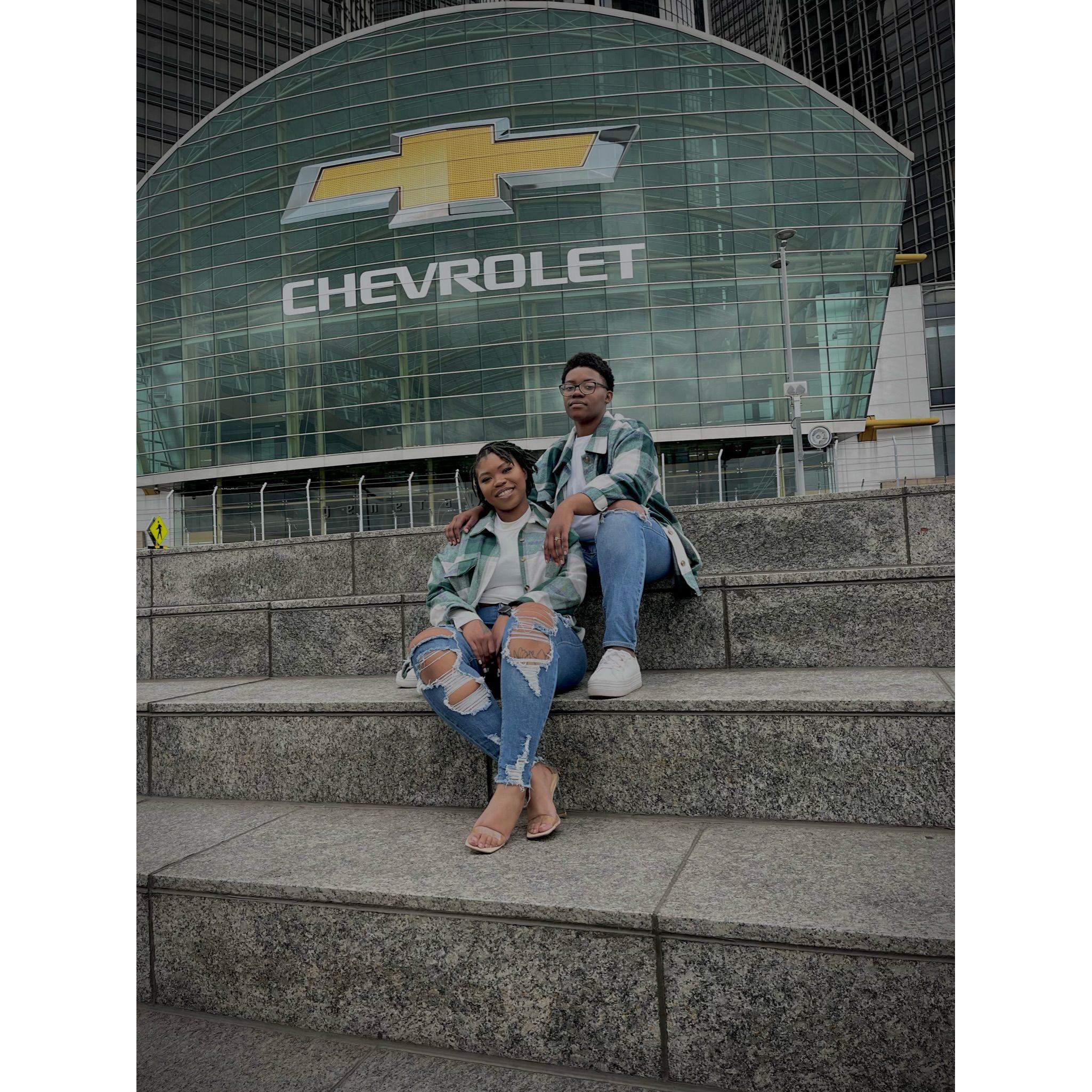 Standing in Hart Plaza, pictured behind us captures the essence of Detroit! To our left is the "Spirit of Detroit", and the GM Renaissance Center is directly behind us.