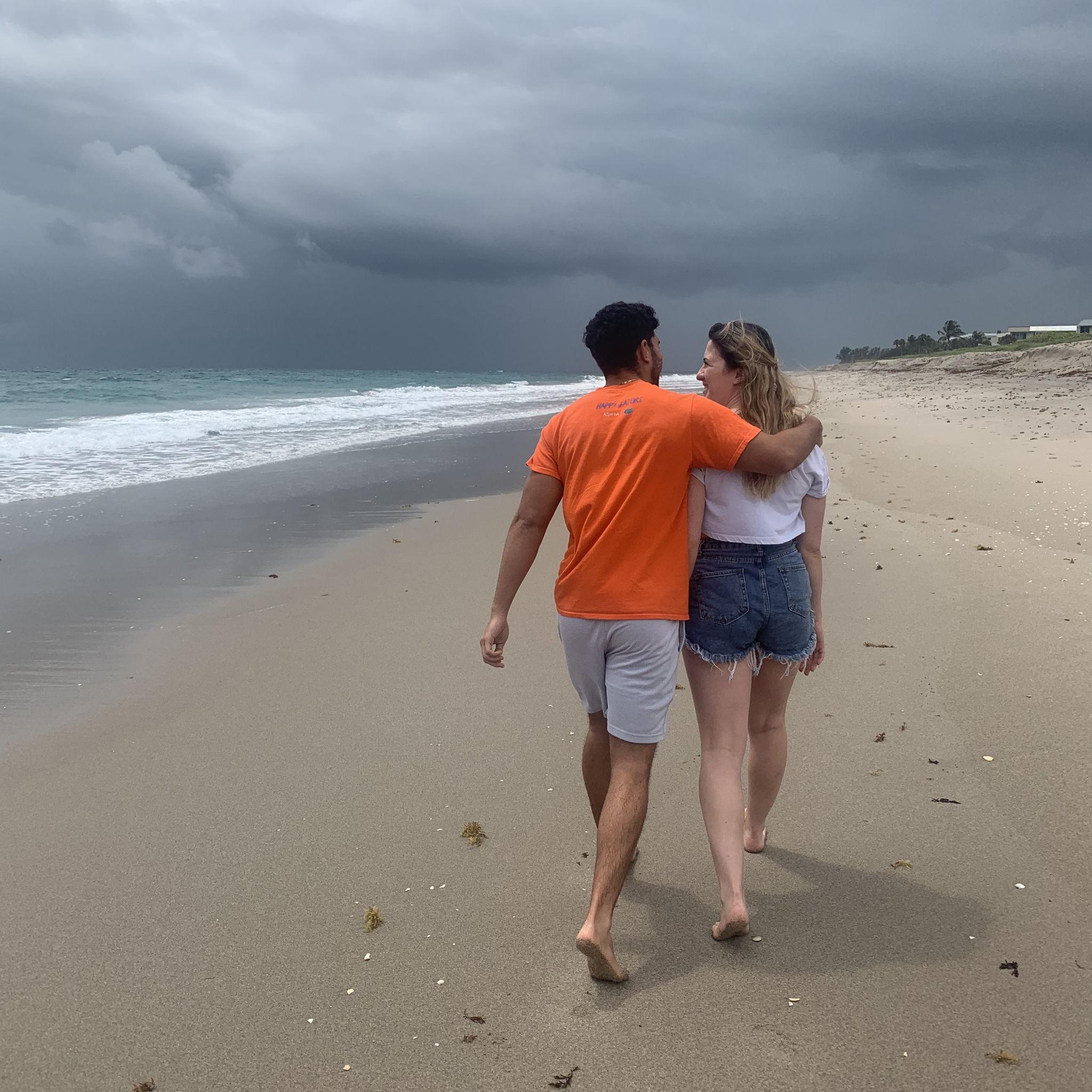 2020: First beach day together when Taryn had blonde hair