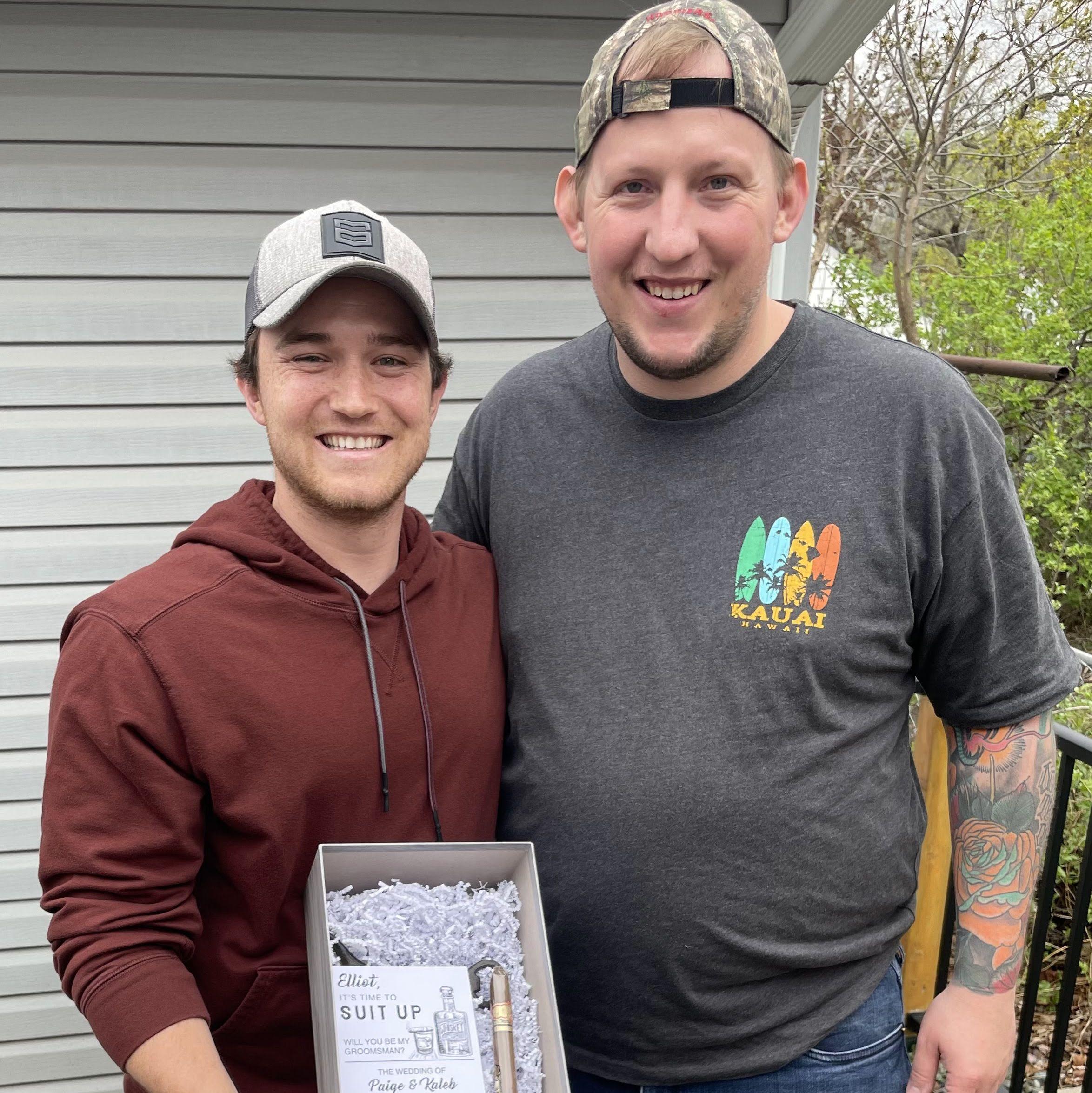 Elliot was one of Kaleb’s college roommates. Kaleb and Elliot were great study partners as well. He could always count on Elliot to be there for him. One thing Kaleb appreciates about Elliot is that when he says he’s going to do something, he always follows through. He looks out for Kaleb, gives great advice and points him in the right direction. Kaleb is super appreciative of their friendship and had to have Elliot stand next to him as a groomsman. 🍻