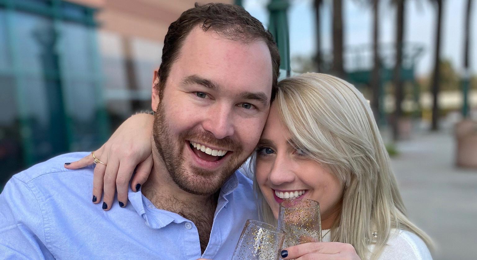 Patrick and Catherine met, unofficially, 25 years ago by attending the same K-12 schools. Patrick was a grade ahead, but they shared the same hallways and classrooms throughout the years. They even attended parties together as friend groups merged. After high school, coincidentally enough, they both went off to the same college. Again, they crossed paths often, but the timing wasn't right. Catherine moved to the East Coast for work where she lived for 5 years, while Patrick moved to Chicago for the same reason. However, they both decided to move back home. This is where the romance began. They aren't embarrassed to say that a dating app was what actually reconnected the pair. Seeing someone you grew up with on a dating app made the entire experience less awkward, not to say they both weren't extremely nervous going on their first date. Trust me Patrick almost canceled last minute. Patrick had the best first date idea of going to the planetarium, where they could both look up at the stars together. Instead, they got yelled by others attending the show due to their constant jokes and loud laughter. Patrick had Catherine's heart after that first date even if he was completely oblivious. Joke one turned into joke two, into joke three and four and five hundred until Patrick took the big step and asked Catherine to spend a lifetime of laughter together.