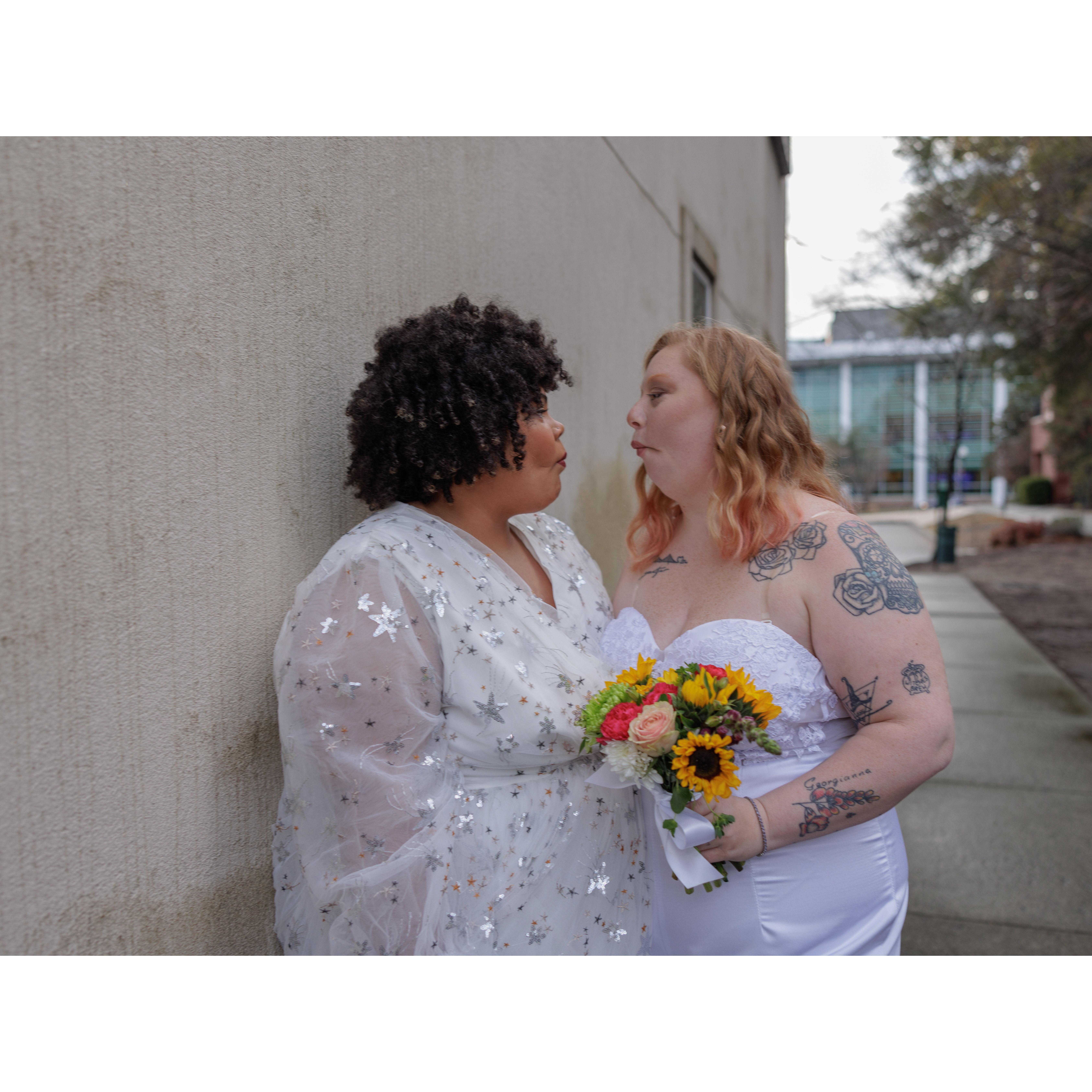 Surprise! We eloped! I know so many of you were looking forward to celebrating our wedding day with us and you still can! You are invited to an informal reception party at our parents house! But Peyton cannot promise not to wear her dress again!