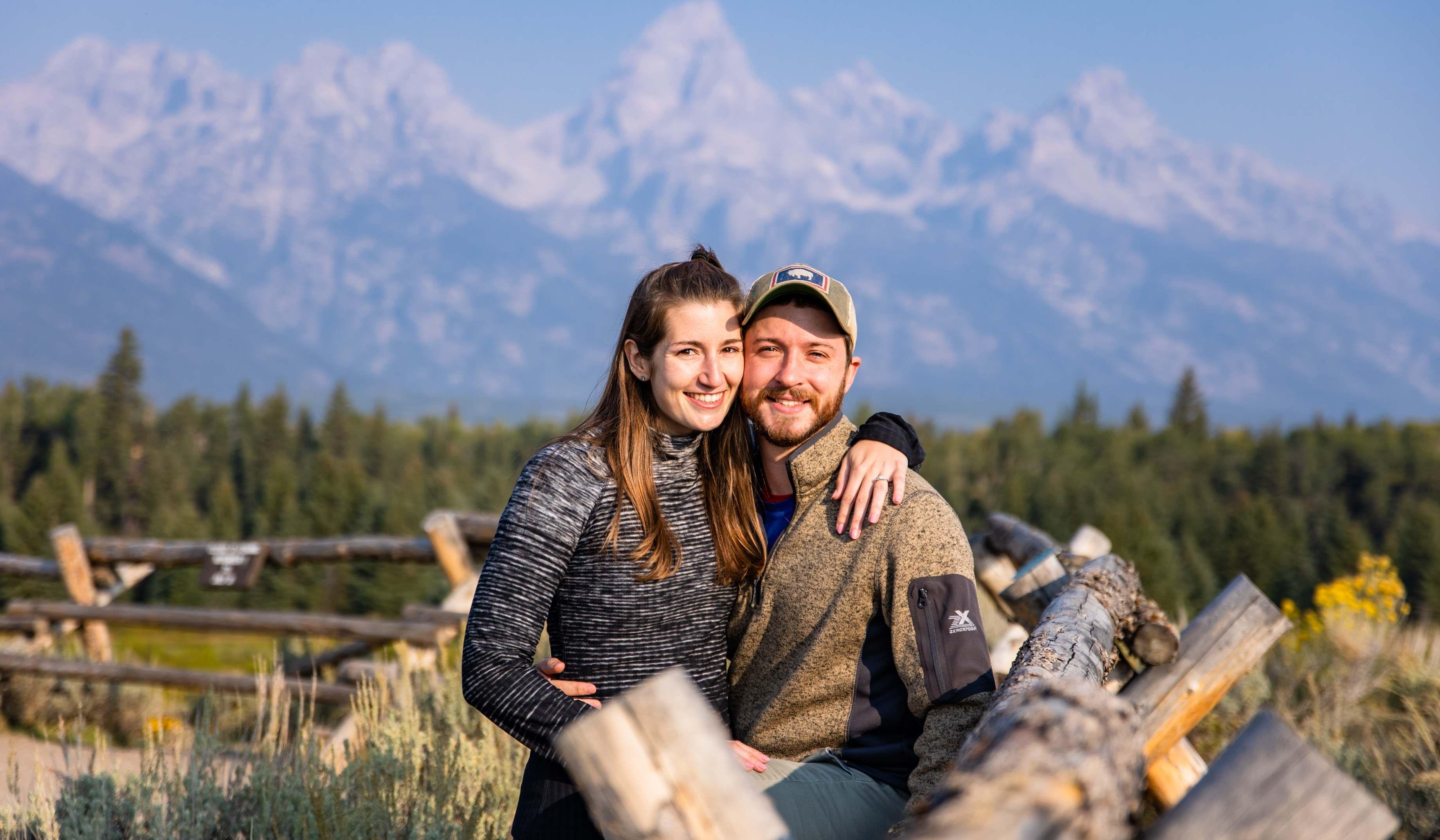 While on vacation in Wyoming in September 2021, Matt made a plan to see the sunrise at Schwabacher’s Landing in Grand Teton National Park (a plan which Katie thought she suggested - very sneaky!). Matt set up a cheap tripod to take a photo of them while they were surrounded by dozens of professional photographers who could have assisted. As they posed for the perfect shot on the bank of the Snake River with the Grand Tetons in the background, he got down on one knee! Once Katie said yes, he introduced her to their hidden photographer who caught it all on camera.