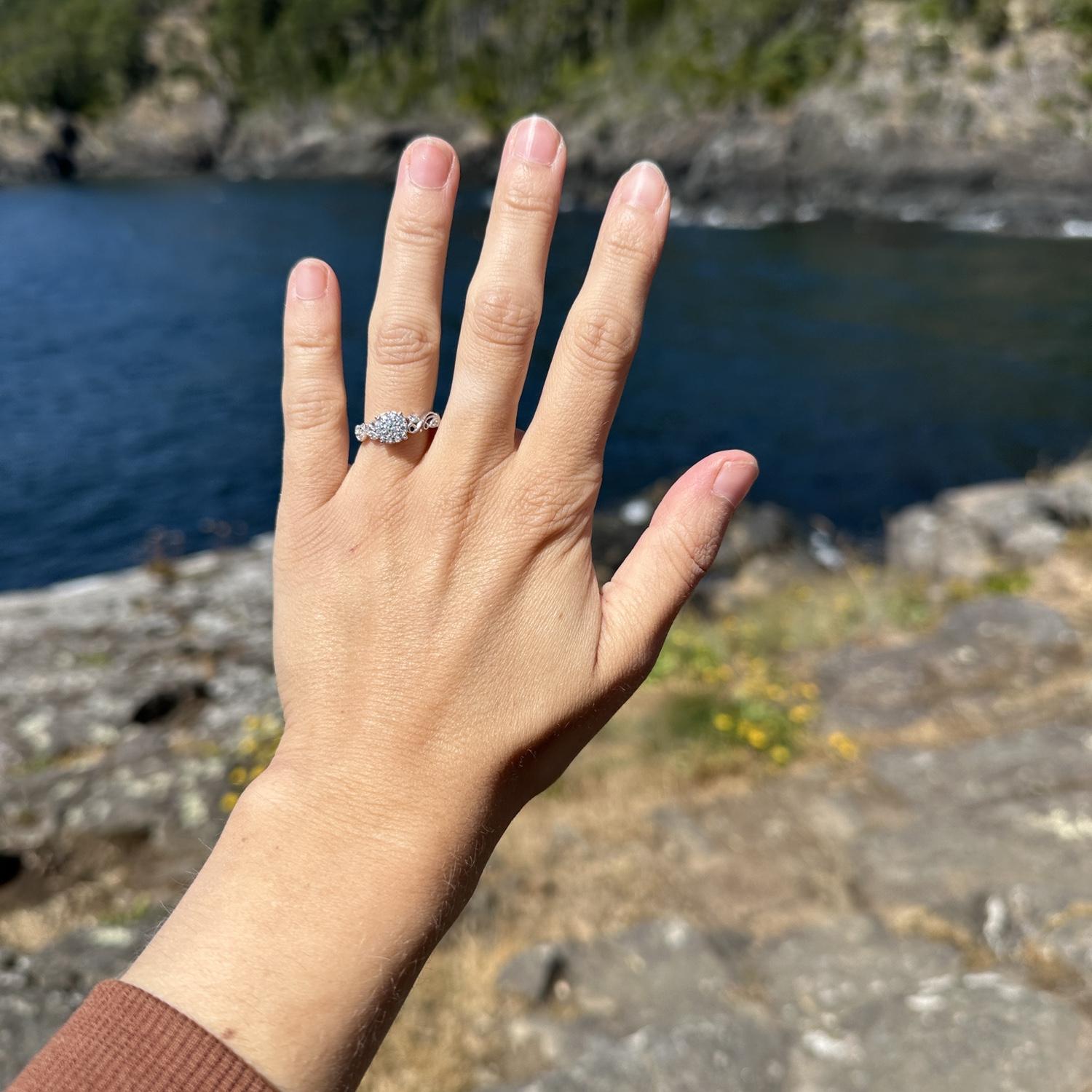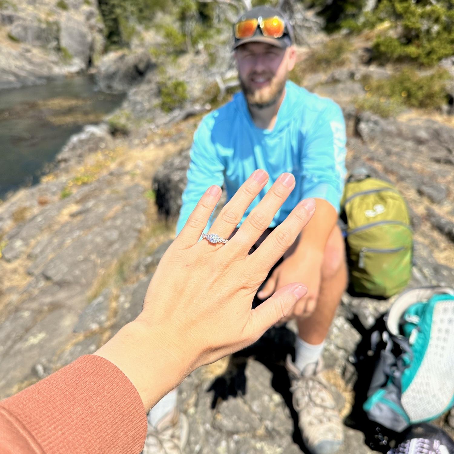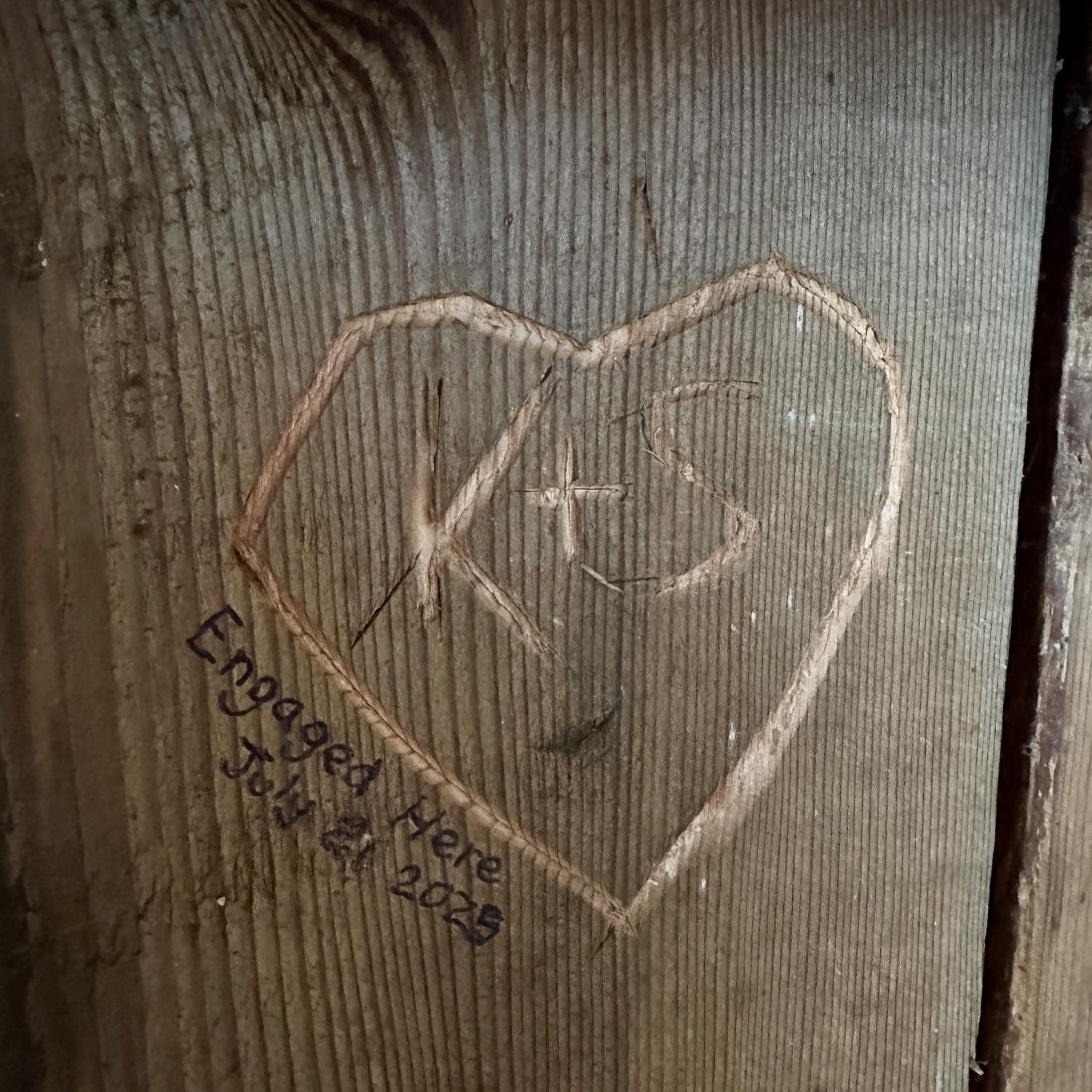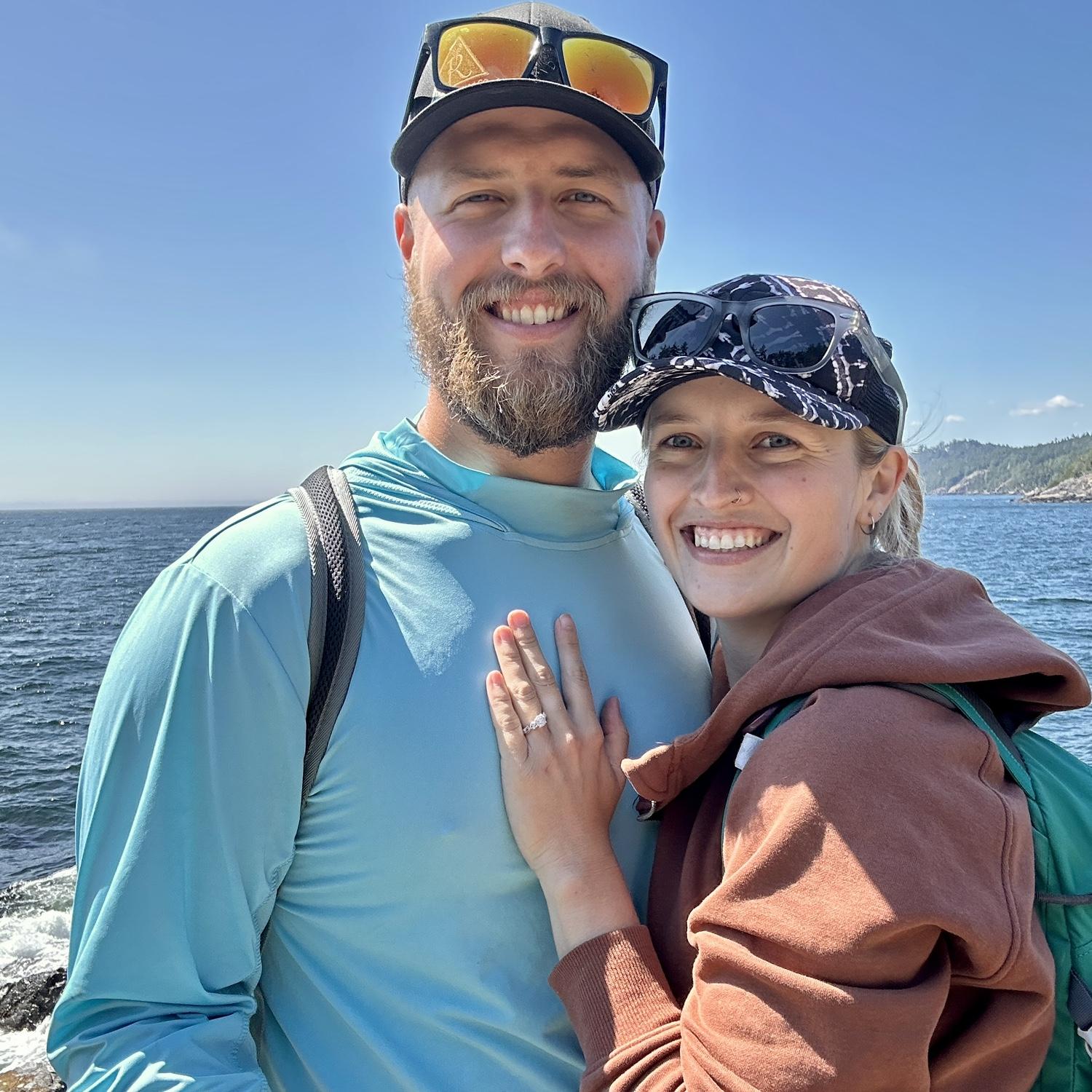 During a week-long road trip living out of their Ranger, Sabrina and Kurtis spent a few nights on Vancouver Island. One day, they took a beautiful coastal hike near Sooke. Along the trail, Kurtis found the perfect spot to get down on one knee. It was a private, unforgettable moment they will cherish forever. To honor the memory, they even carved the moment into a wooden cabin, called Cabin Point, making it a lasting symbol of their love.