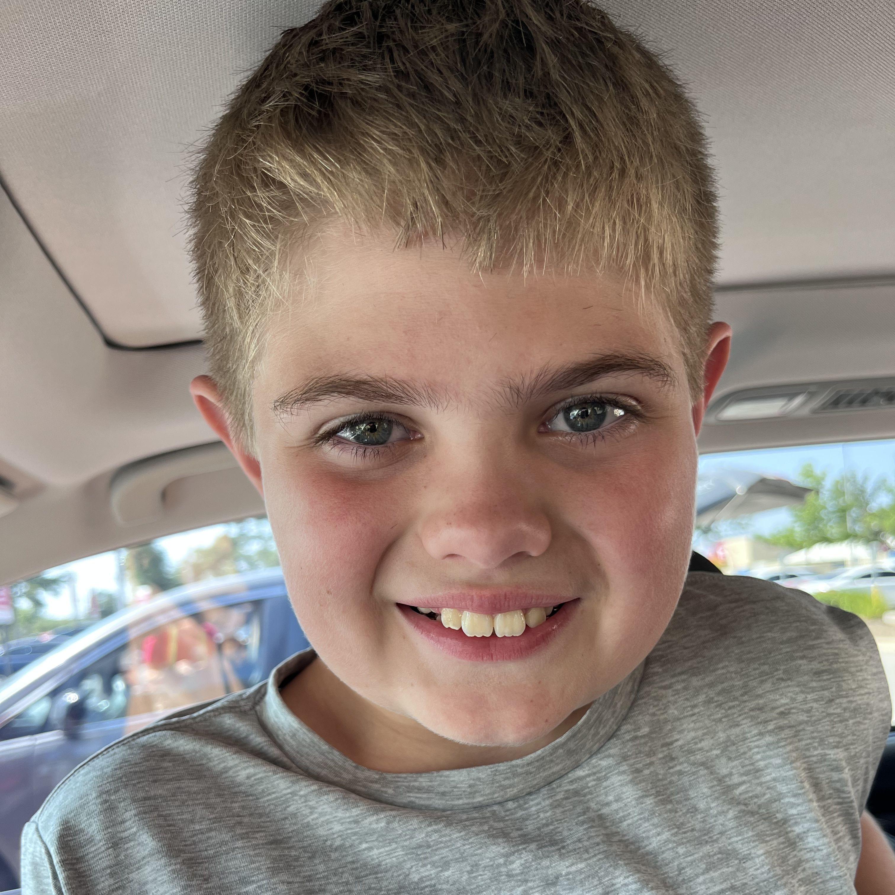 Archie, the last of the Buckley brigade. Archie's a spitfire with the brightest, widest smile to accompany his feisty spirit. If you see a group of kids running down the aisle, Archie may be leading the group. If you're looking for a hug that'll melt you to your core, or a buddy on the dance floor, Archie is your guy.