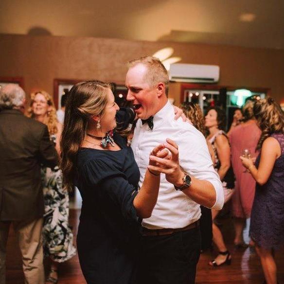 Singing at our friends Meg and John's wedding reception.