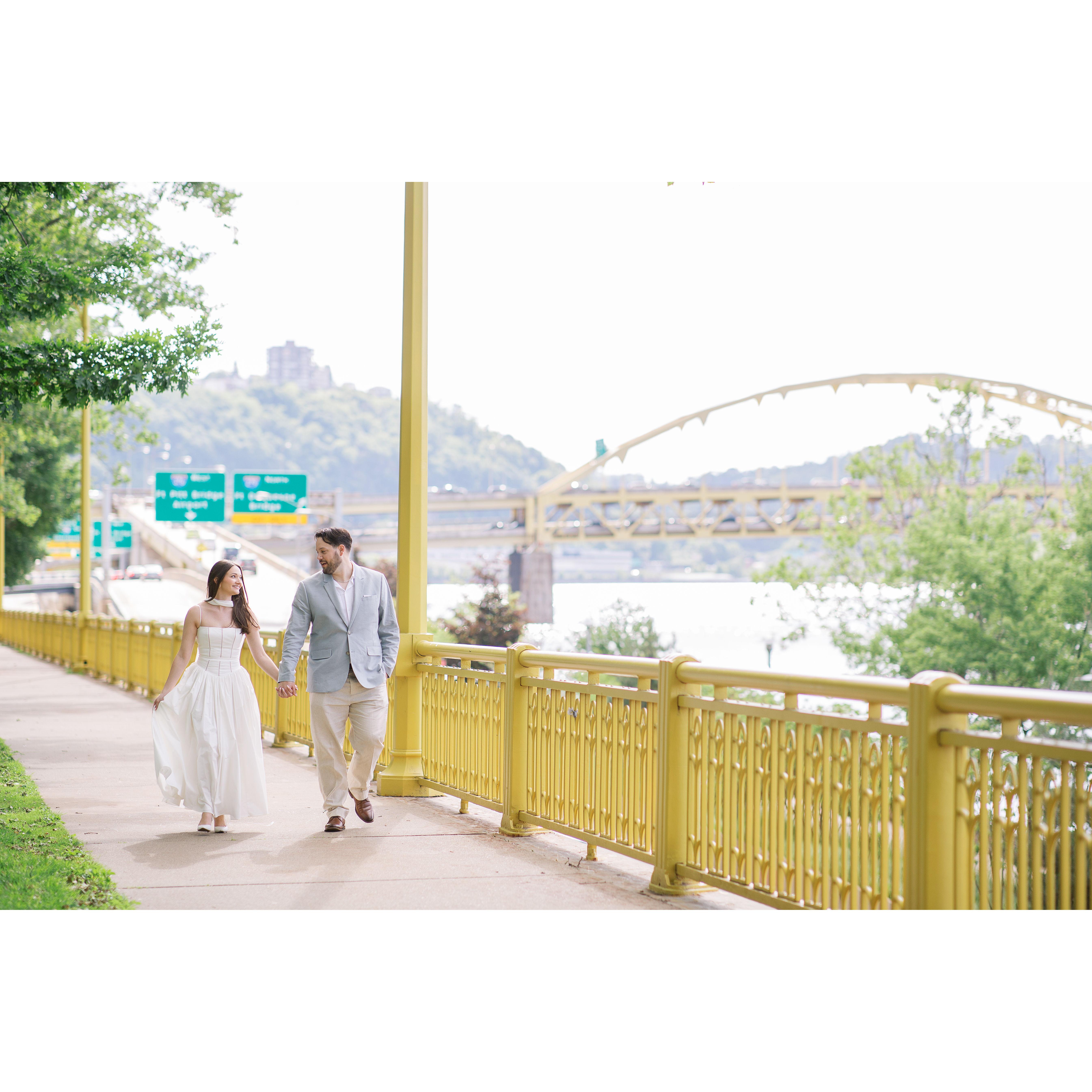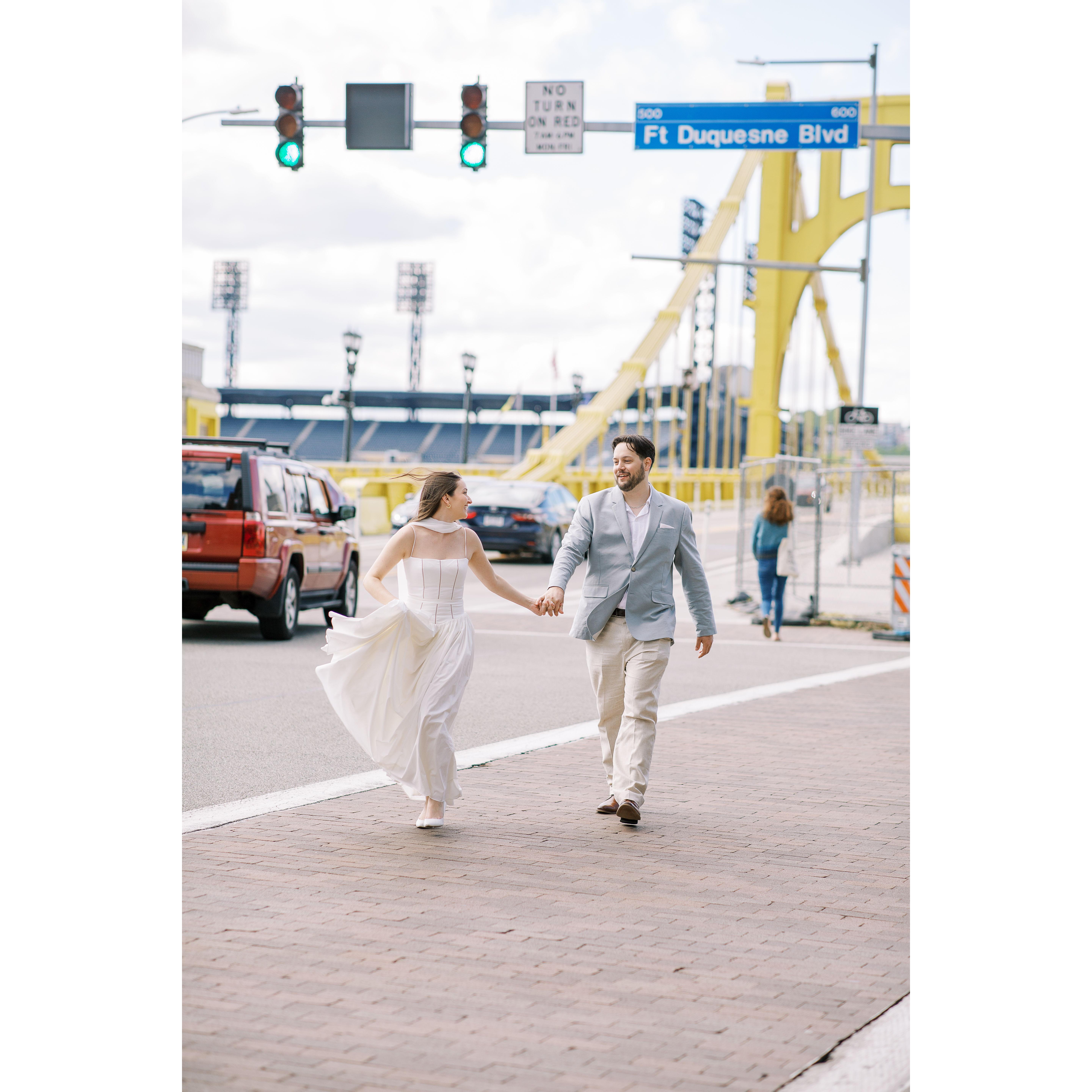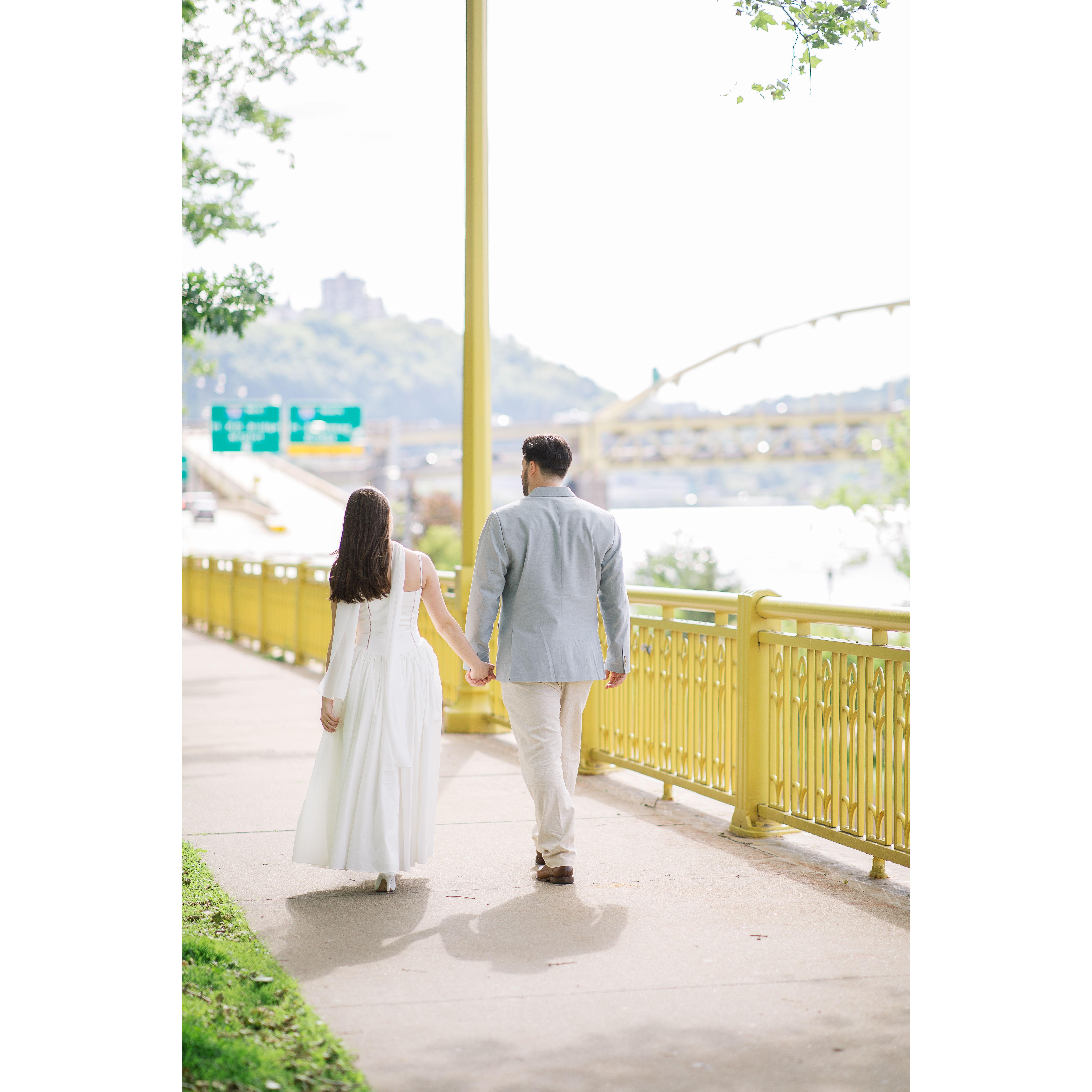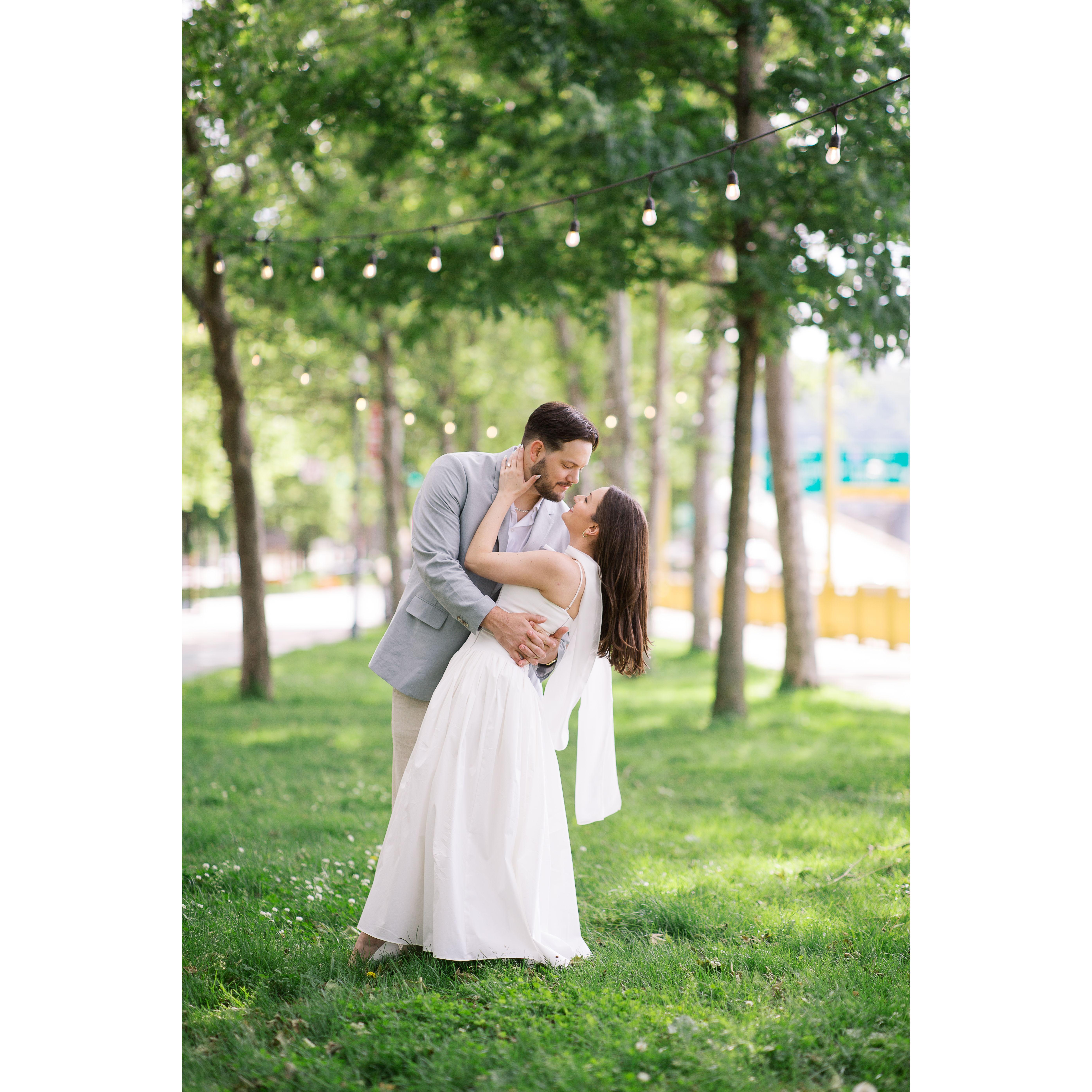 Photos from both Dominic's proposal in Jim Thorpe, PA, shot by Christman Photography, as well as our engagement photoshoot here in Pittsburgh with our wedding photographer Araka Walker