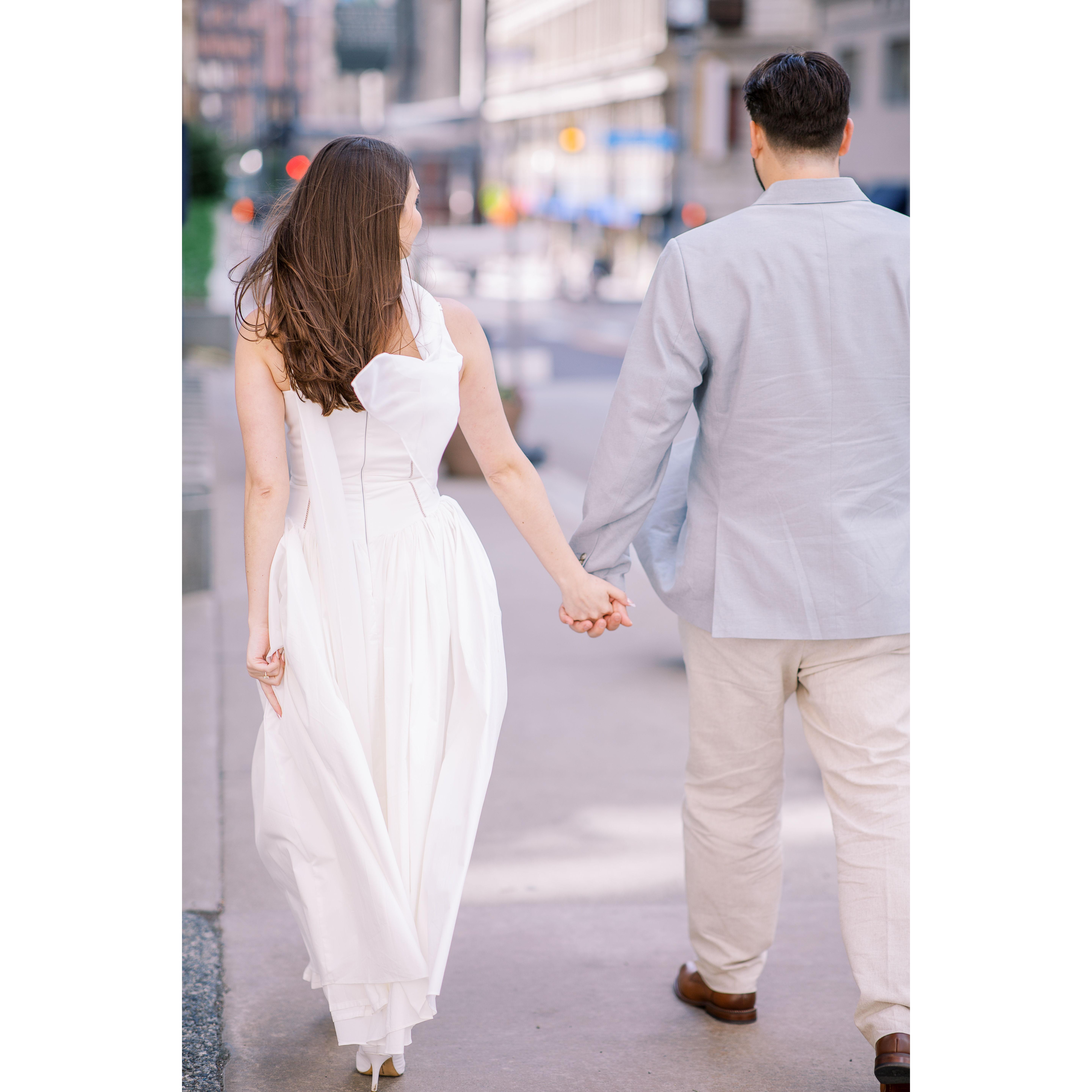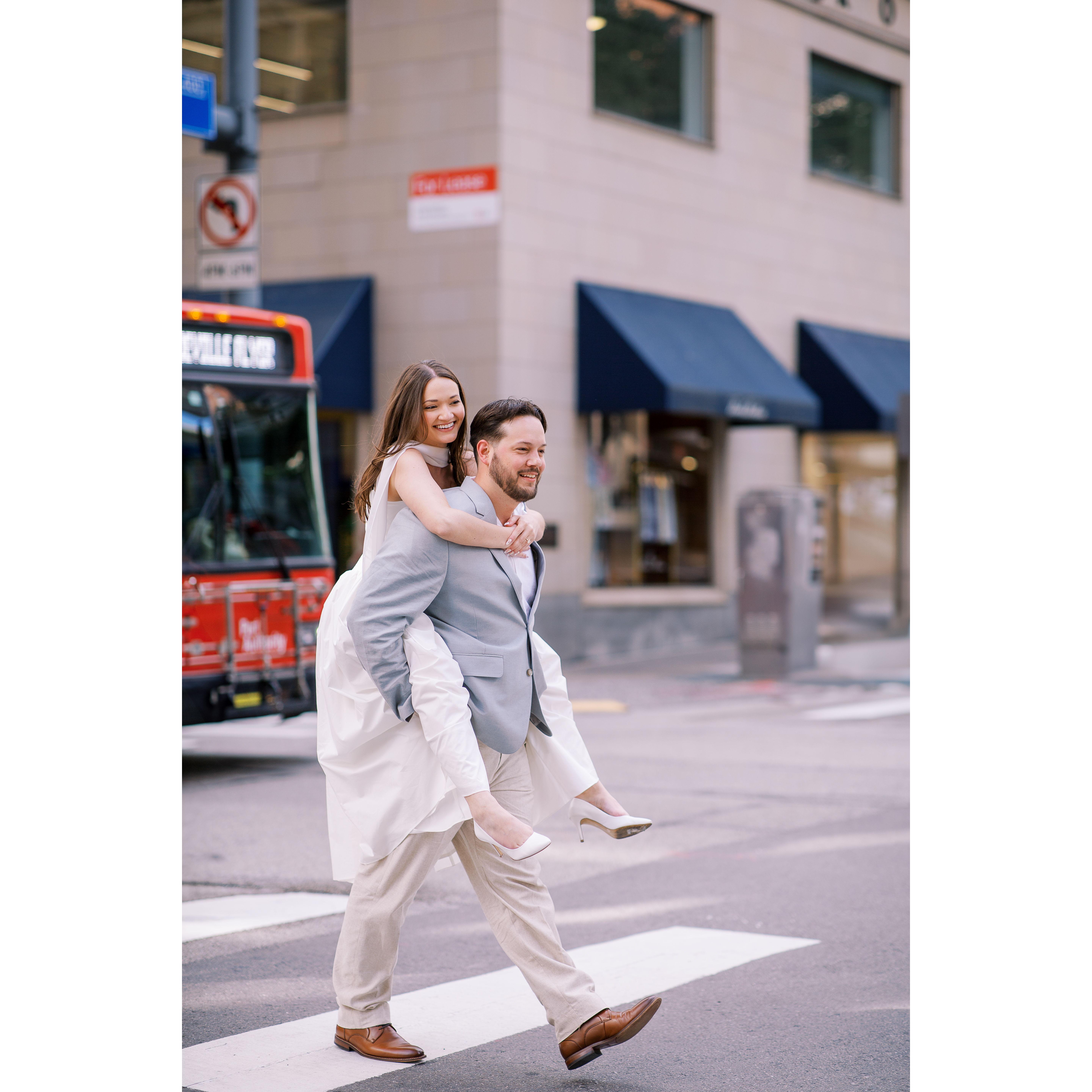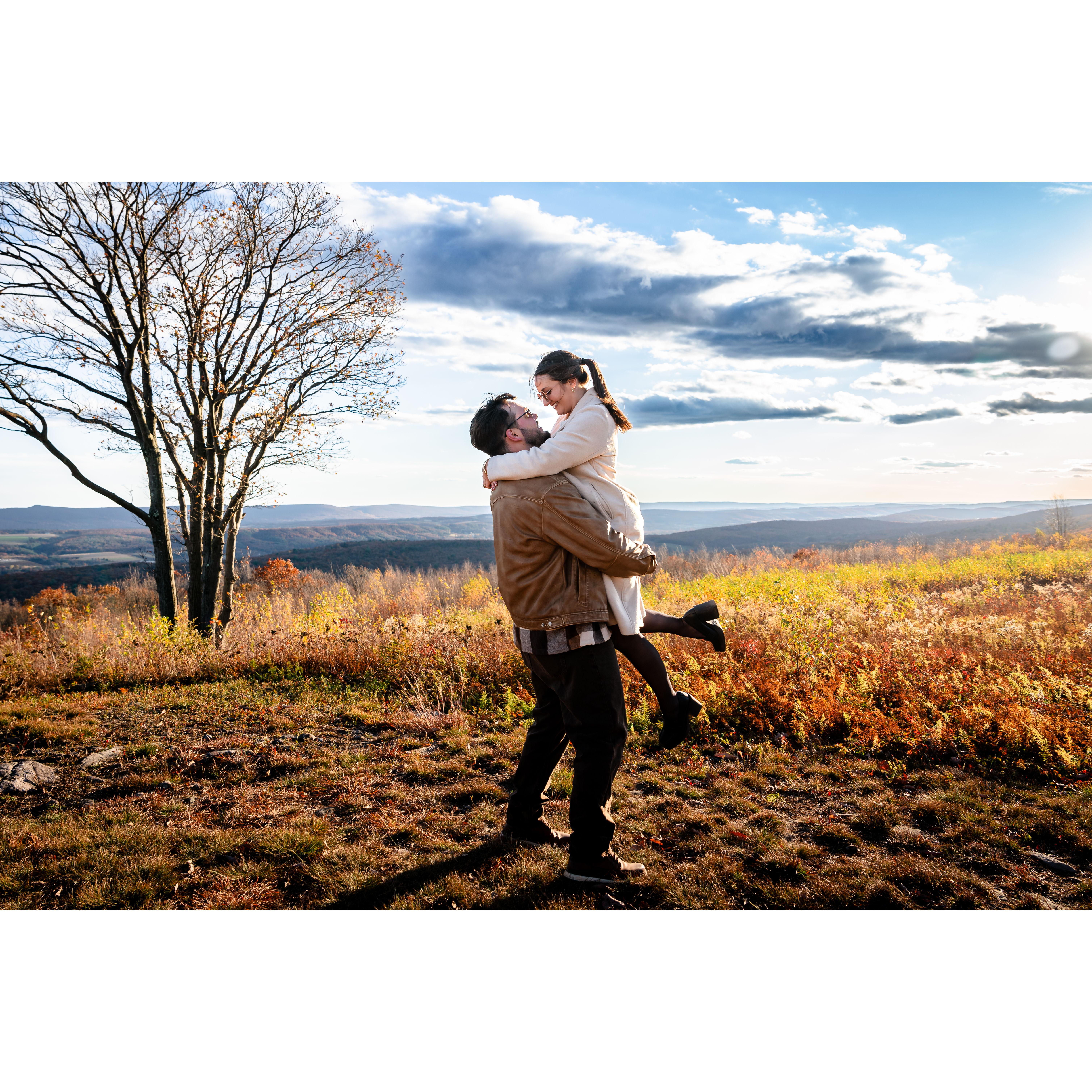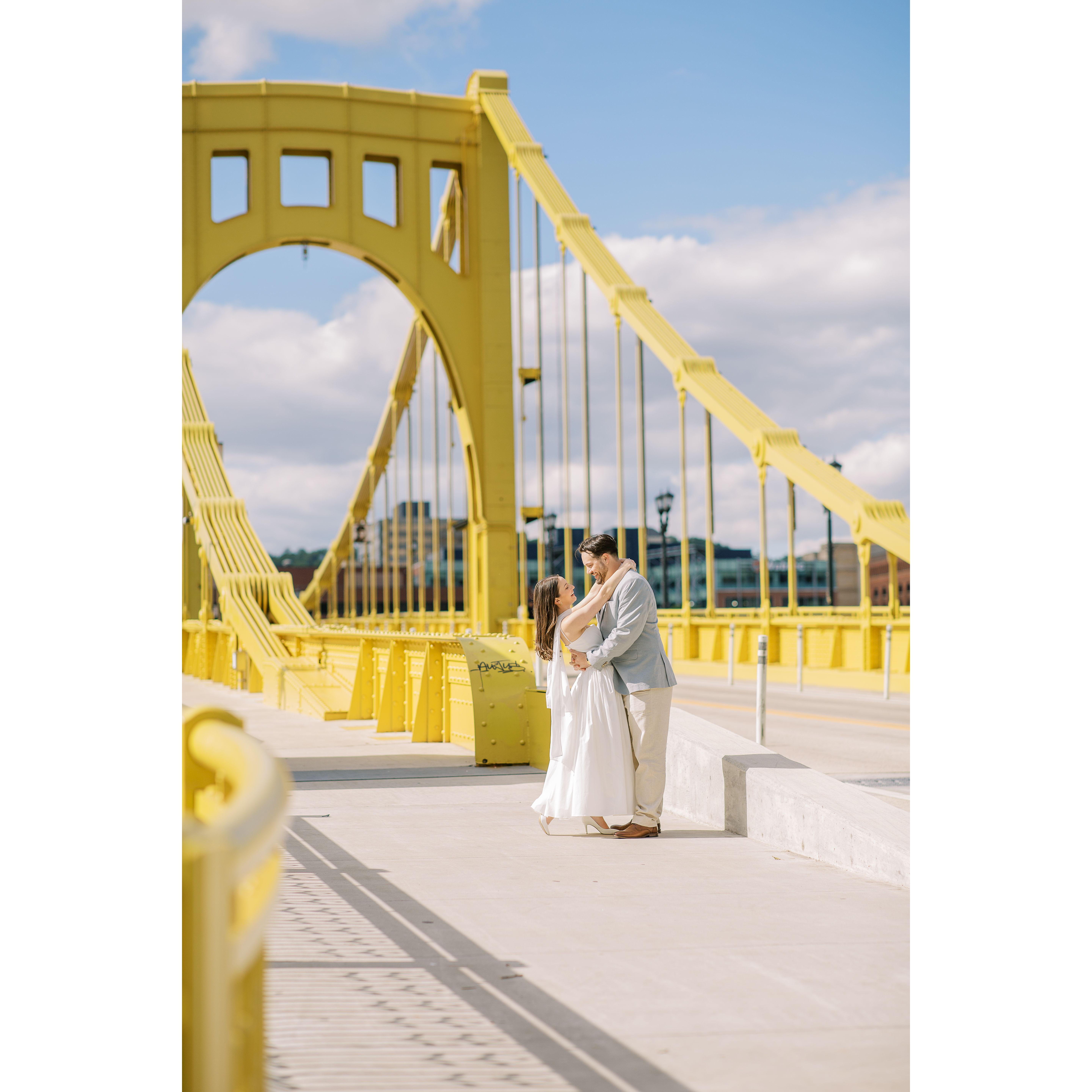 Photos from both Dominic's proposal in Jim Thorpe, PA, shot by Christman Photography, as well as our engagement photoshoot here in Pittsburgh with our wedding photographer Araka Walker