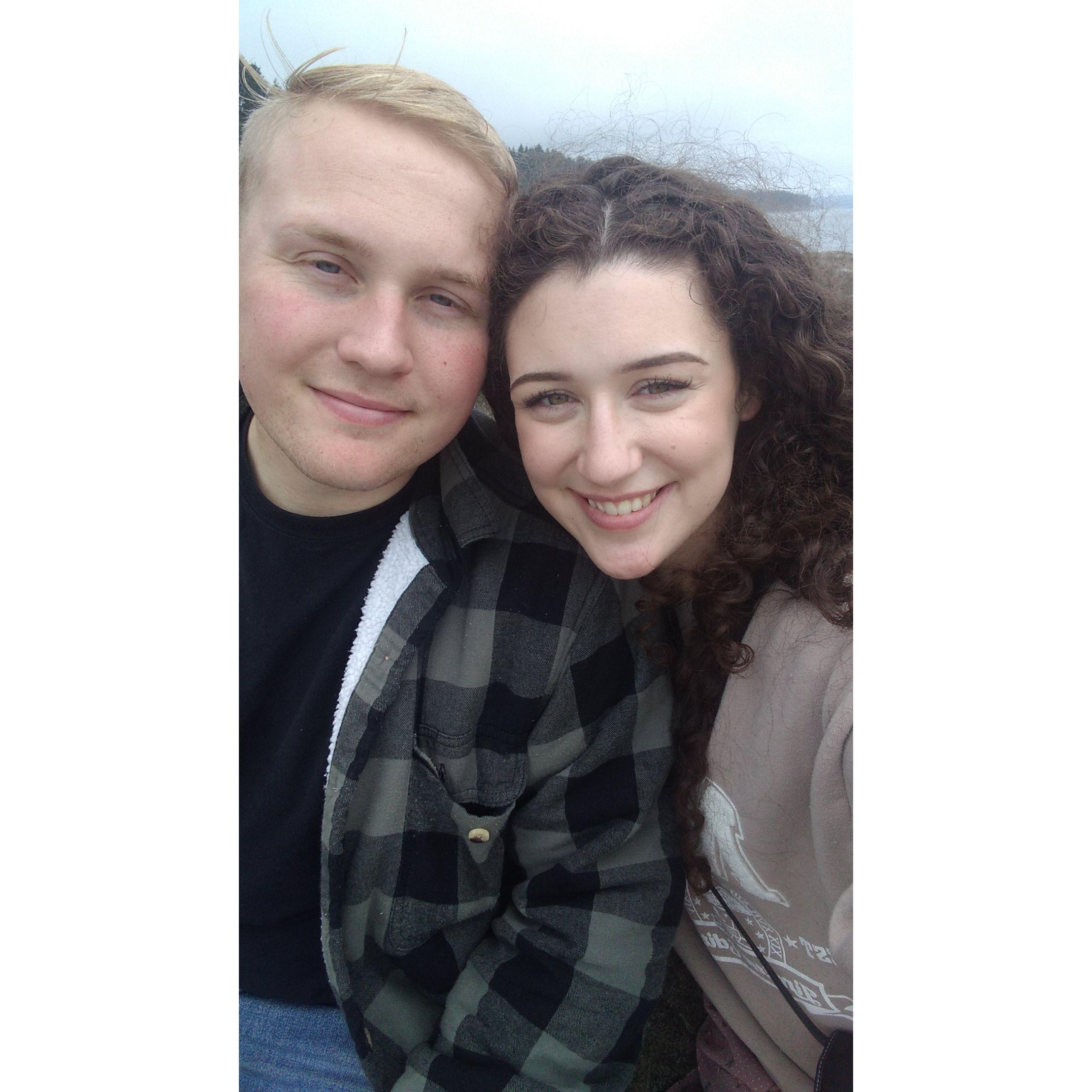 Our proposal comes with its own police report! Zach was driving to a spot to set up decorations for a later proposal and photo shoot, when he hit a deer on the road. He called Rachel to come pick him up and figured that she would notice all the decorations in the car and know what he was up to. So, instead, he set them up on the side of the road, proposed when she arrived, and had the state trooper on scene take pictures!