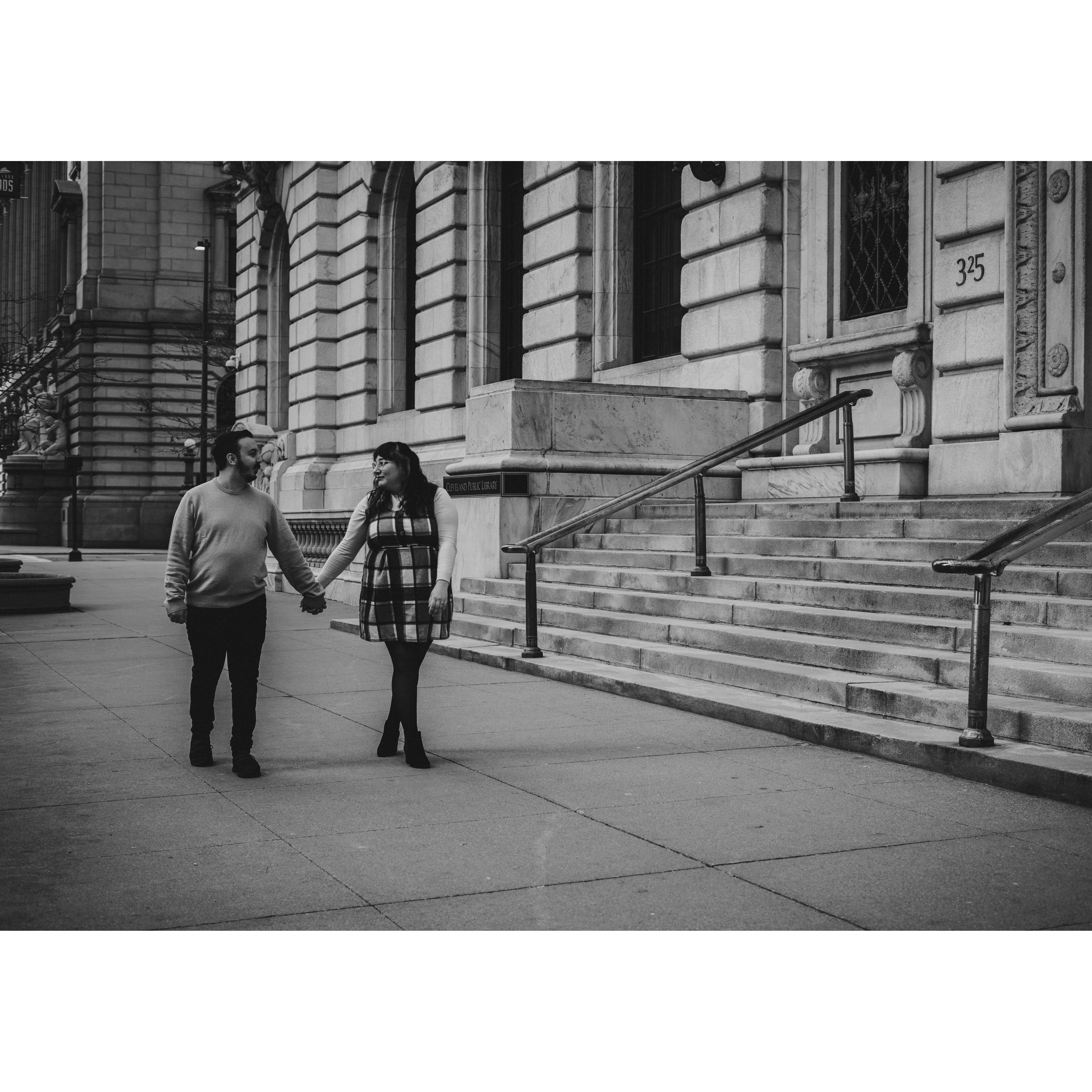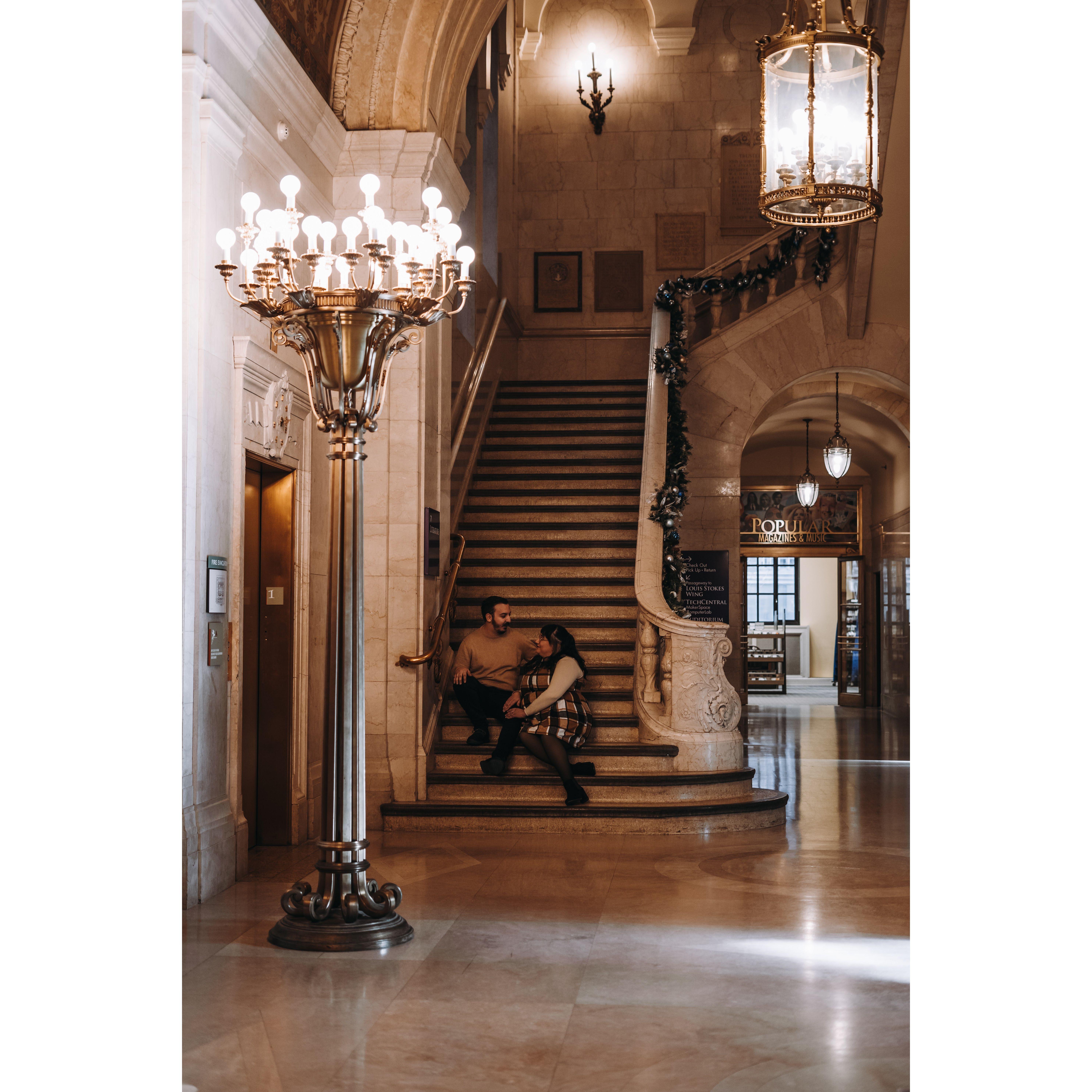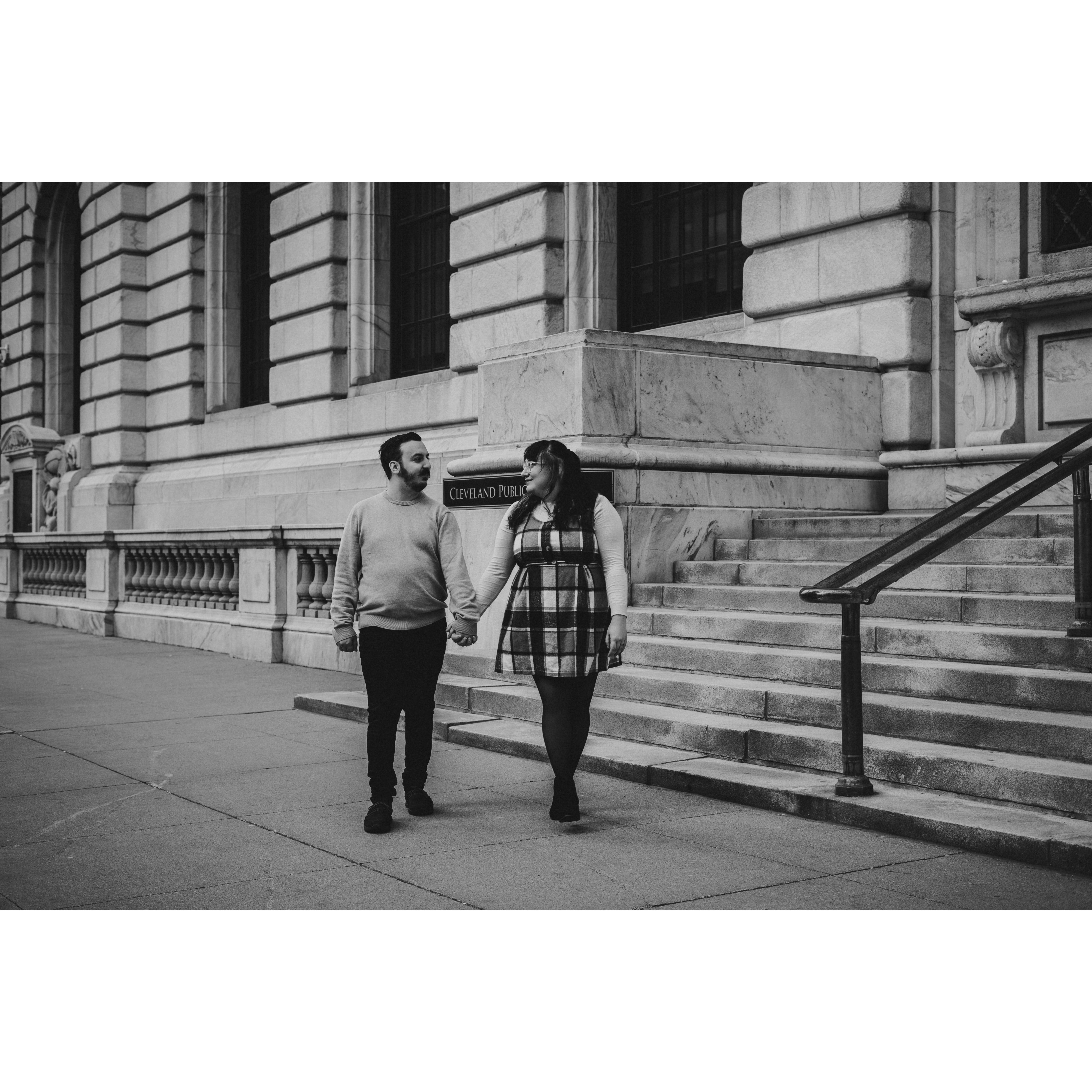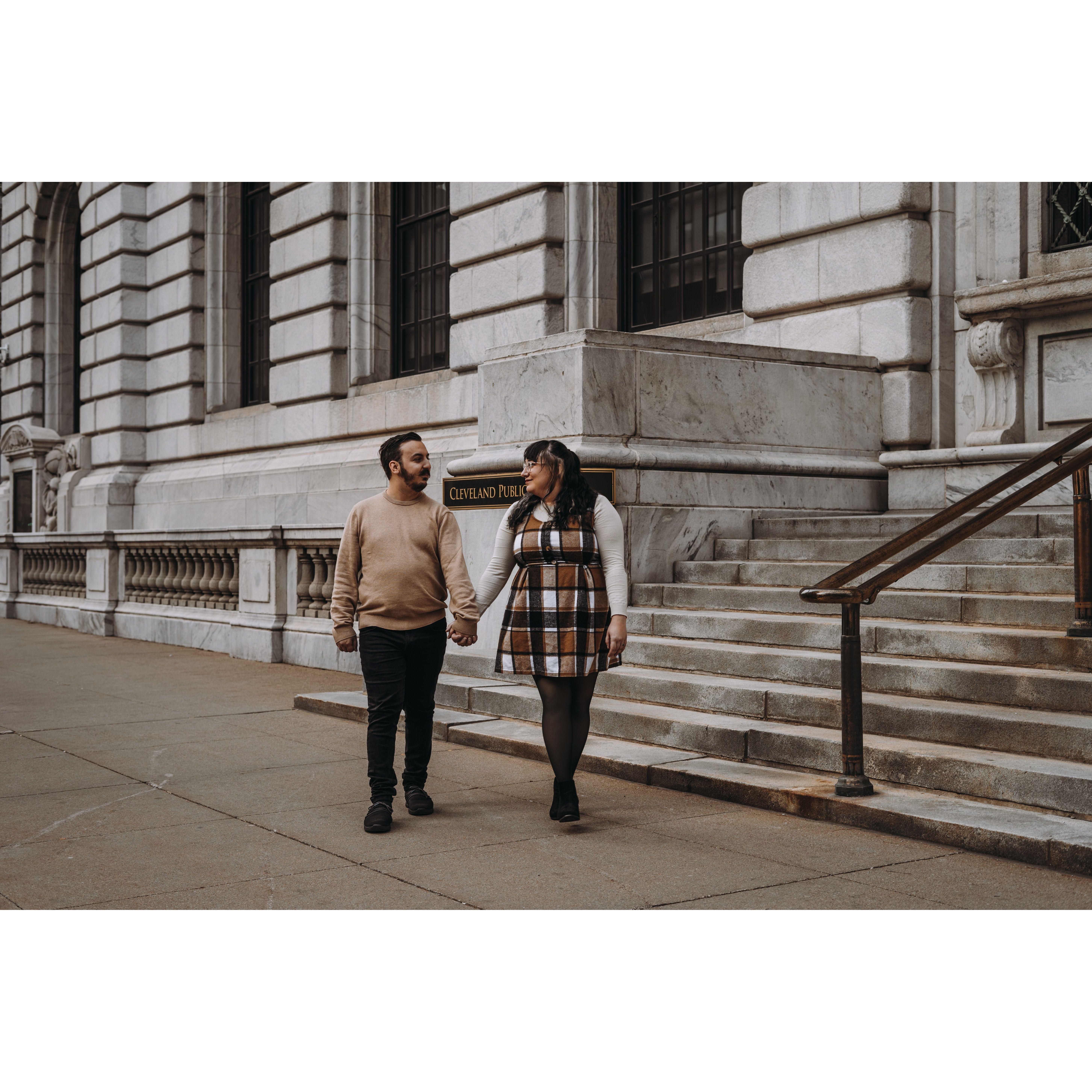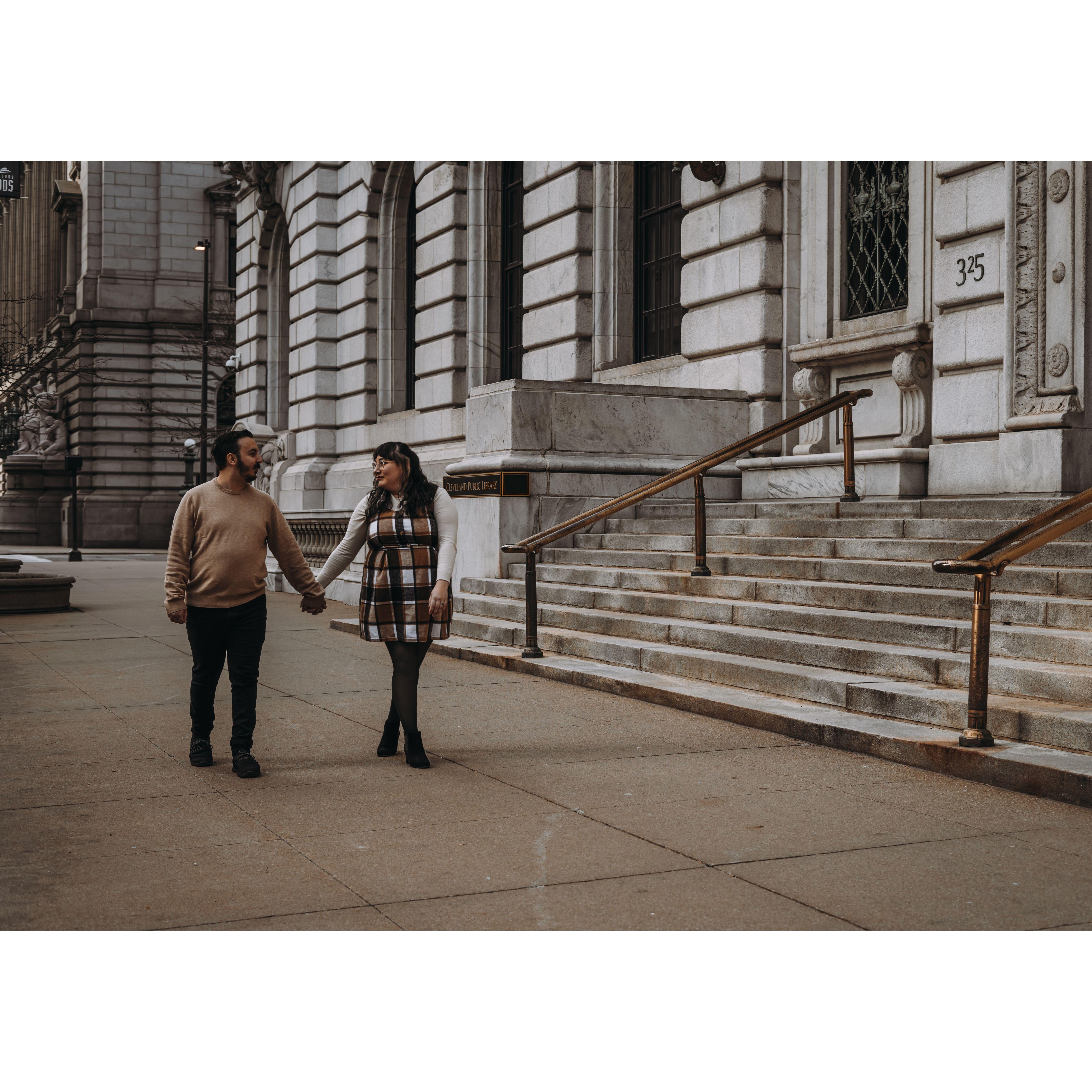 Part of our Engagement Photos at the Cleveland Public Library