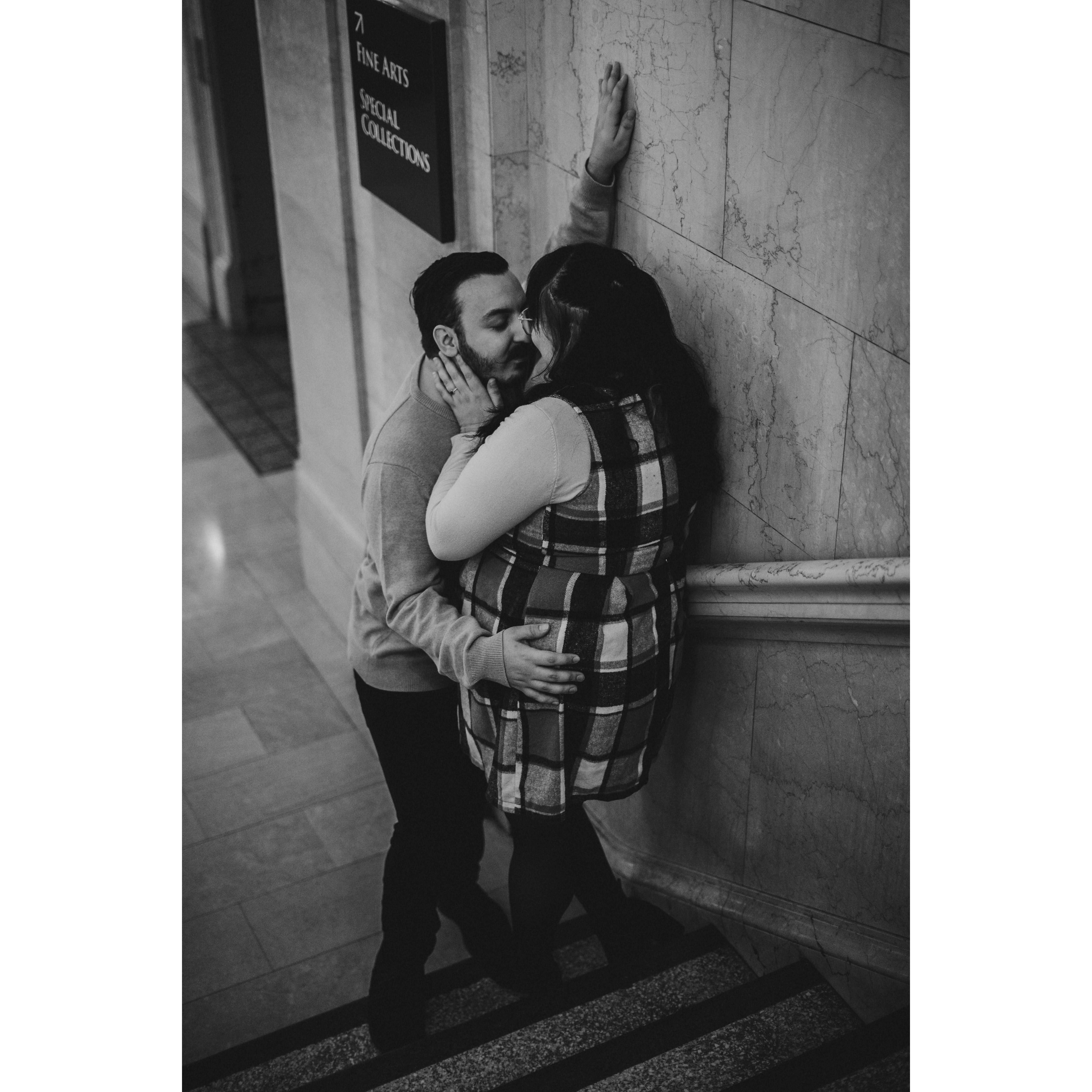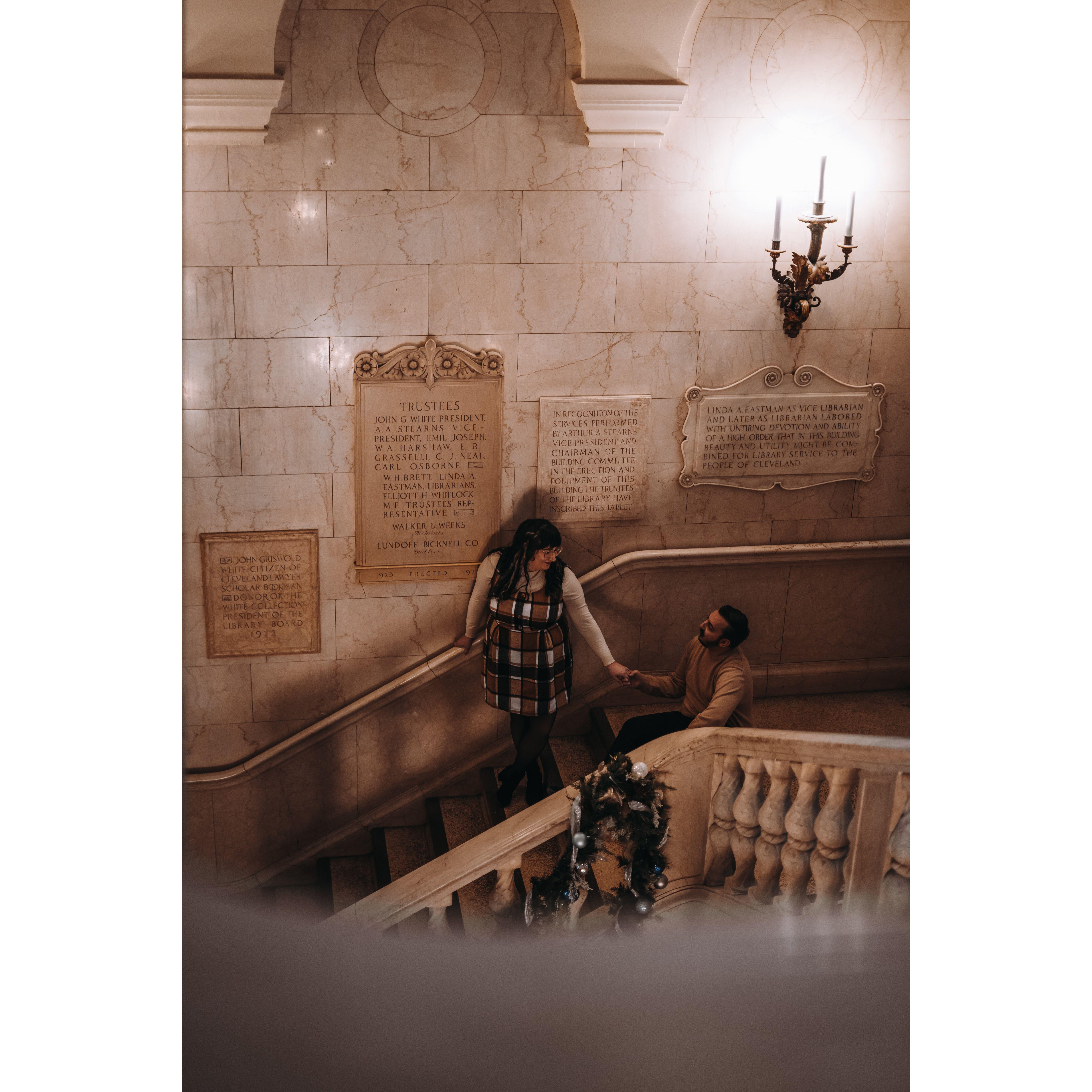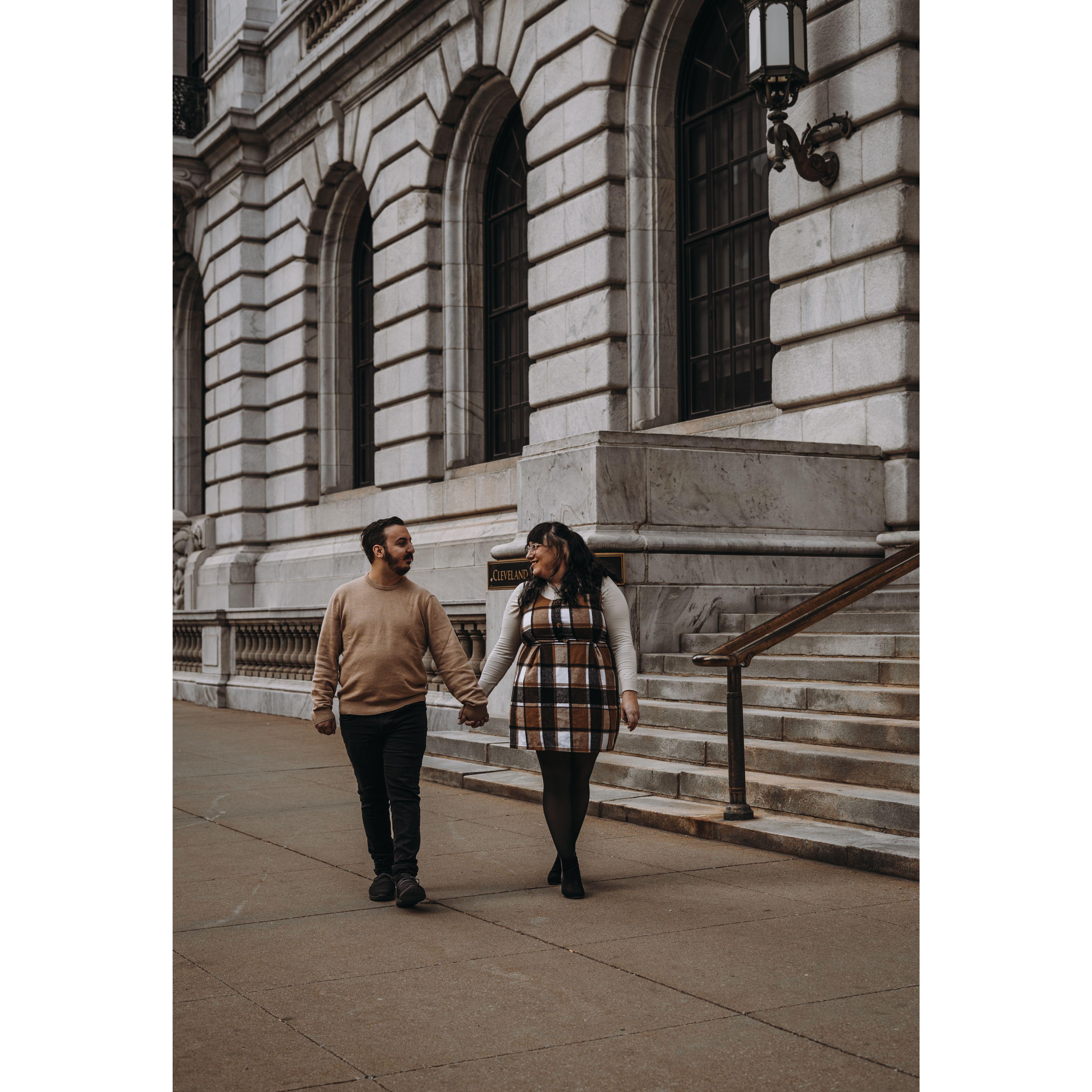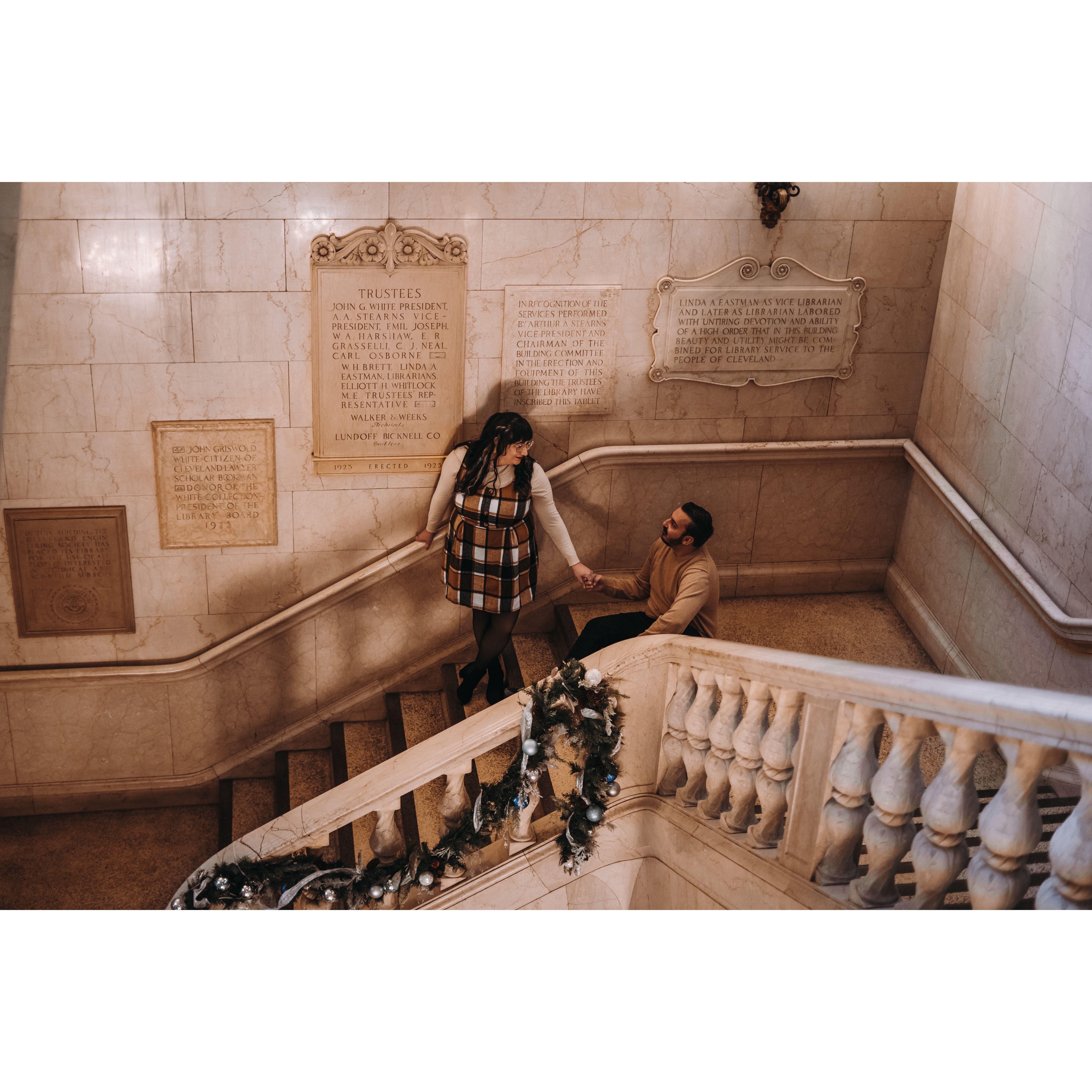 Part of our Engagement Photos at the Cleveland Public Library