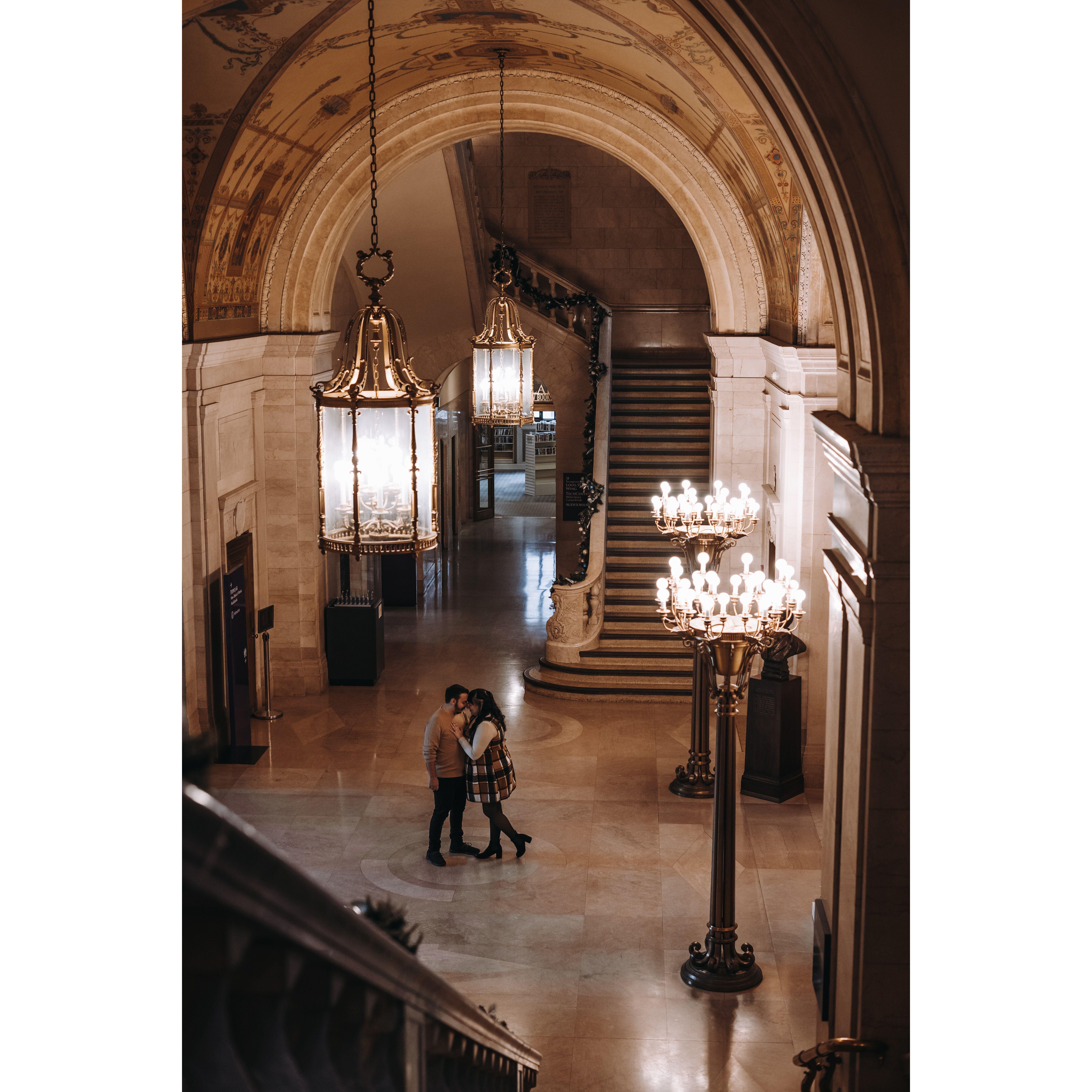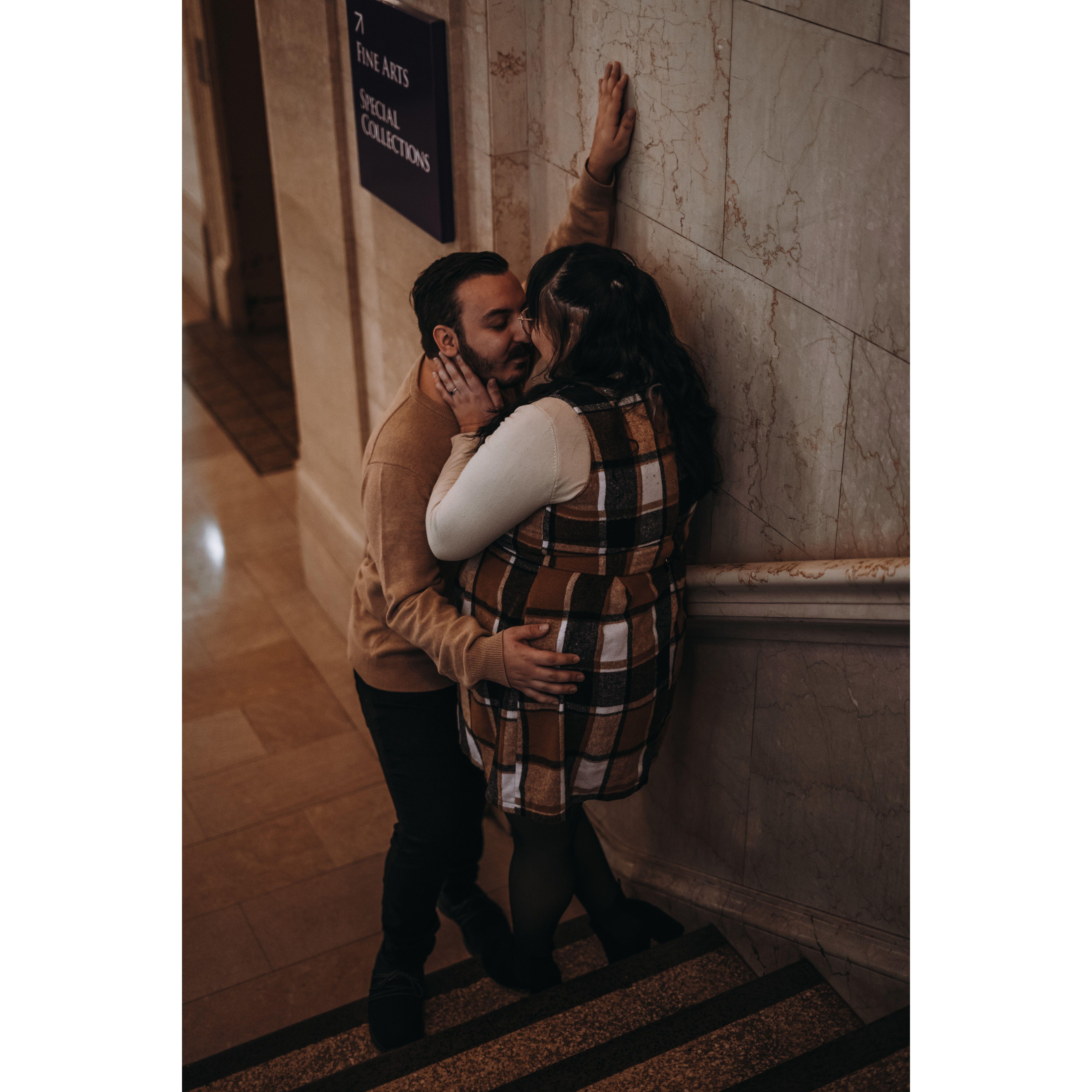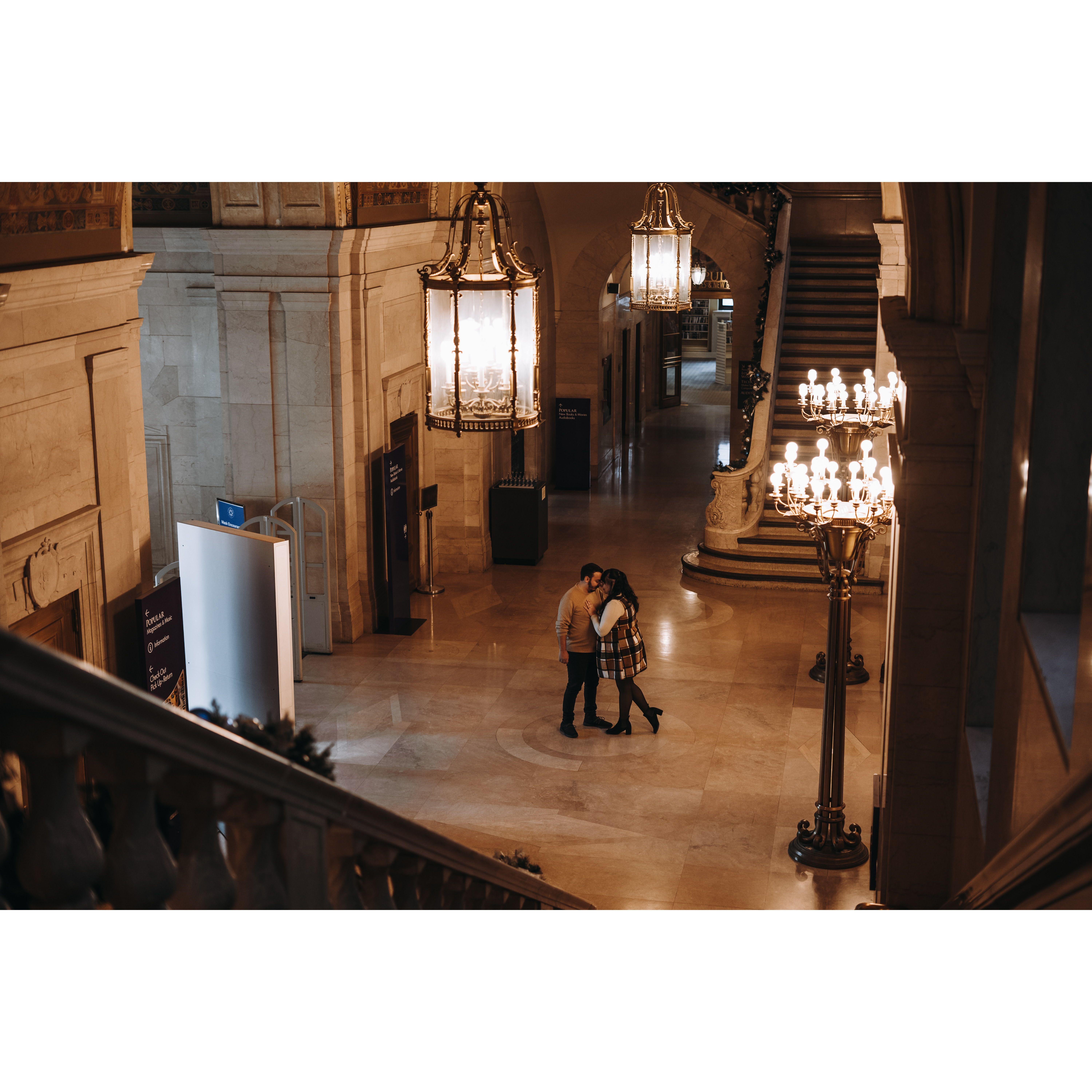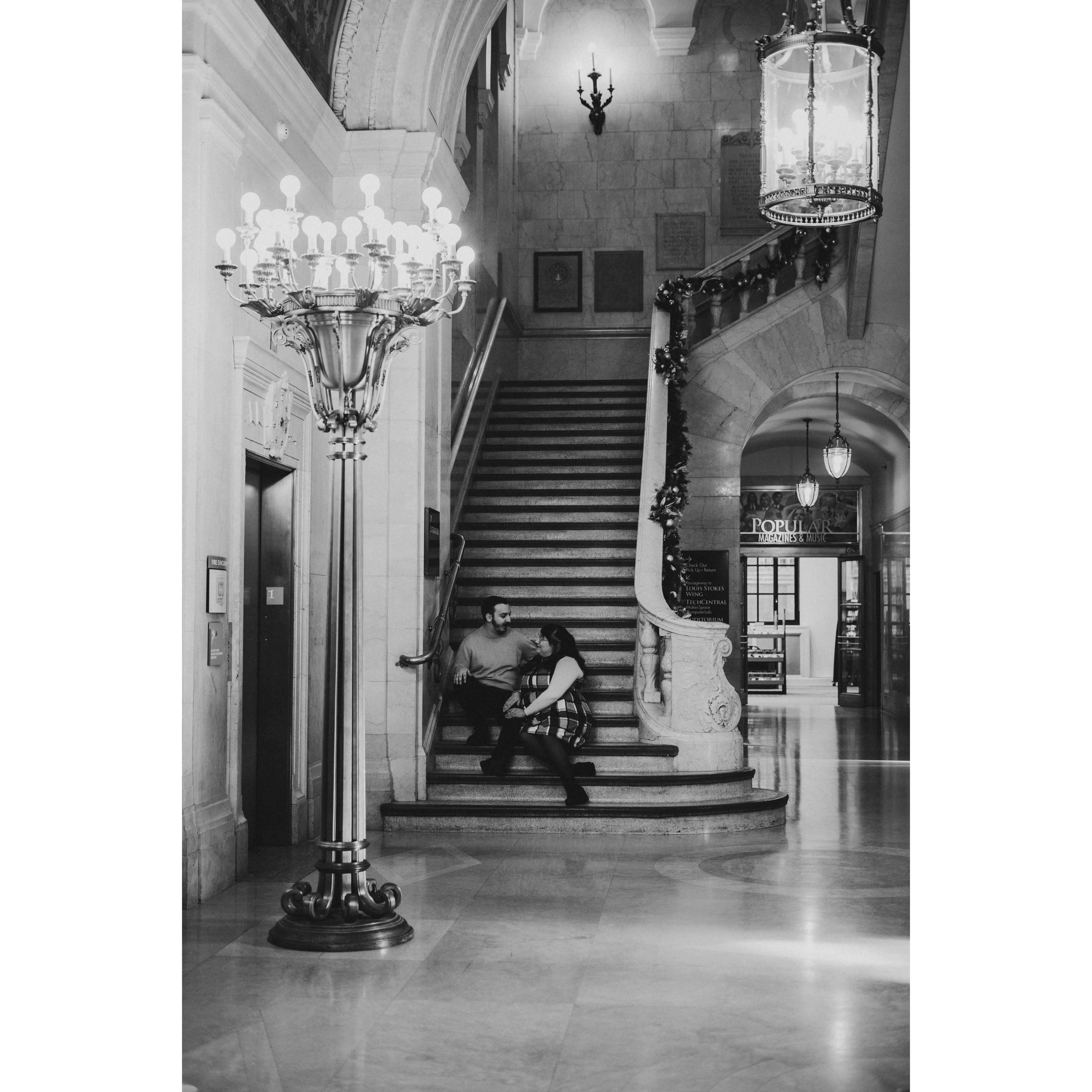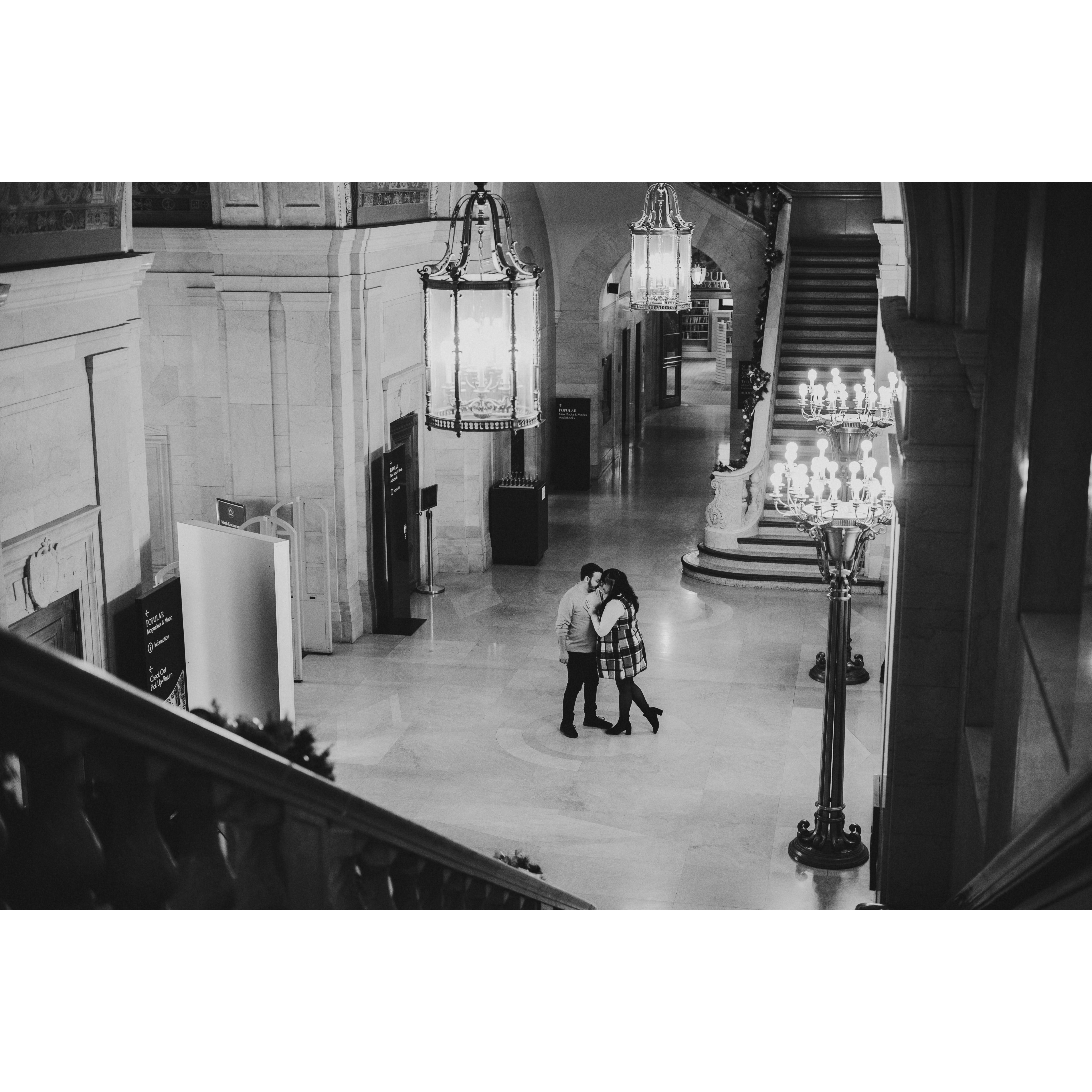 Part of our Engagement Photos at the Cleveland Public Library