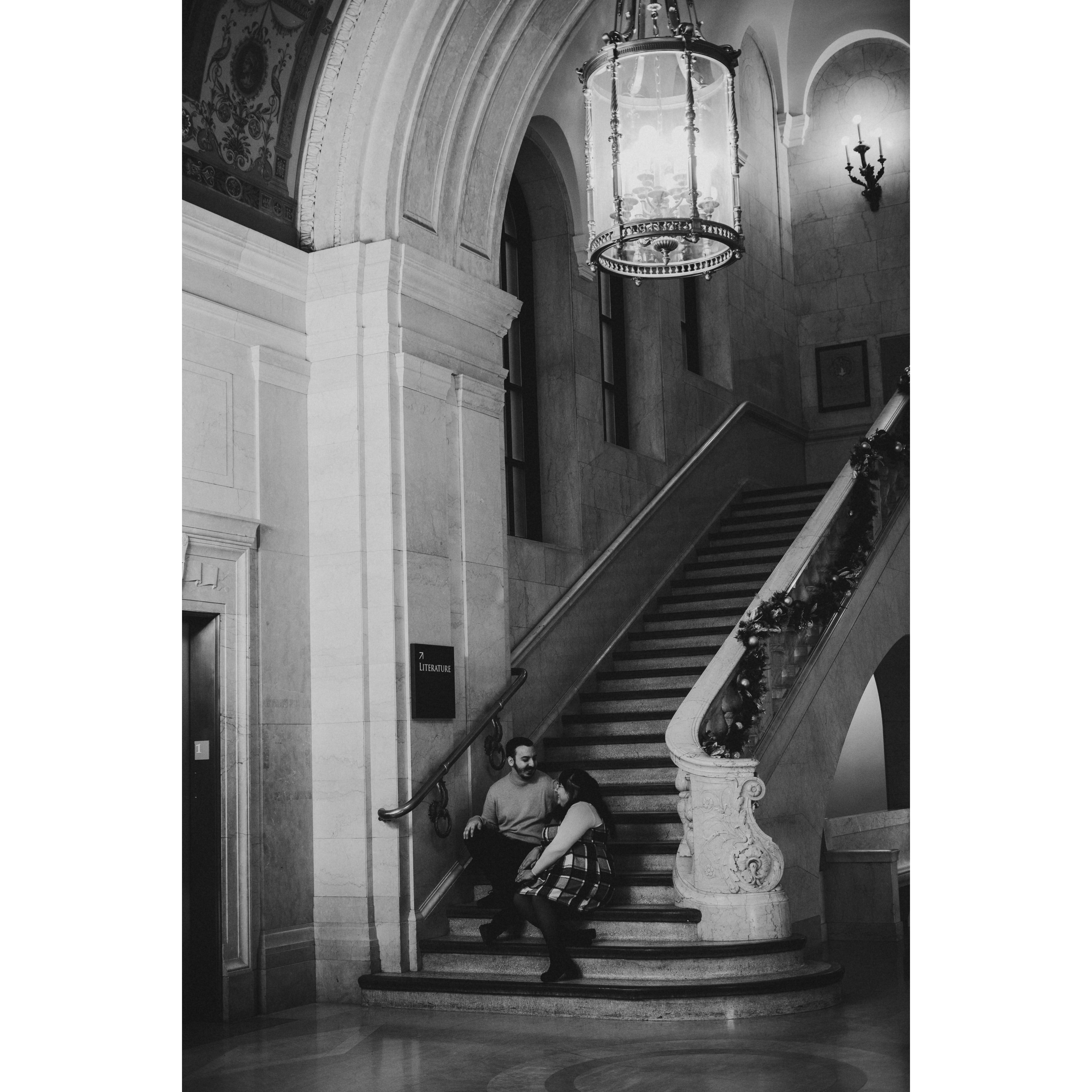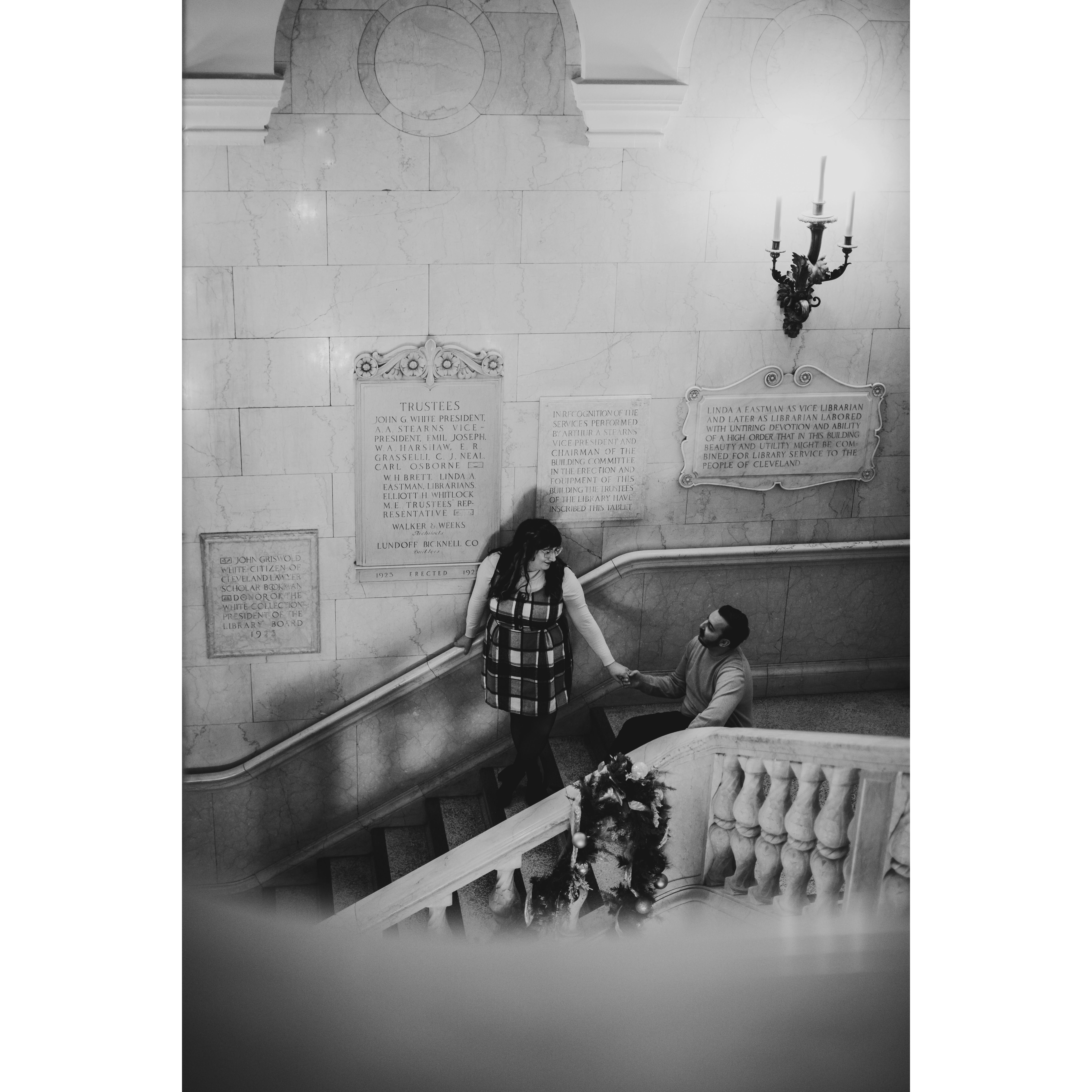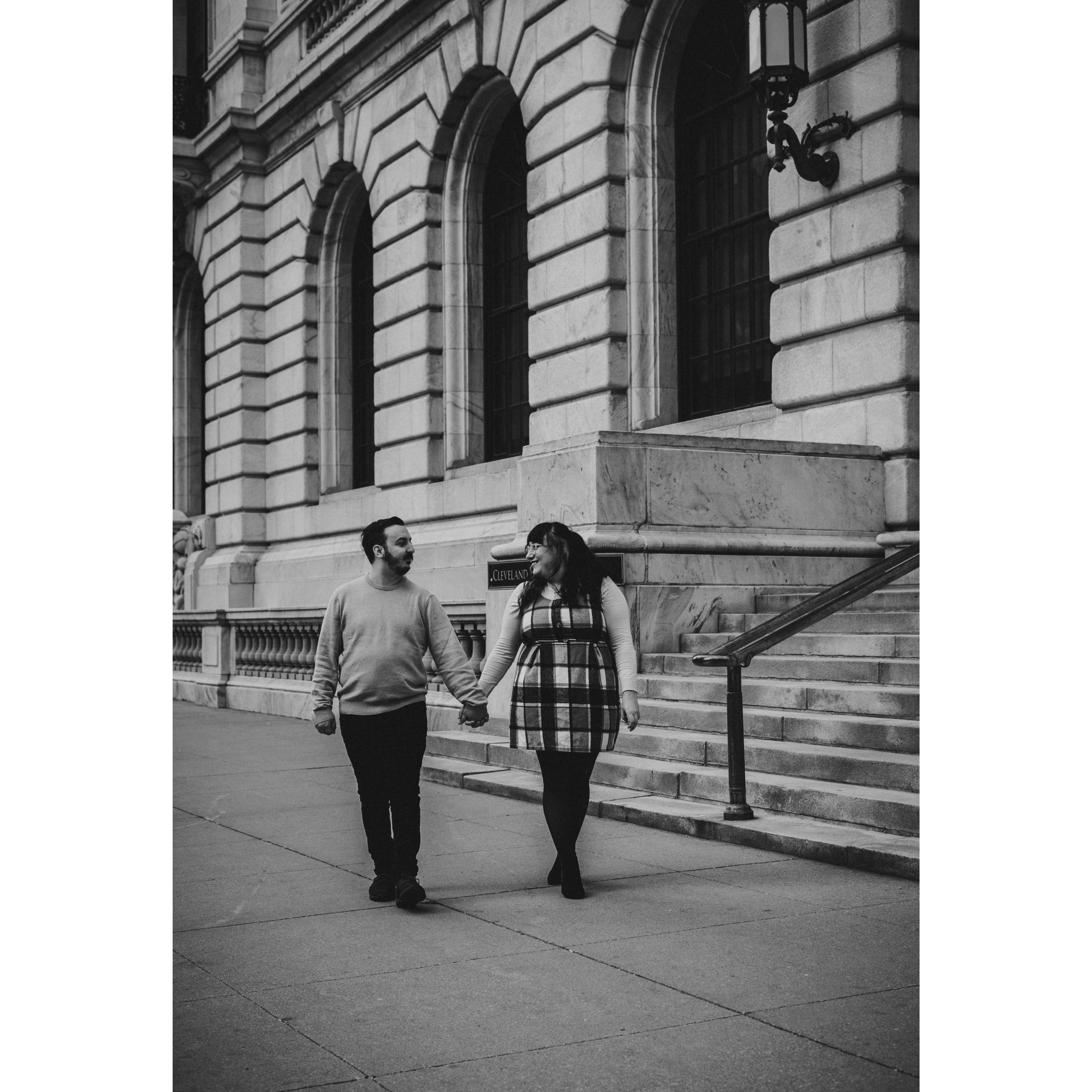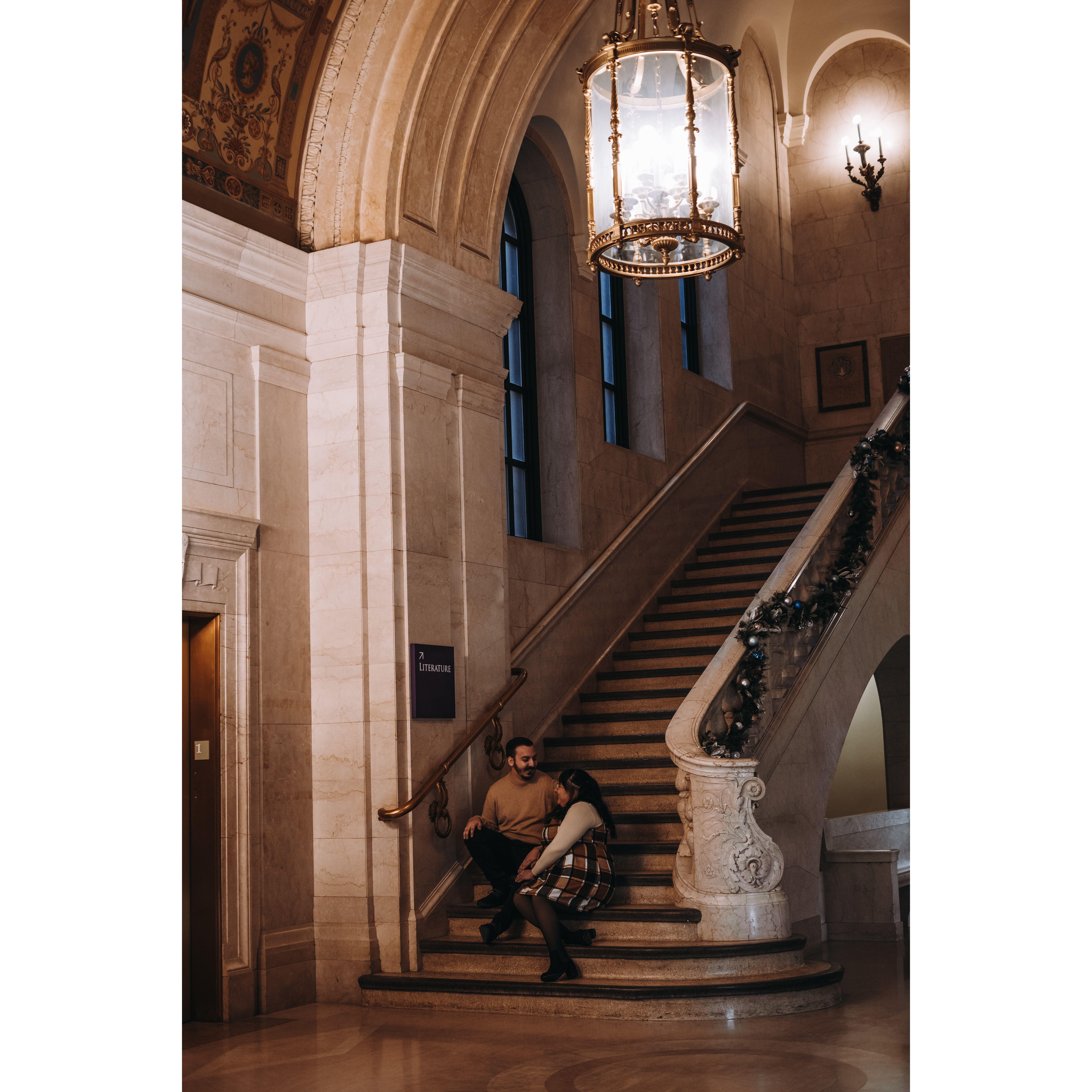 Part of our Engagement Photos at the Cleveland Public Library