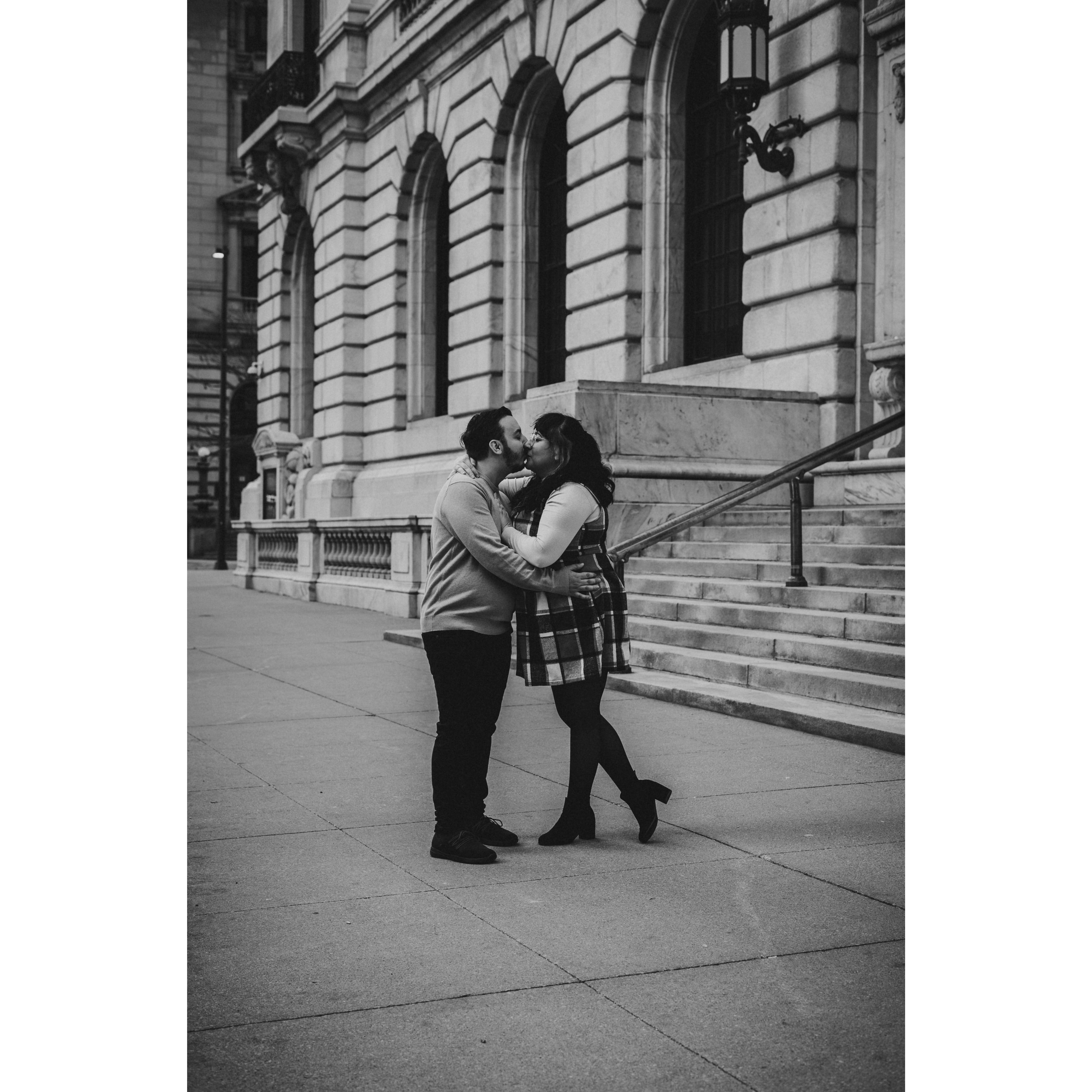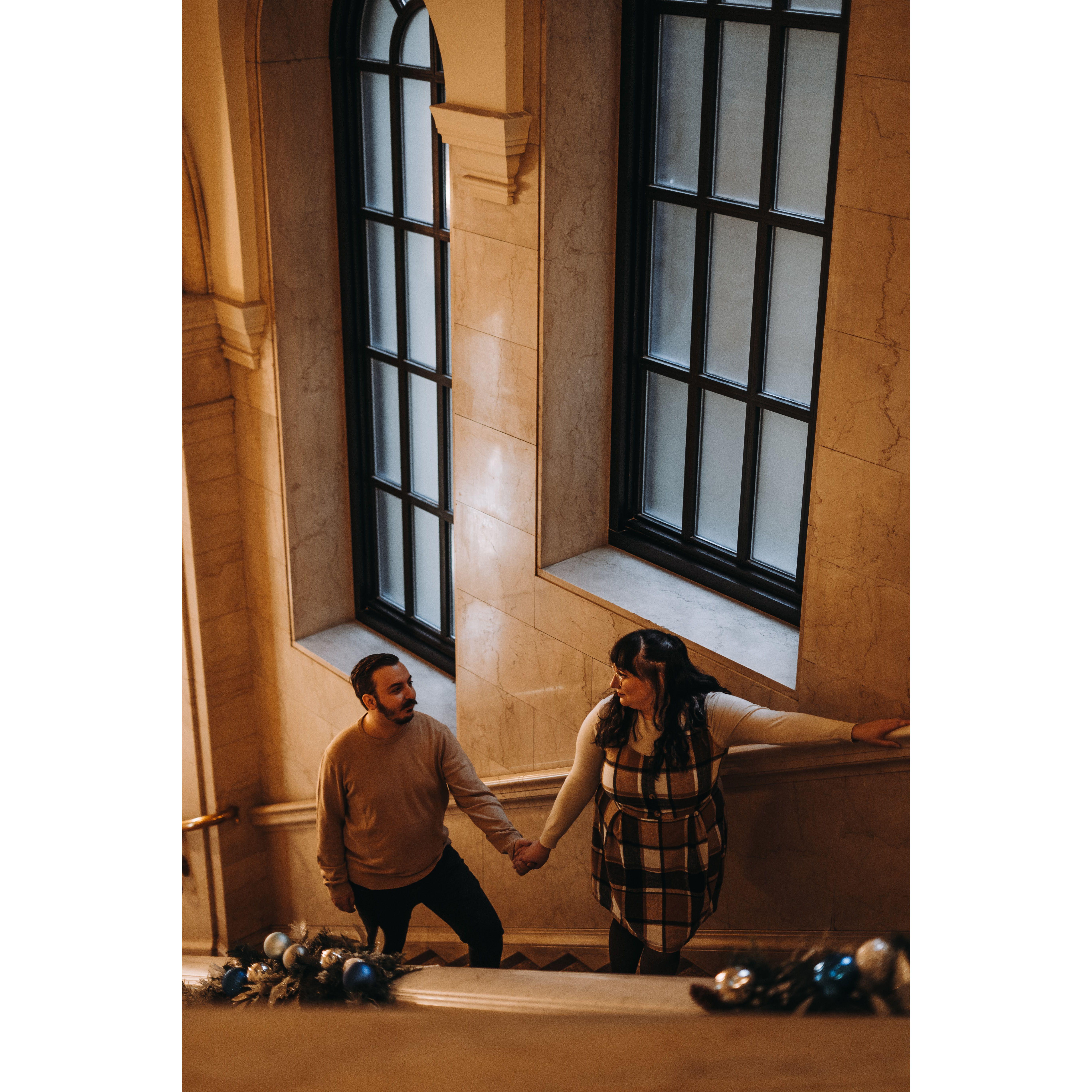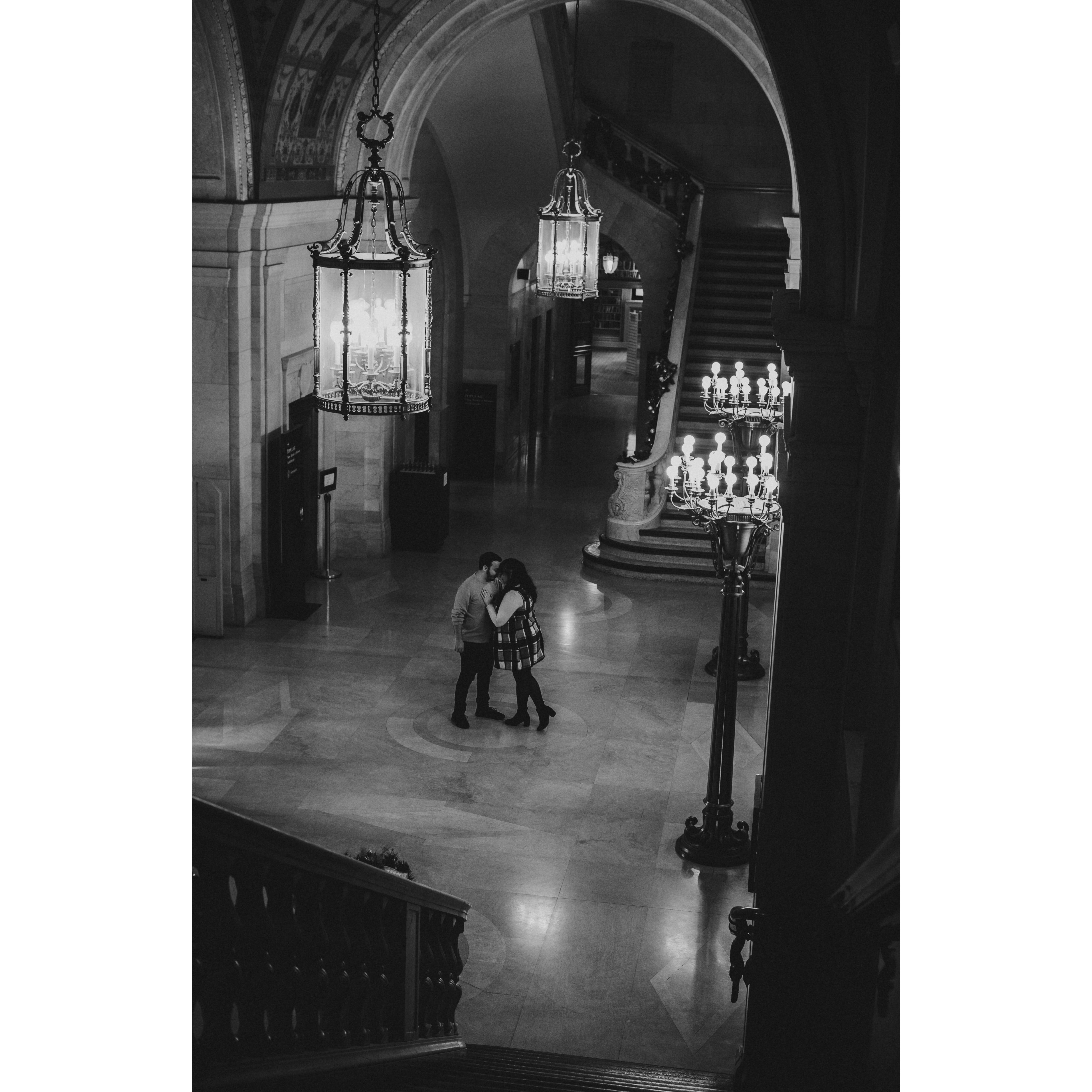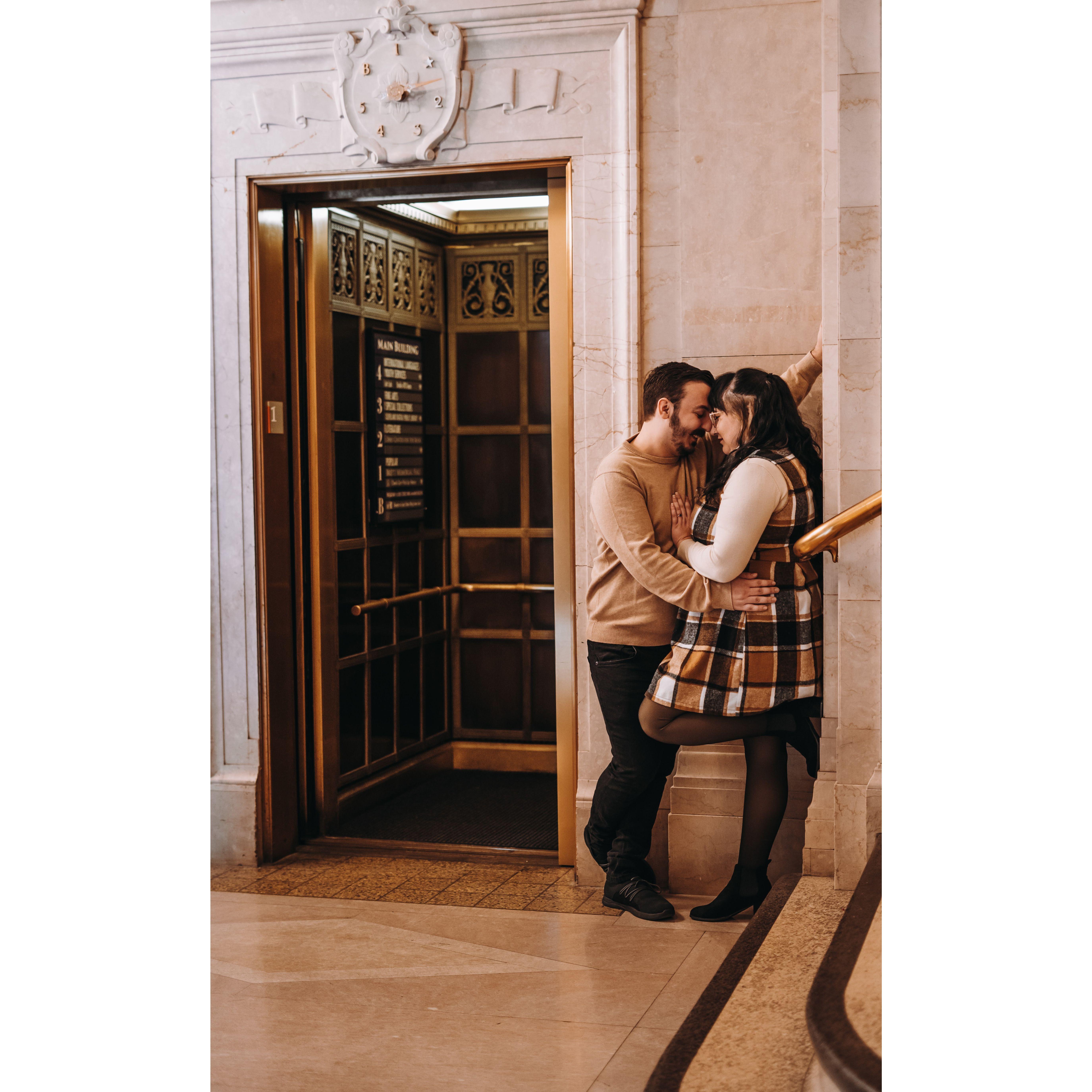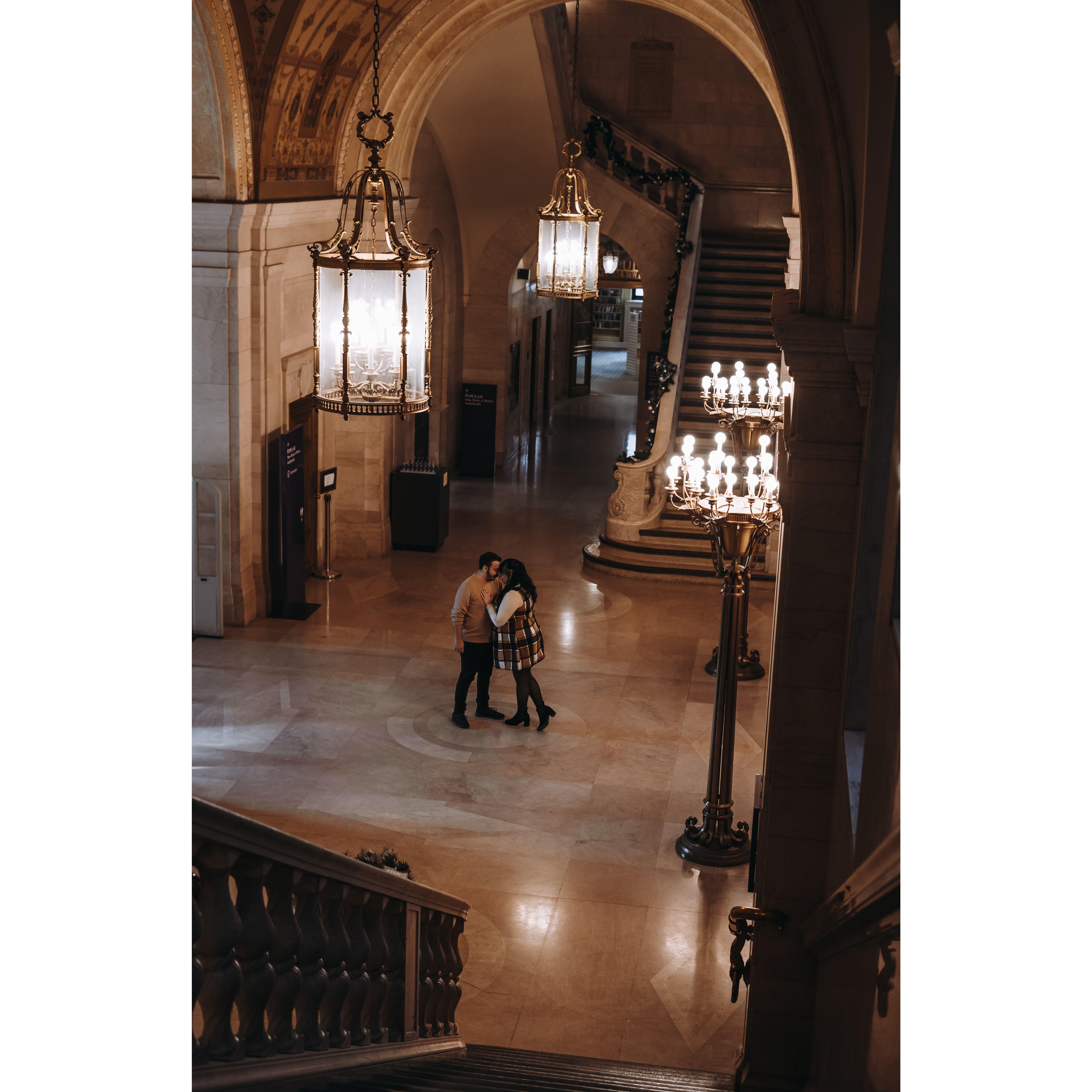 Part of our Engagement Photos at the Cleveland Public Library