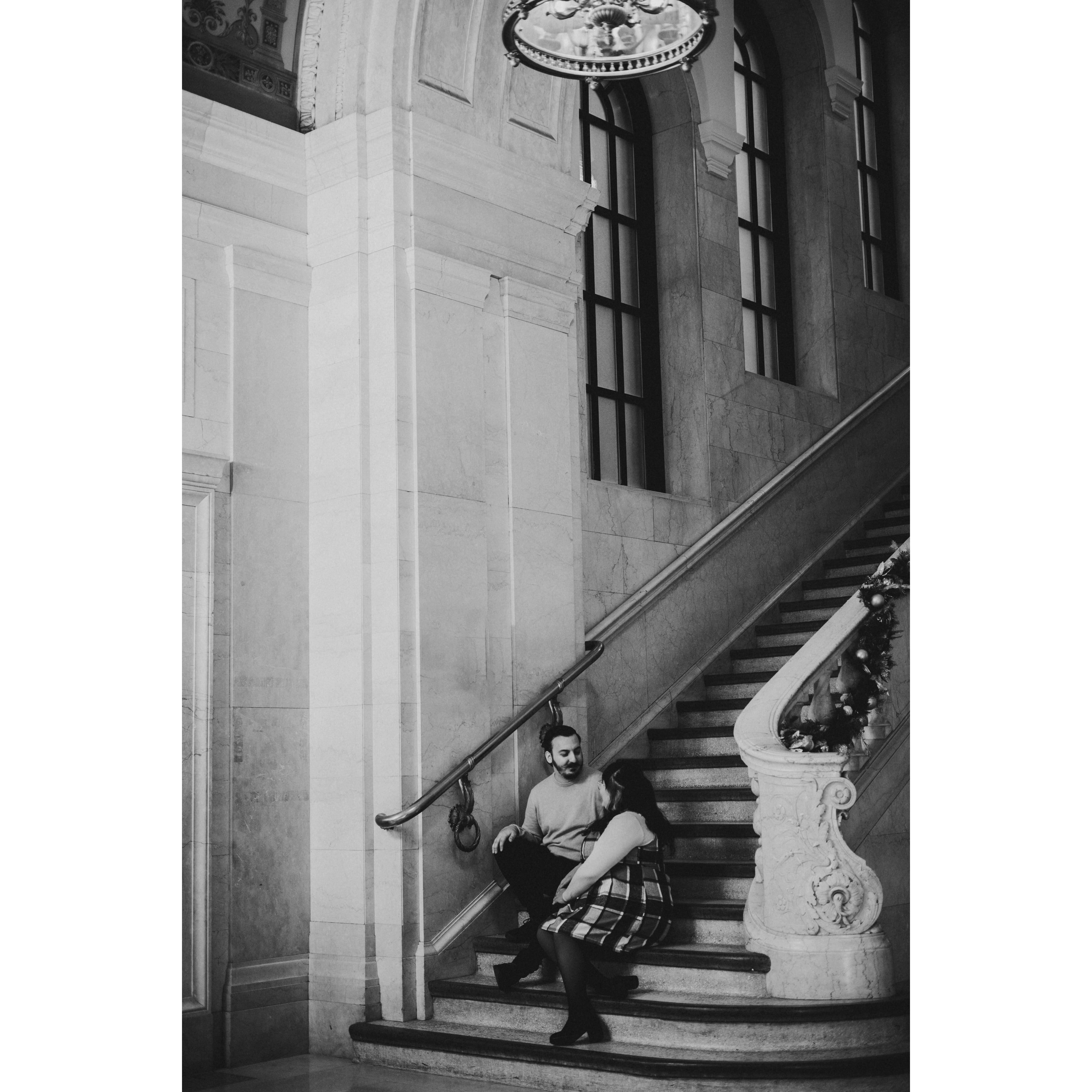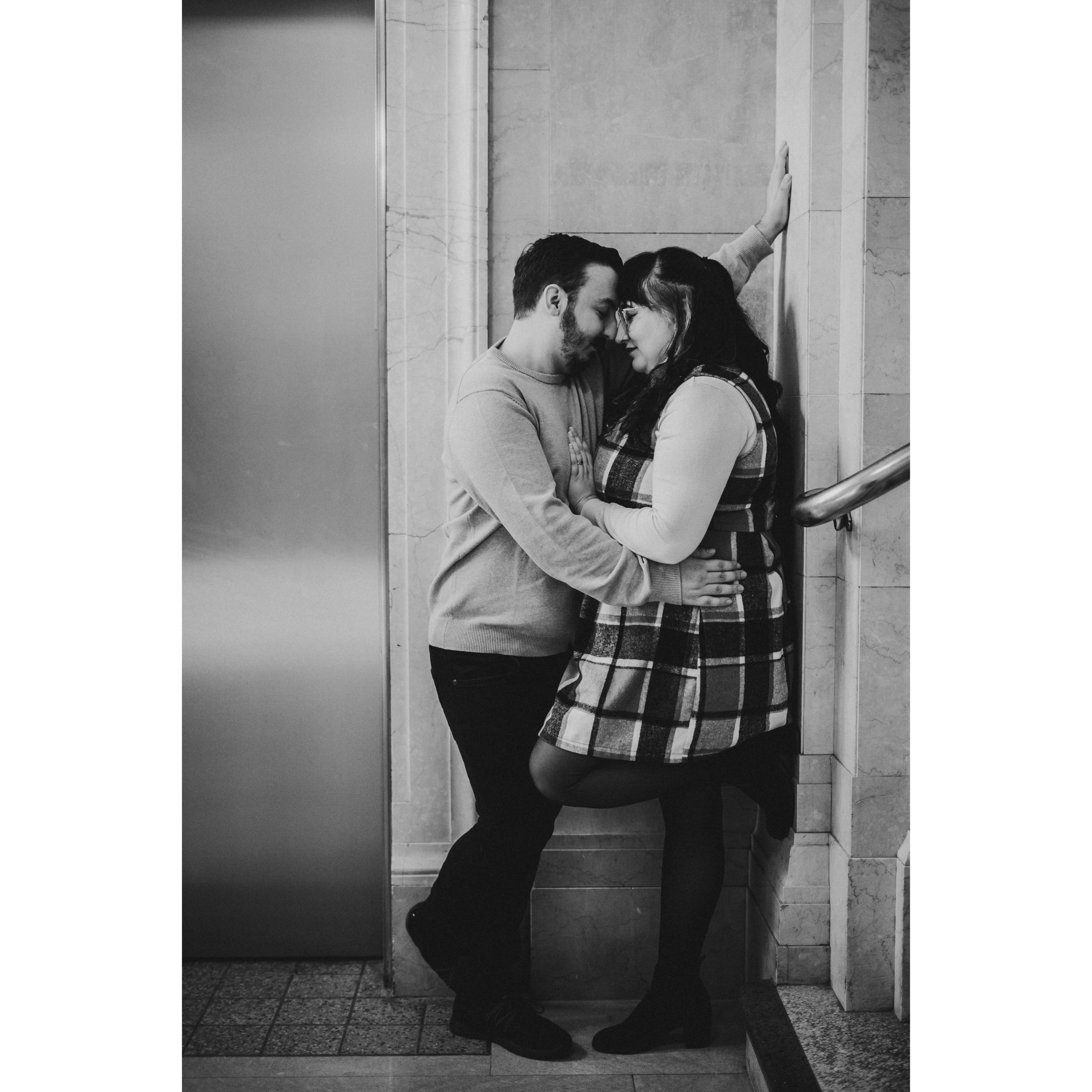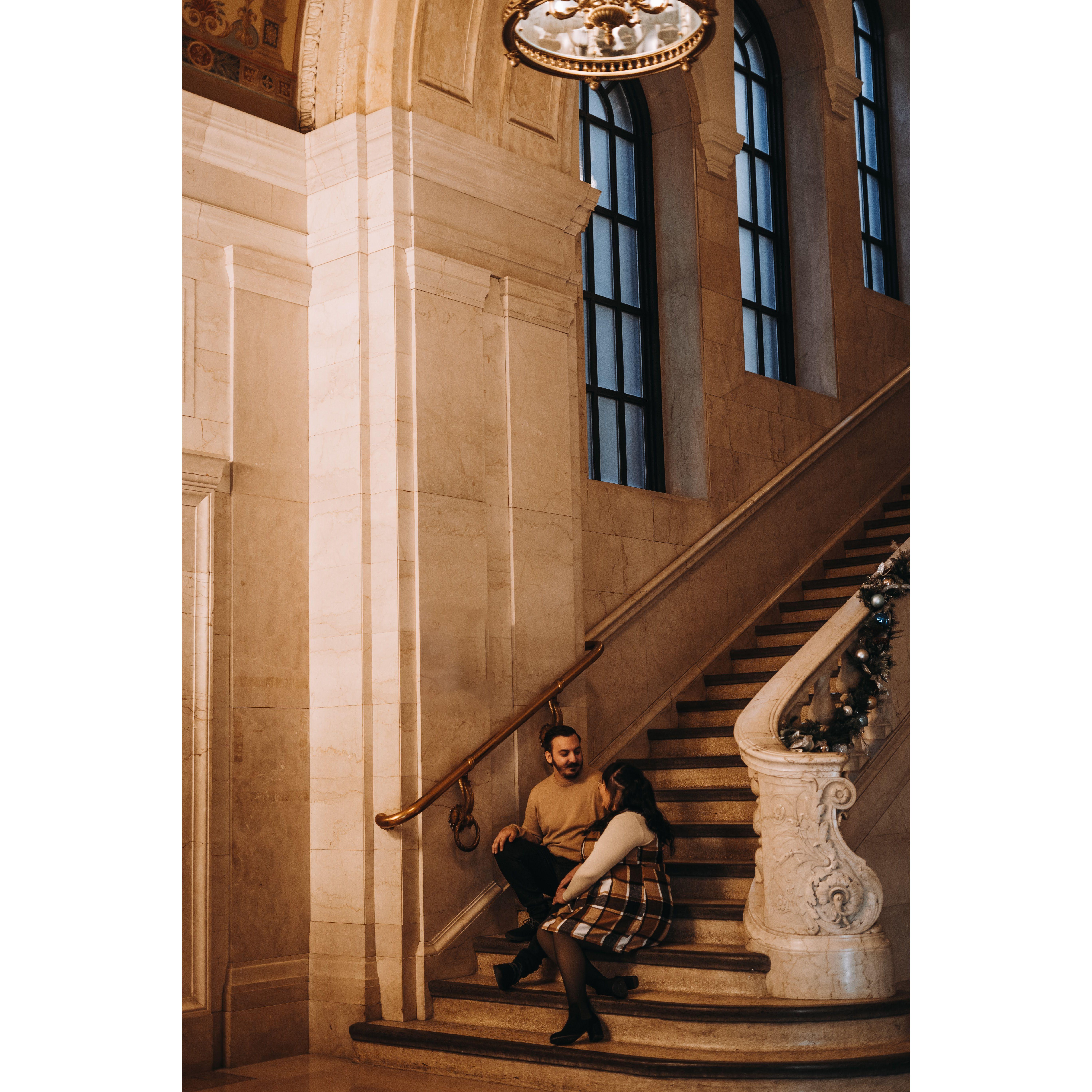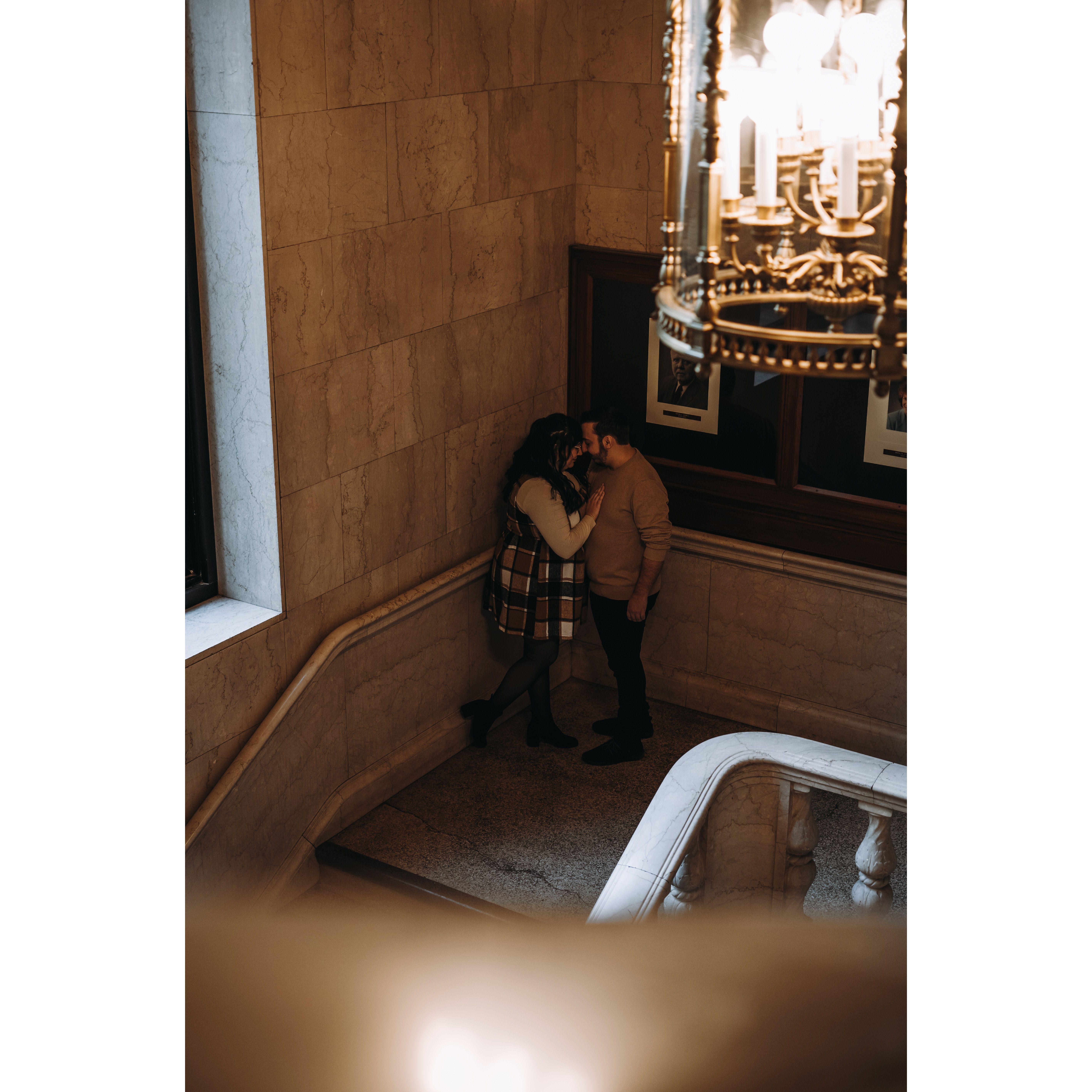 Part of our Engagement Photos at the Cleveland Public Library
