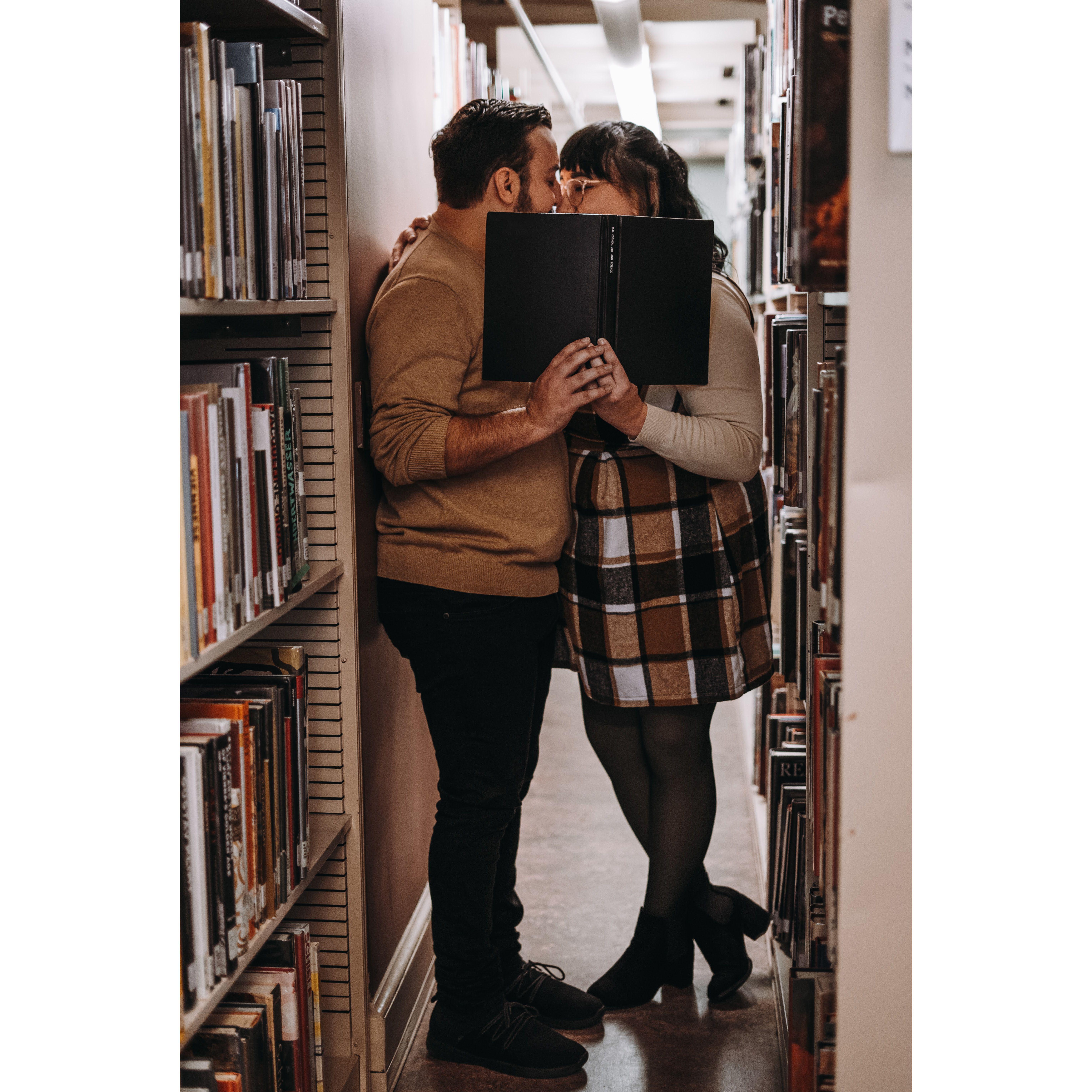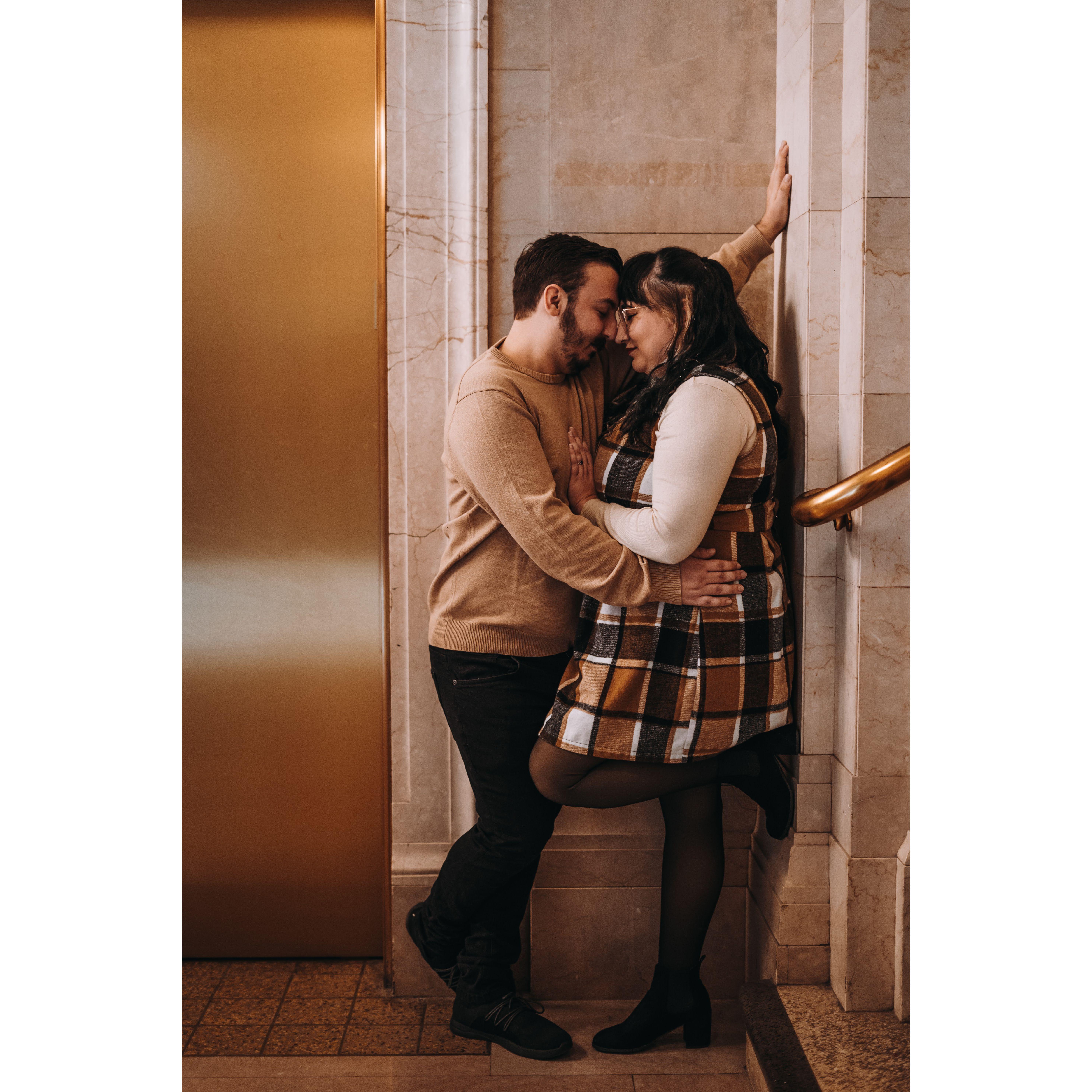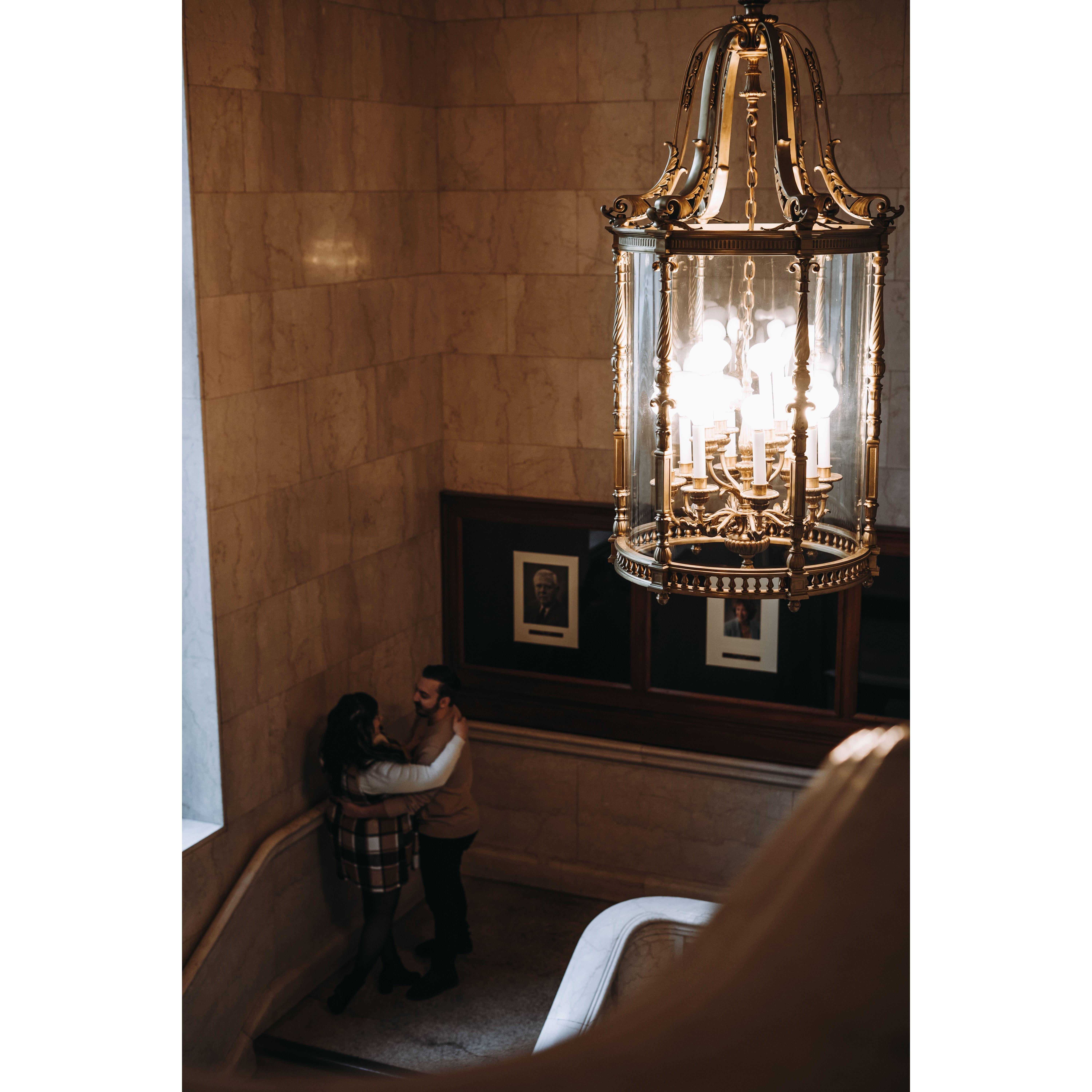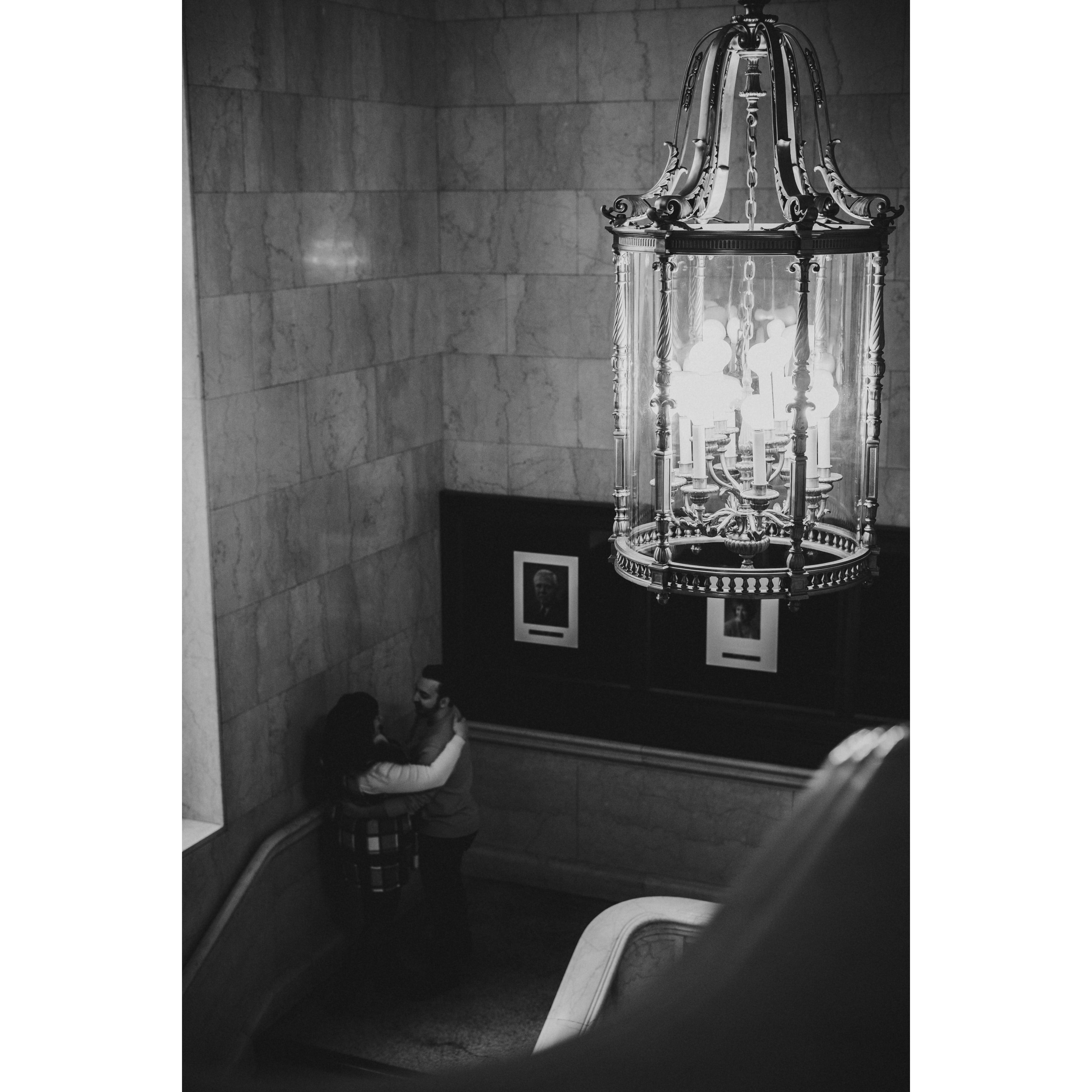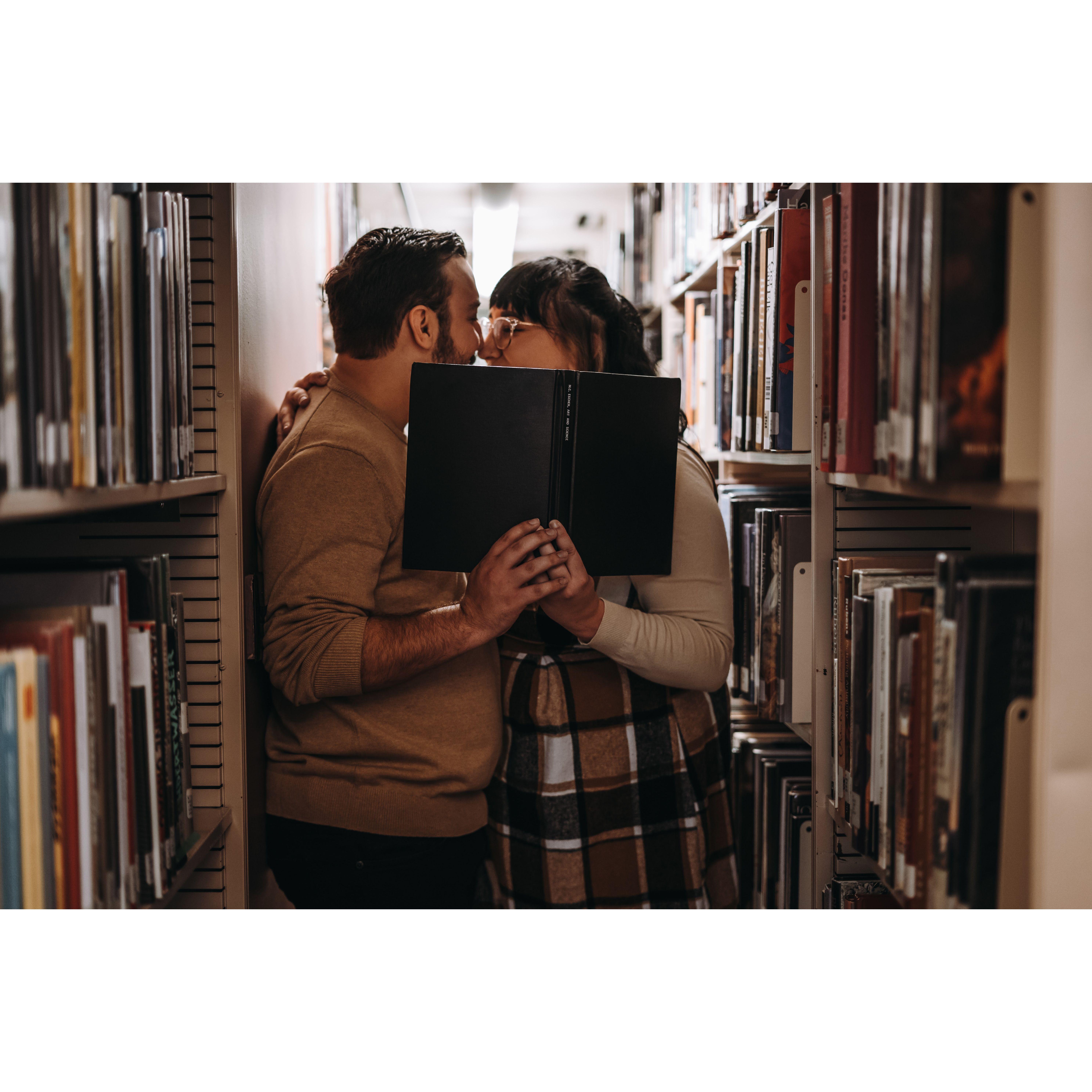 Part of our Engagement Photos at the Cleveland Public Library