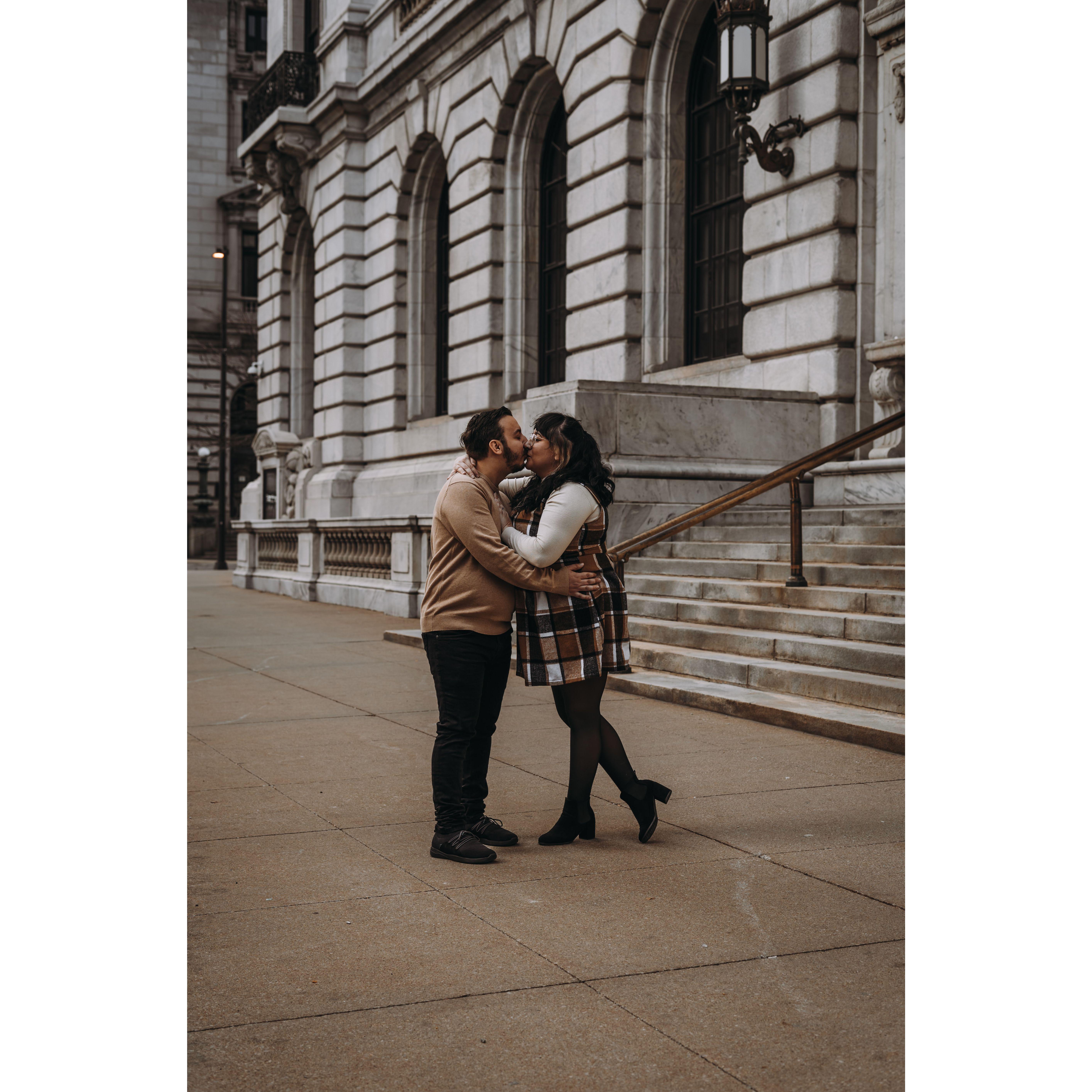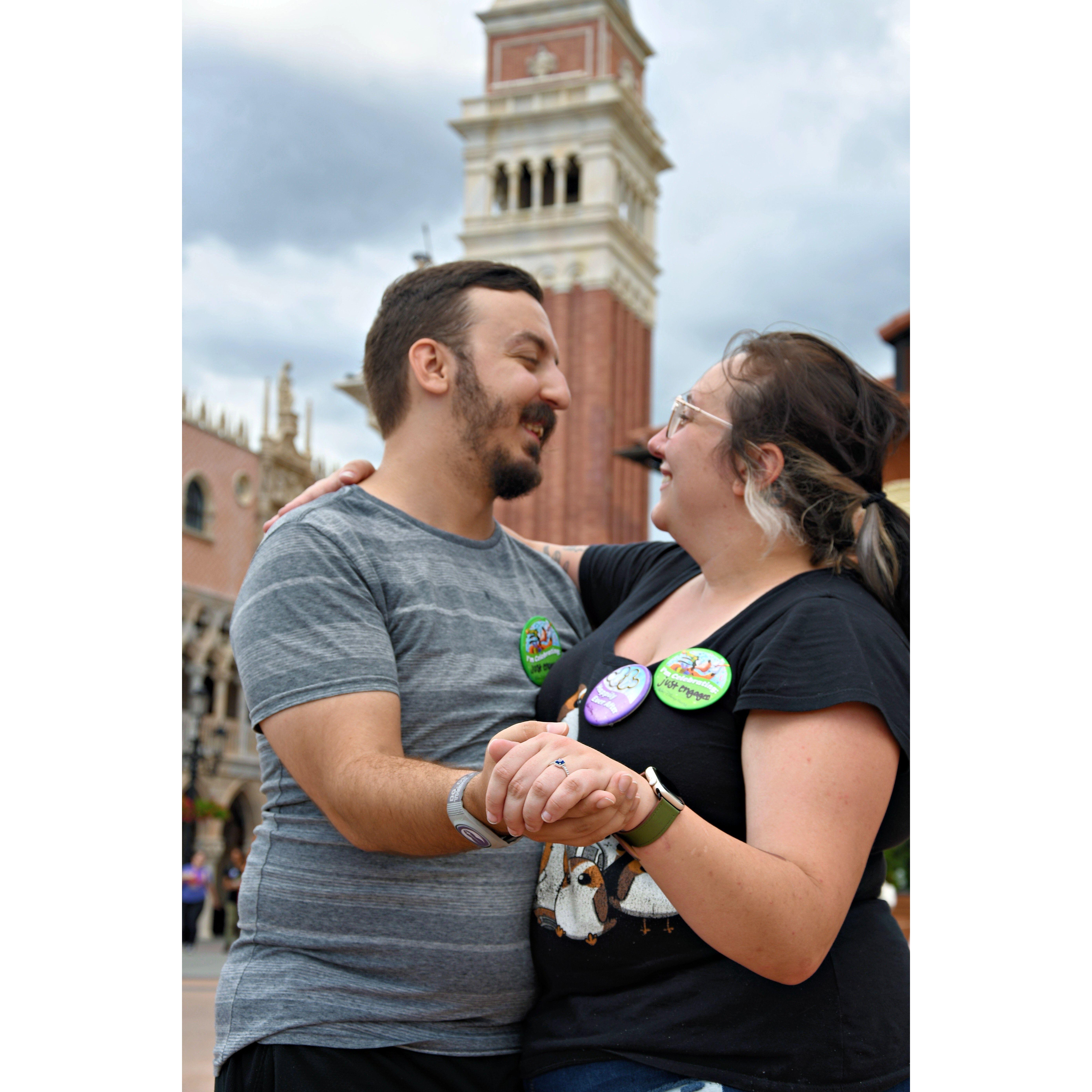 Our engagement photos from both Disney World in September 2023 and from our Engagement Shoot in December 2023 at the Cleveland Public Library.