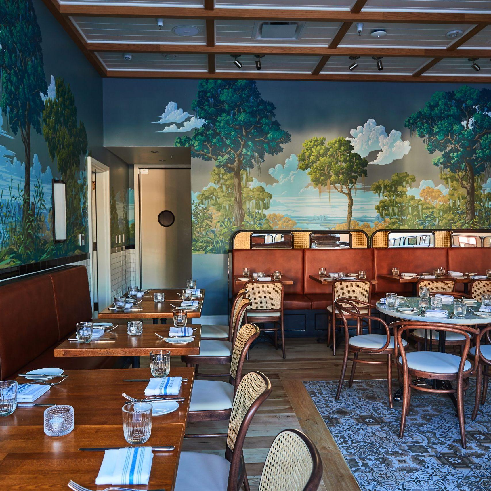 St. Neo's is a seafood brasserie and oyster bar with a southern accent. Check out the mural in St. Neo's main dining room, which Railey took inspiration from for her own mural in our dining room. Also, check out the hidden bar downstairs!