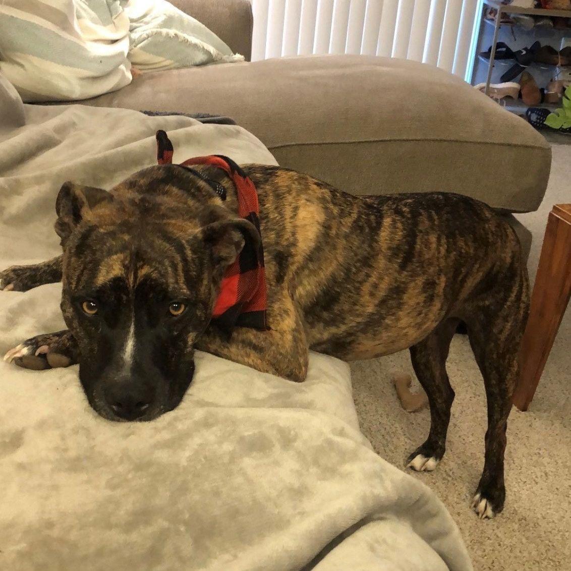 Margaret met Roger during a rough patch in his life when he was homeless and needing a place to crash. Margaret took Roger in and showed him what the good life is. Roger and Margaret instantly became best friends who enjoy long walks, nachos and snuggling together watching The Office. Roger met Adam and it was love at first sight. Adam lovingly refers to Rogie as 'Stilts' and 'Peg Legs'. Although Roger will not be attending the party, he knows Margaret will being missing his big head every second of the night.
