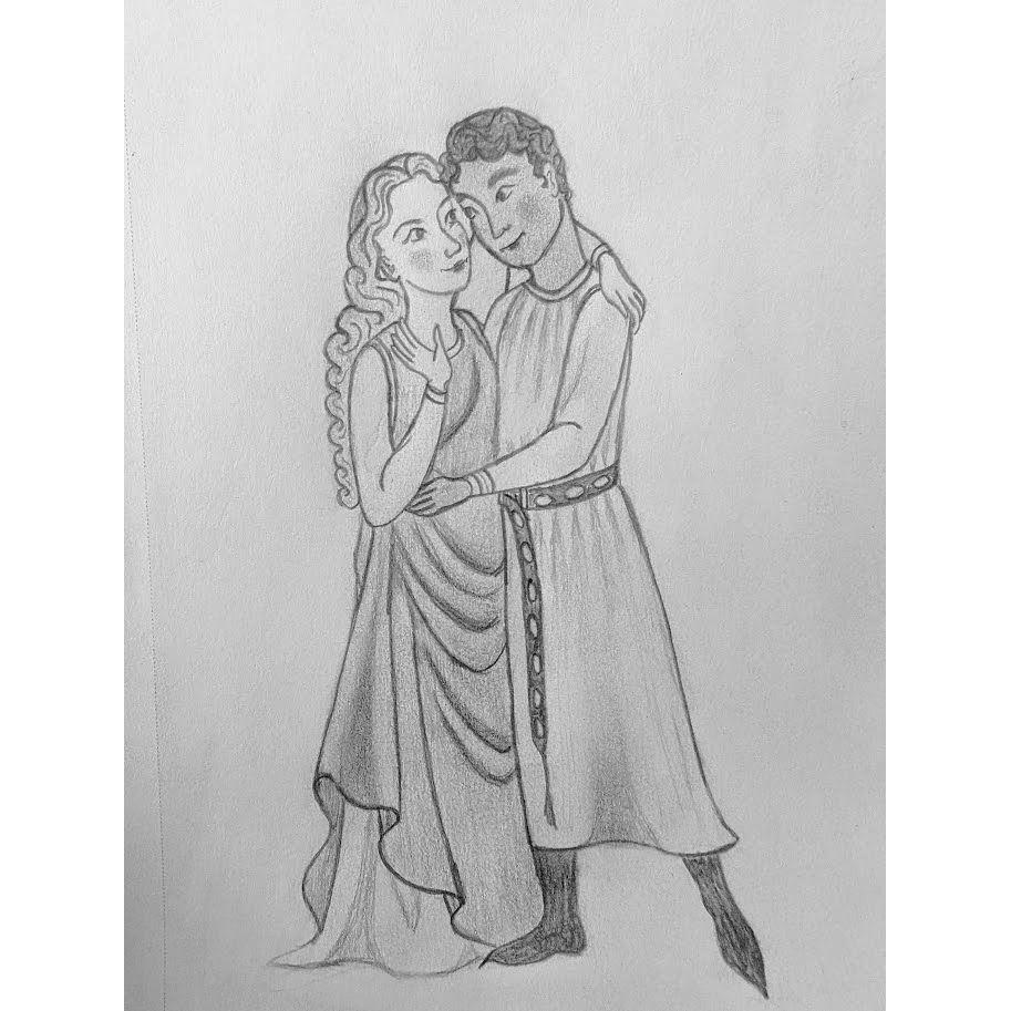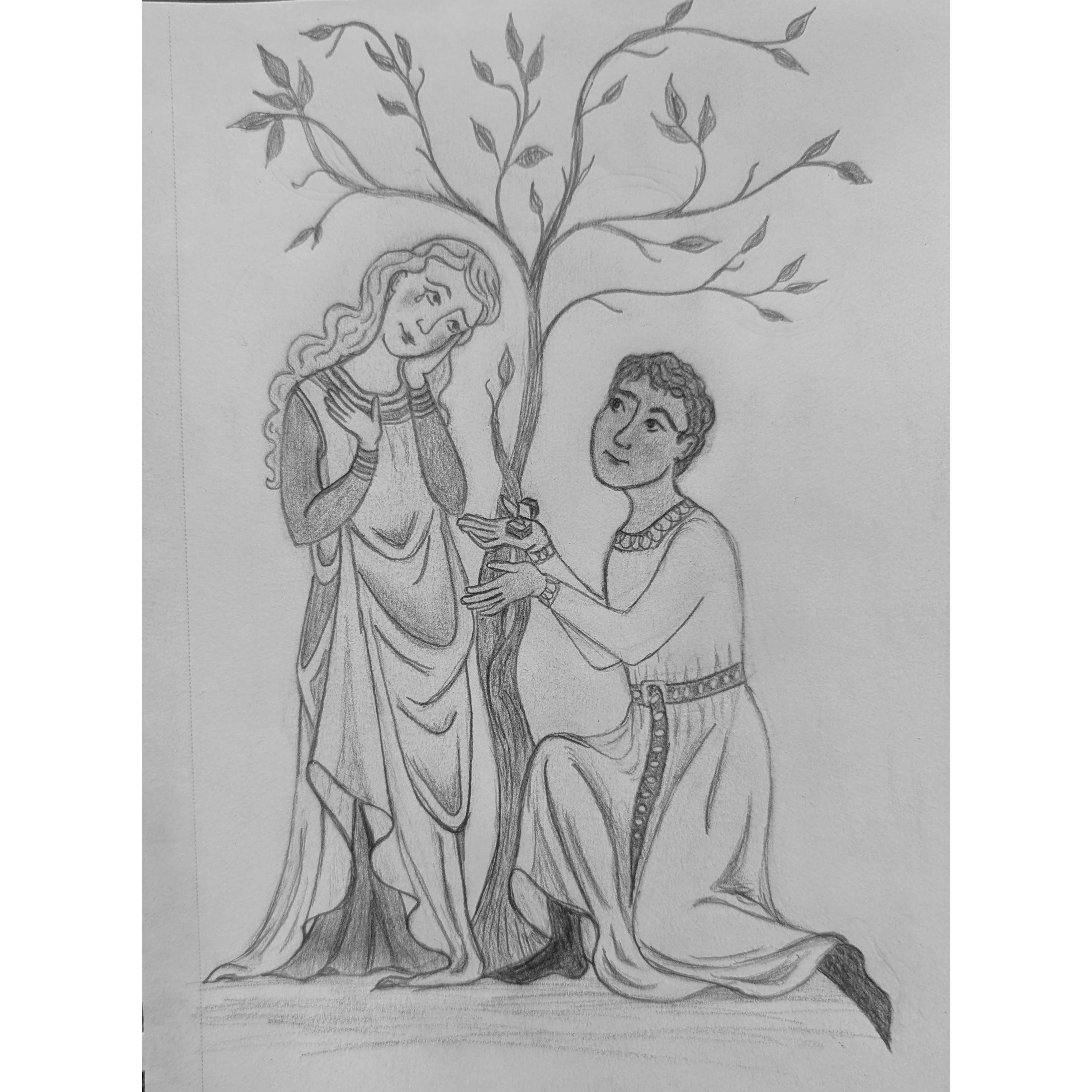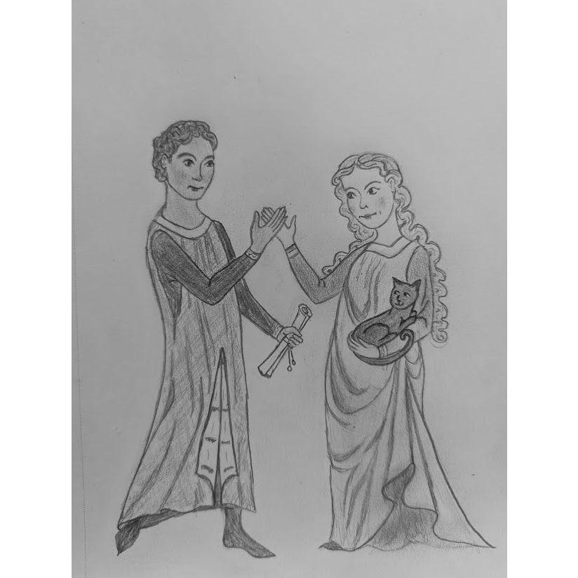 Some photos of Raphael and Gwen on their many adventures (and some medieval style sketches of us by Gwen!)