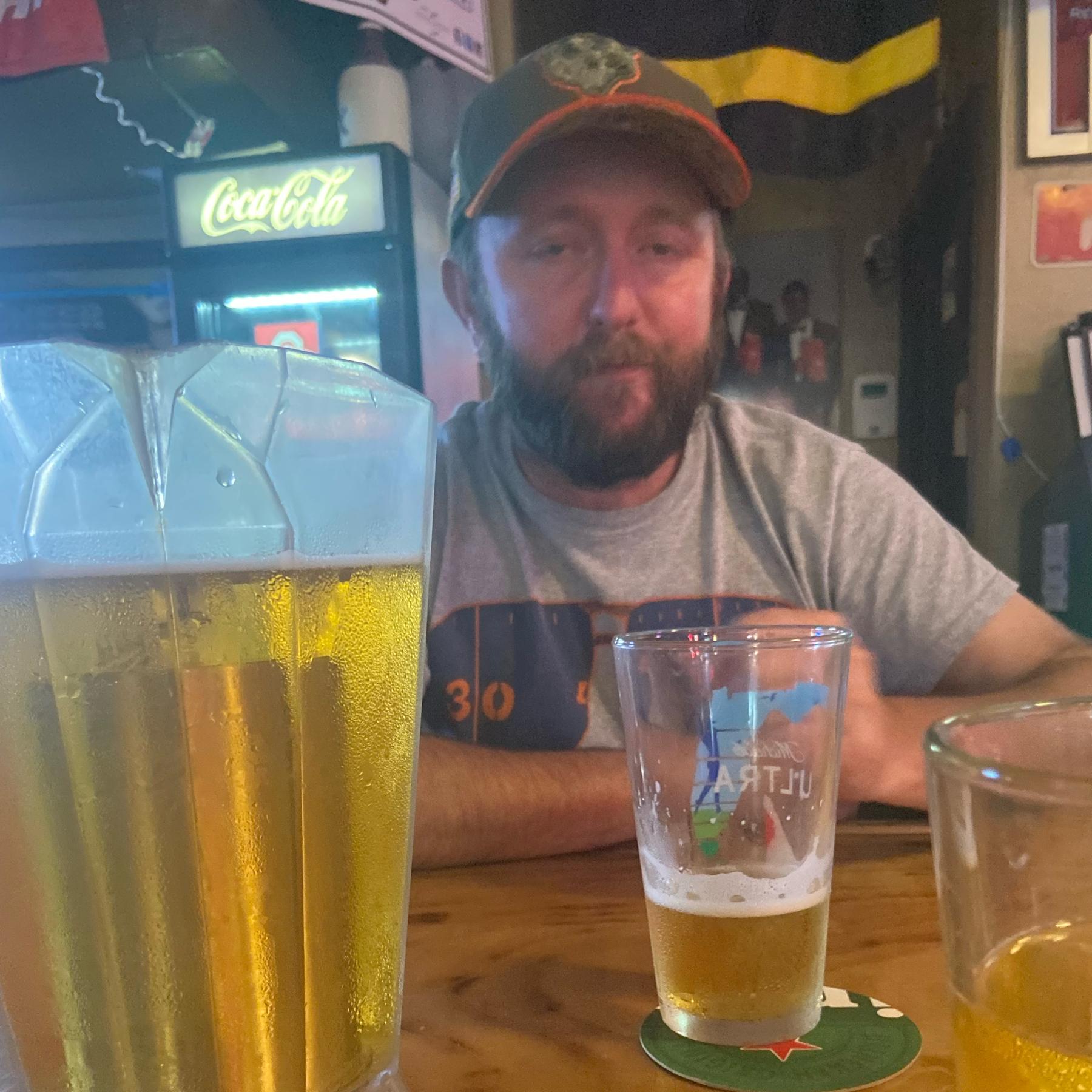 My brother in law and personal handyman. Thanks for hanging all the TVs, the bride and groom and ready for their bar!