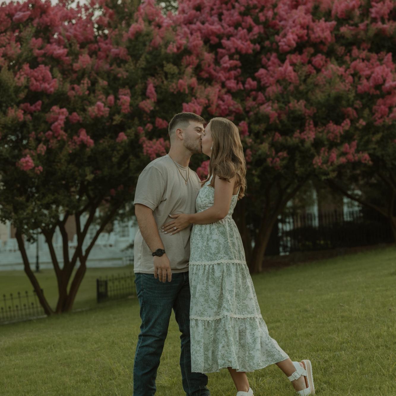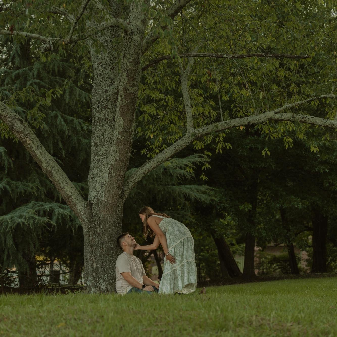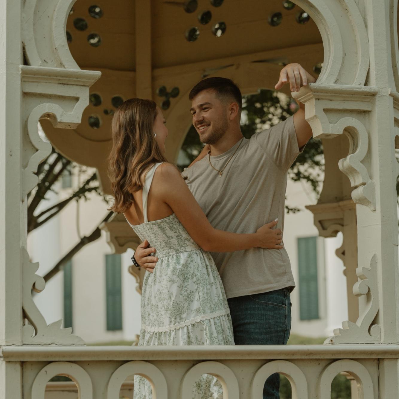 He built a pergola just for this night (it’s not in the photo, but it’s right above us, strung with lights he hung himself 🥹). Then he got down on one knee and asked me to marry him. 💍✨