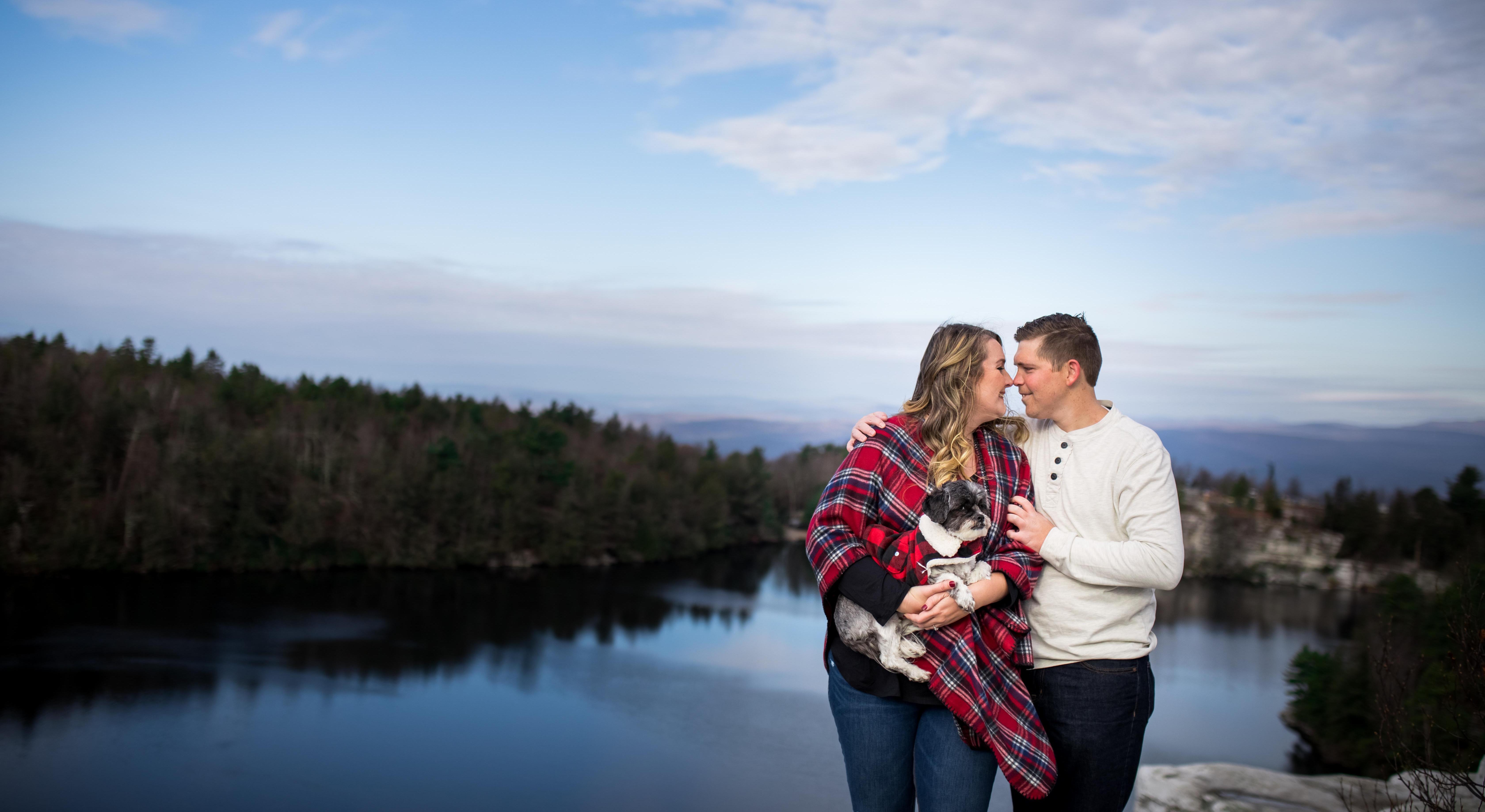 It all began with a simple hike with both Bridget and Andrew's parent, or so she thought. They were all going to get together and go on a hike to Minnewaska State Park. Bridget admits Andrew was acting kind of funny that day, pacing back and forth, constantly looking at the time, and one point just shouted WHAT?!? when Andrew thought Bridget was looking at the box shaped outline in his pocket. So they went on their hike, even their beloved dog Bama came along to see the big moment! They got to the edge of the trail that overlooks the entire Shawangunk Valley. Andrew was urging Bridget to come up on this rock to the overlook. Andrew turned to Bridget and told her everything she dreamed her future husband would and got down on one knee and asked, "Bridget Christina Kane, will you marry me?" "YES YES YES" is all they heard. Followed by cheers, tears, hugs, and kisses. The Kane's came prepared with a bottle of champagne that was quickly popped, and a toast to the future Mr and Mrs. JUST WHEN YOU THOUGHT WE WERE DONE WITH THIS STORY... Andrew then suggested grabbing a drink at one of Bridget's favorite places, Brown Barn to celebrate. The Ferrigan's and Kane's made their way to Brown Barn to celebrate, when Bridget opened the door they were greeted by all their family and friends cheering! They spent the next hours celebrating with all their love ones. Not to mention the place was decorated to perfection thanks to Bridal Party and family. The yes day, was the best day.