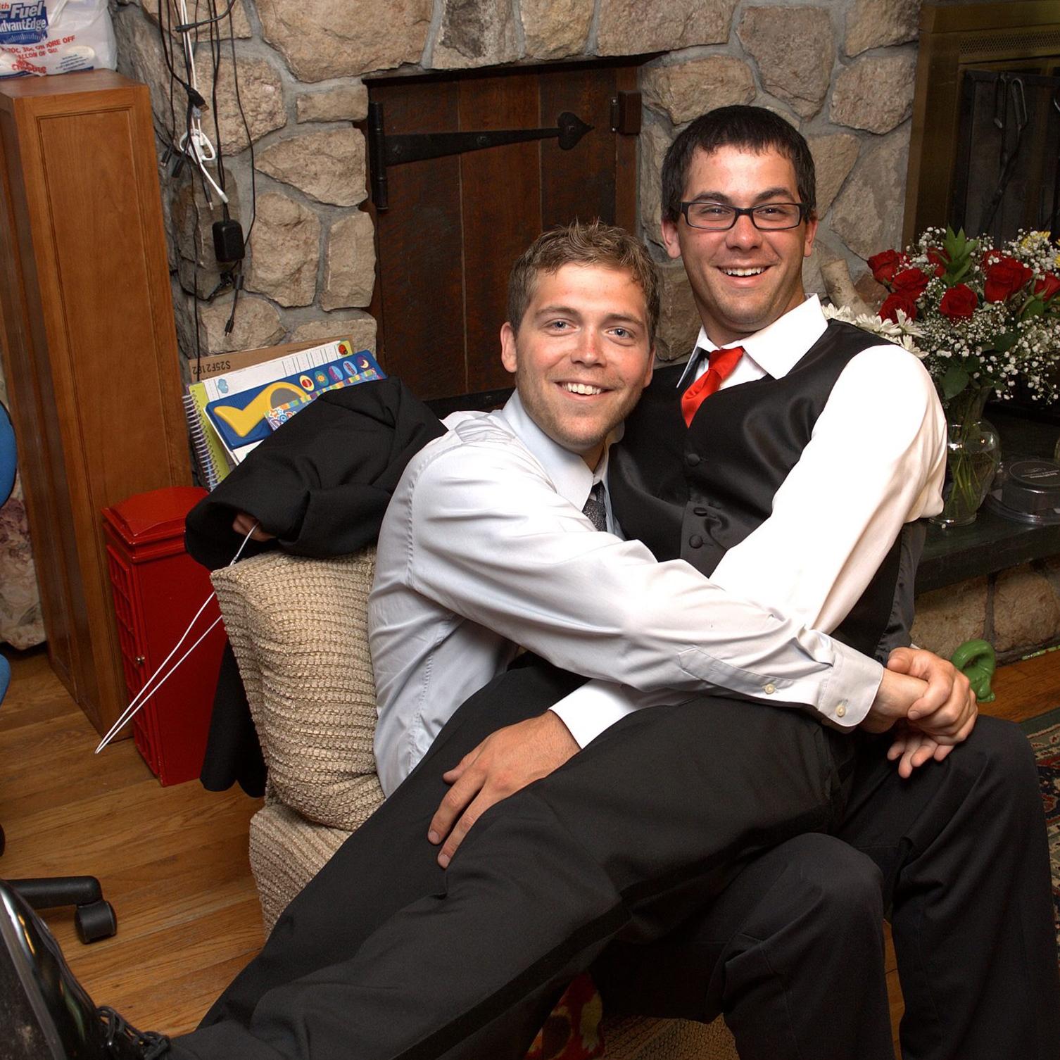Andrew and Chuck first met when Andrews oldest sister, Alyson, brought home her boyfriend, Chuck. Andrew grew up surrounded by sisters so the idea of having a potential brother excited him so much he couldn't help but bother Chuck into watching him practice his new kick-flip, if only Andrew could have landed one... When Alyson and Chuck tied the knot Andrew was thrilled to not only have Chuck as a brother, but as one of his best friends.