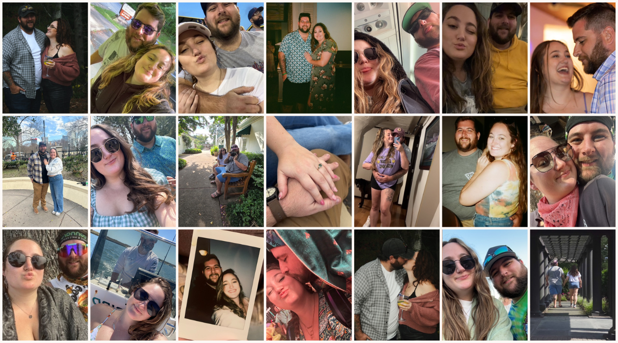 Our journey began in two very different places—Mitch in the heart of North Carolina and Alex in the mitten-shaped state of Michigan. Though our paths were miles apart, fate (and Hinge!) had a different plan. In October 2021, Alex made the leap and moved to Wilmington, North Carolina with her sister and brother-in-law. Just a few months later, a swipe turned into a first date… and the rest is history. From the very beginning, it just clicked. We've been together ever since, sharing laughter, adventures, and lots of live music. Mitch quickly introduced Alex to one of his favorite things: concerts. From local shows to weekend trips, we made so many fun memories dancing to our favorite bands. A little over a year later, life brought us to Savannah, Georgia for Mitch's job, where we fell even more in love with each other. In February 2025, we took a road trip to Atlanta to visit friends and catch a couple of String Cheese Incident concerts. While in Atlanta, we made a special stop at the Georgia Aquarium—something Alex had dreamed of for years. After an awe-filled visit, we stepped out into the courtyard where Mitch, full of love (and maybe a few nerves), got down on one knee and proposed. Alex said yes! We celebrated the best way we knew how—surrounded by friends, good music, and an overwhelming sense of joy. In April 2025, we returned to North Carolina, settling down in Winston-Salem and continuing to build a life we love with our little family. This includes two very important (and opinionated) members—Mitch’s dog, Gatsby, and Alex’s cat, Lily. While their early days were...tense, they’ve grown into their own version of harmony. Deep down, they really do love each other (we think). We can’t wait to celebrate this next chapter with all of you. Thank you for being part of our story.