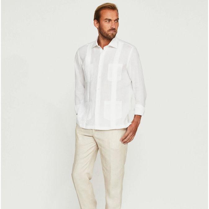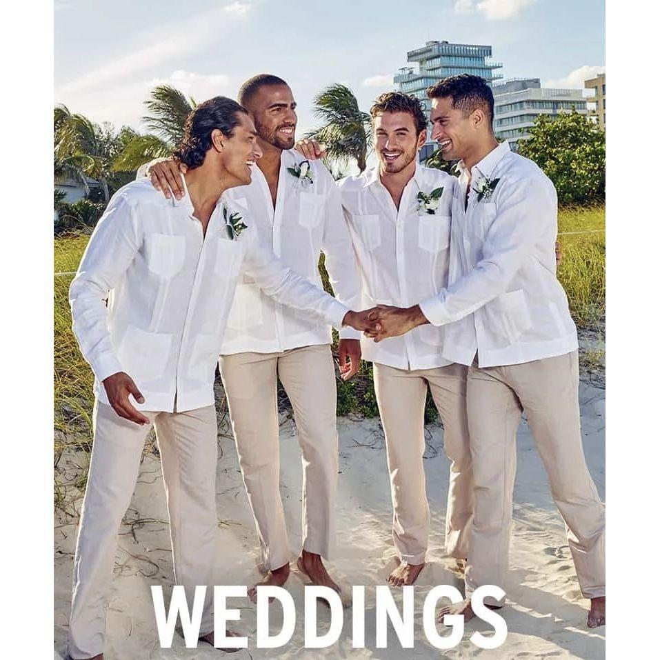 Aquí les compartimos algunas imagenes referentes del dress code de la boda: Hombres: Guayabera Blanca Formal con Pantalón de Lino Beige Mujeres: Vestido Largo