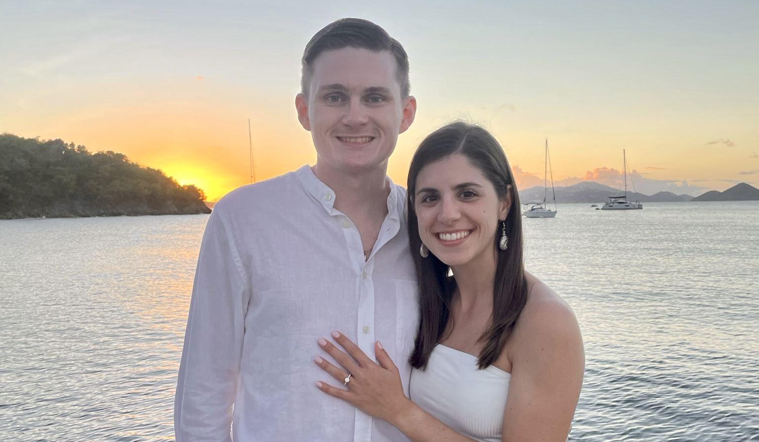 Ryan proposed on our first full day of vacation back at our favorite place, Saint John, USVI. We headed to Cinnamon Bay Beach early in the morning to take “Christmas photos” and after taking several photos, Ryan got down on one knee and proposed right there in the sand.