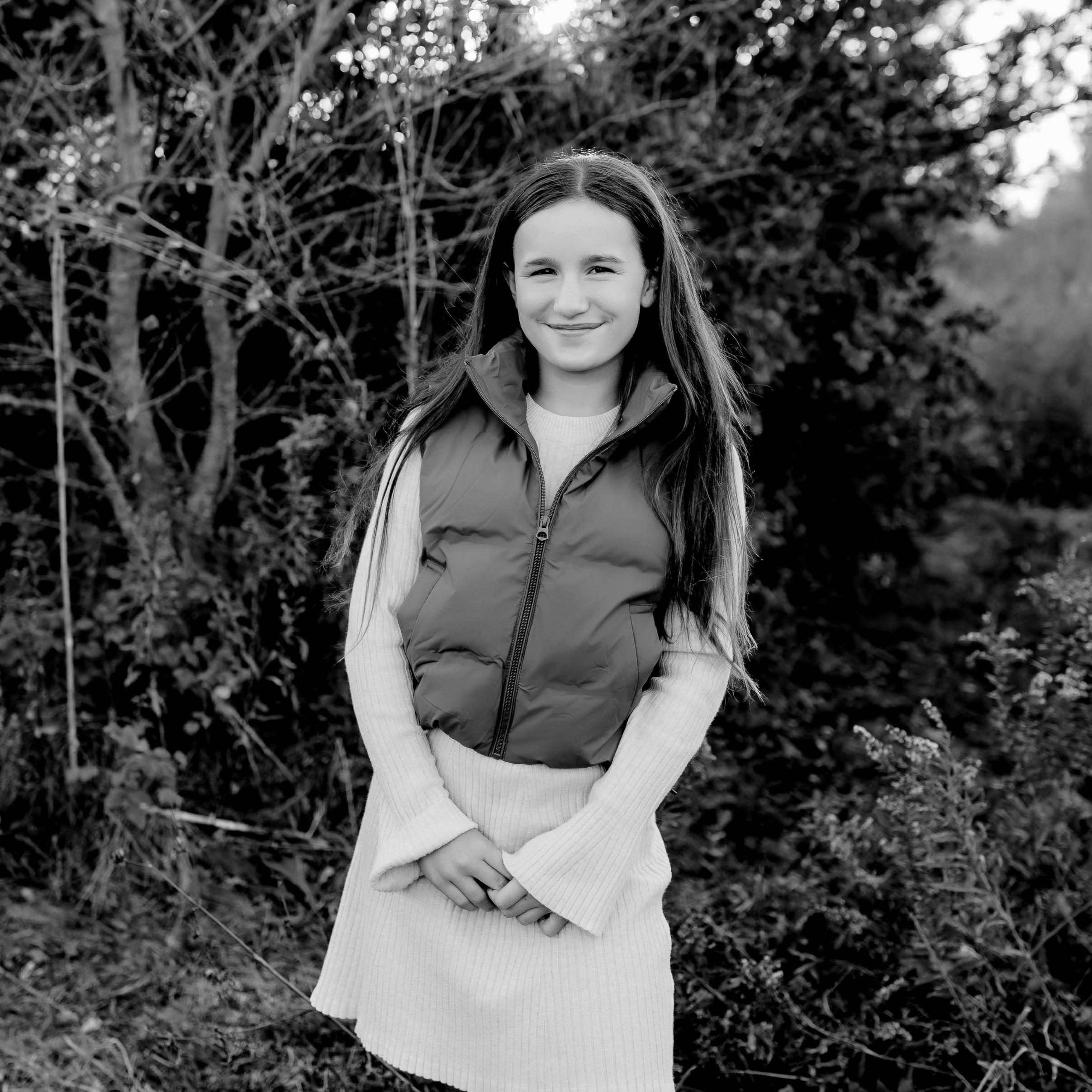 At 11, Greyson is our spark of energy and endless curiosity. She challenges us in all the best ways—pushing us to grow, laugh more, and stay on our toes. Whether she’s racing from one sport to the next or dreaming up her next big adventure, she brings a lively spirit that fills our days with momentum and meaning. Behind all that drive is a deeply kind heart. She cares for others with an honesty and tenderness well beyond her years, and her love for animals is as pure as her smile. Having her with us as we celebrate this new chapter makes our family feel whole. She reminds us daily of what joy, love, and boundless possibility look like.