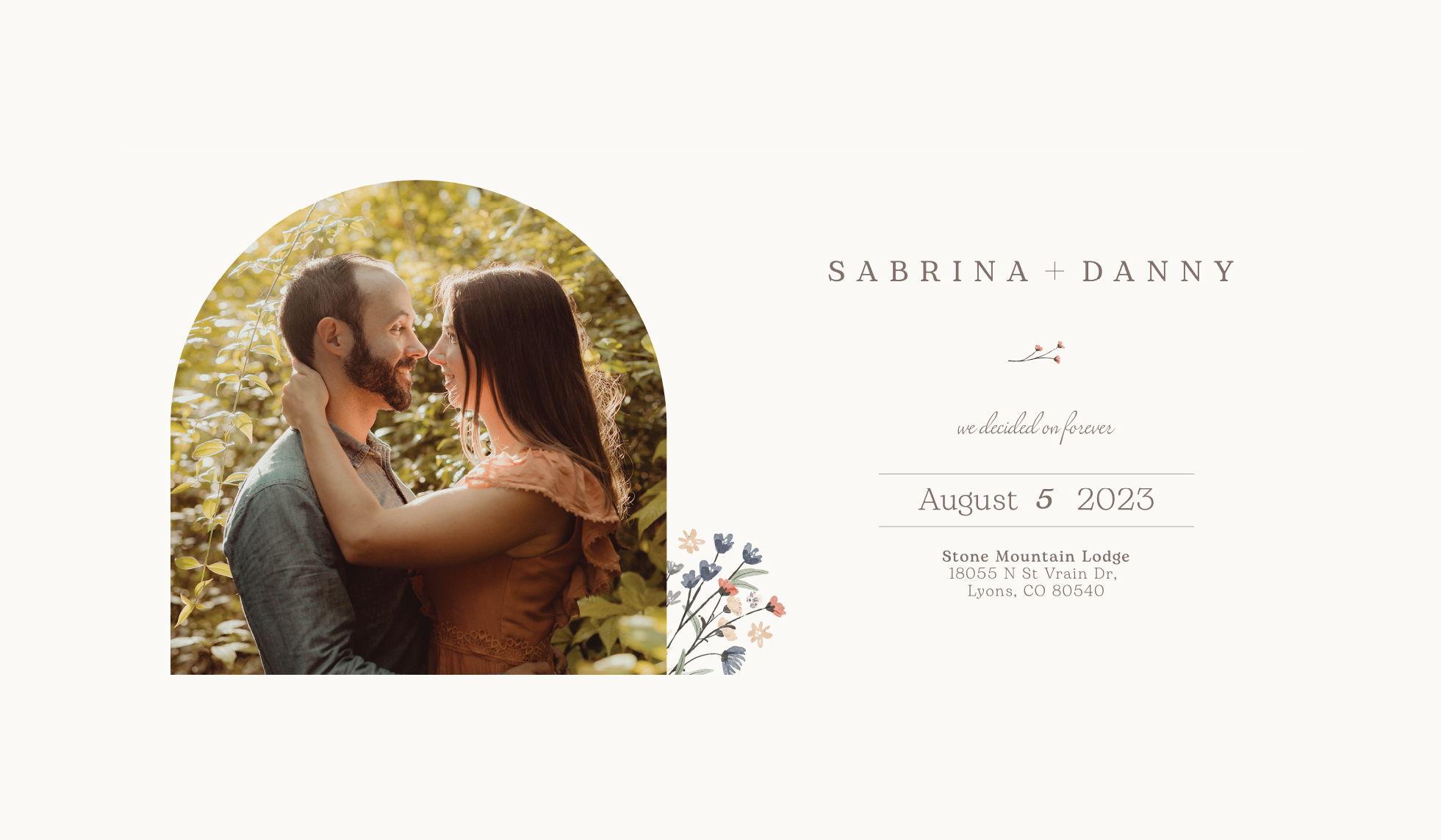 In the summer of 2022, Sabrina and Danny traveled to Spain to visit Sabrina's family and to go on a road trip together. One day, they visited a tower that overlooked the ocean and the city of San Sebastian, where Danny found the courage to ask Sabrina something he had already known for over a year: that he wanted to marry her and spend the rest of their lives together. Sabrina said yes. Today, Danny is a middle school history teacher and Sabrina works as a producer at an advertising agency. Some of the things they both enjoy doing together are going to the movies, watching baseball games, playing softball and beach paddleball, exploring the outdoors, going camping and, of course, their beloved pets: Salem the kitty and Cashew the doggie. They are excited to start the rest of their lives together surrounded by their friends and family and are looking forward to many more years of friendship, partnership and love.