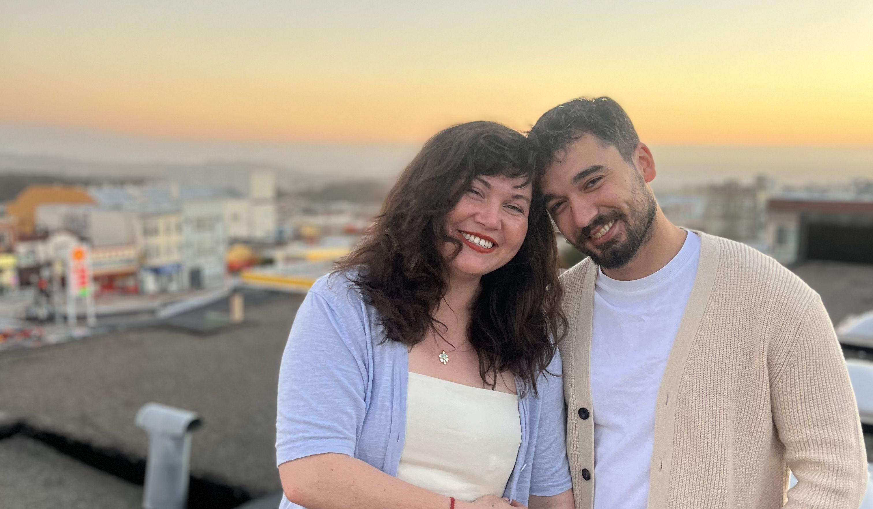 We first met in Fall 2022 as neighbors in a building in San Francisco's Sunset District. I lived upstairs and Şamil lived on the second level. My former downstairs neighbor passed along the number of the newest, most responsible roommate to coordinate garage spots, garbage can moving, and other neighborly activities at the building on 19th Avenue in San Francisco. During a particularly busy performing season, I kept losing my key. And this was really how we first got chatting - Şamil bounding down the stairs to open the door to my grateful thank you's. I WAS scattered during that time but more than once, my key could've been found, but I chose (unconsciously or not) to ring their bell, hoping he'd respond. Not too long after that he texted me, striking up a conversation, and we started hanging out. Generally, I'd climb down the fire escape from my apartment to the big deck attached to his and we'd chat, sitting on camp chairs in the fog. I found out he was an engineer in Turkey and did gig work in SF, and had been in the US for ~2 years. He found out I was the one playing viola upstairs and that I also worked in tech. We both came from big families - he's youngest of five with awesome older sisters, and I'm second of 7 kids. There were weekend trips to Mendocino, Marin, Tahoe. When we needed a deep chat, we'd climb the rickety fire escape ladder up to our roof or take a few beers down to Ocean Beach. We met (and really loved) one another's families - either meeting over FaceTime, or hanging out in the Bay Area. He proposed by placing the ring in my favorite book, Emma by Jane Austen and giving it to me as a gift. The themes that come up again in our conversations is that we couldn't have imagined the other existed. That we'd hoped deeply for unlikely combinations but had basically given up on ever finding it. For Şamil, it was a combination of purity of heart and strength and independence. Someone in whom he could trust his deep love and dependability. For Christy, it was a combination of sweetness and solidness that could stand straight in harder moments, and whose life was ordered and brave. A combination of independent, somewhat radical thinking with deep discipline. In one other, we found these things. We're so excited to share our love story and the feeling of deep gratefulness we have in having found one another with all of you! We hope you'll hold us in a tapestry of love and support as we start a life together.