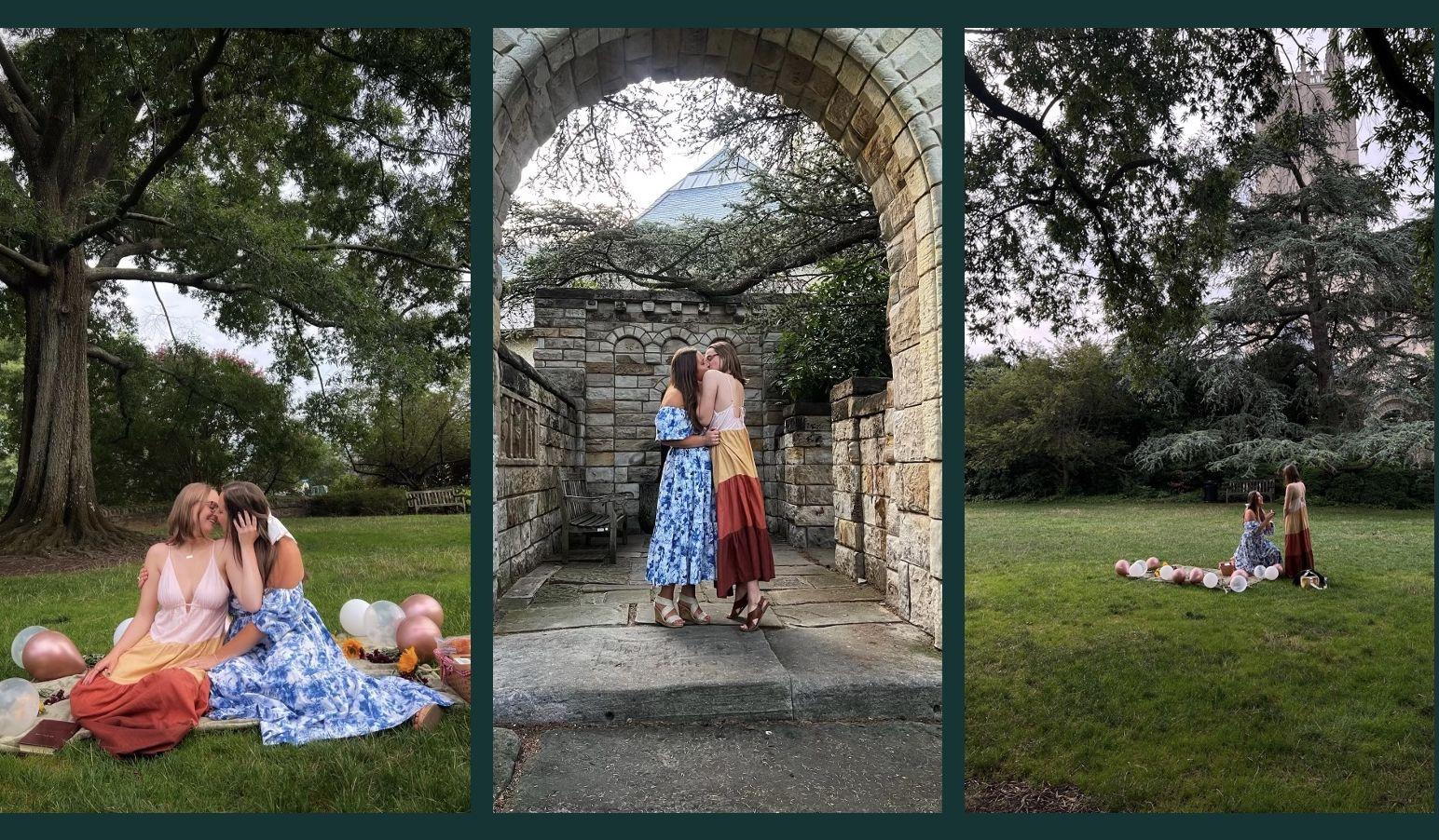 May 20, 2024 (Sarah) Almost six years ago, on May 21, 2019, I climbed through the window of Boardroom DC in a hurry to meet the love of my life. After five years, two apartments, and one terribly spoiled dog I knew it was time to make things permanent. I spent six months plotting— knowing that an ordinary proposal wouldn’t do. Over those six months, I wrote down what it is like to be loved by Emma Hooks. I filled the pages of a journal with our story and asked some of our friends and loved ones to write letters about their own experiences of loving and being loved by Emma. In Ireland, I was worried we wouldn’t make it to the cliffs when I realized I had some difficulty adjusting to driving on the other side of the road (the car rental place accused me of “gouging” a tire). Fortuitously, Emma is actually a better driver when driving on the left. In all honesty, Emma knew this was coming but did not know when. She certainly didn’t think I would be stupid enough to travel through Europe for 3 weeks with an engagement ring— but as I proved by mistaking a window for a door on our first date, I can’t be trusted to make a rational choice when it comes to her. July 26, 2024 (Emma) After the most magical day overlooking the cliffs in Ireland, I wanted to give Sarah a proposal that felt just as special, but I think if I dragged her right back to Europe, she would've caught on. Instead, I decided on an option a little bit closer to home. The Bishop’s Garden at the National Cathedral has been a favorite spot of ours for years; we’ve passed many long and lazy afternoons in the tranquility of the garden, reading and sunbathing. I convinced Sarah to come on a sunset picnic (she was absolutely already suspicious), and thanks to the help of our friends, when we walked into the garden, Sarah found the picnic already waiting for her, and our sneaky helpers hiding in the bushes! Even though I already knew what the answer would be, I have to admit we were both a little misty-eyed when I got down on one knee. Our friends revealed themselves, we popped the champagne, and we were…promptly swarmed by mosquitoes. The picnic was abandoned in favor of a celebration indoors, where Sarah bravely weathered the first challenge of our engagement: the restaurant running out of bacon-wrapped dates.